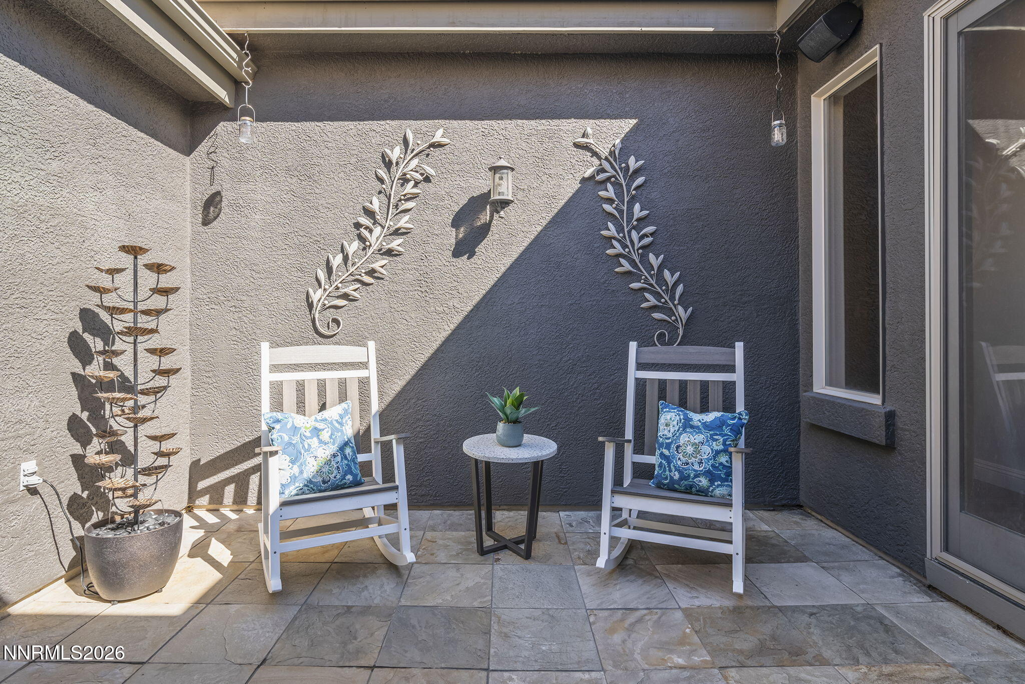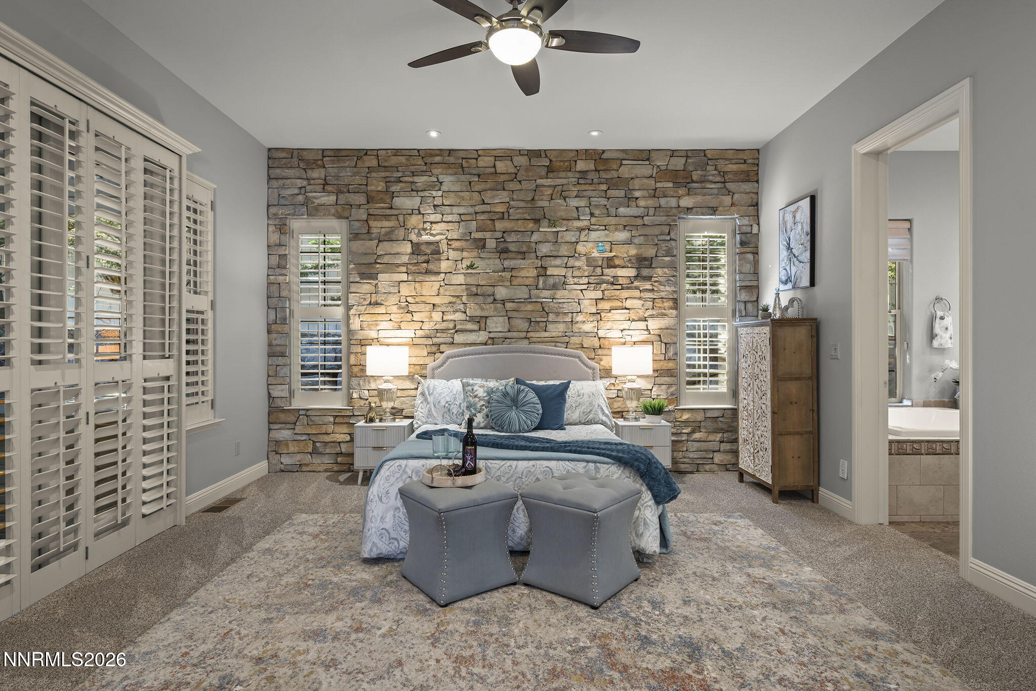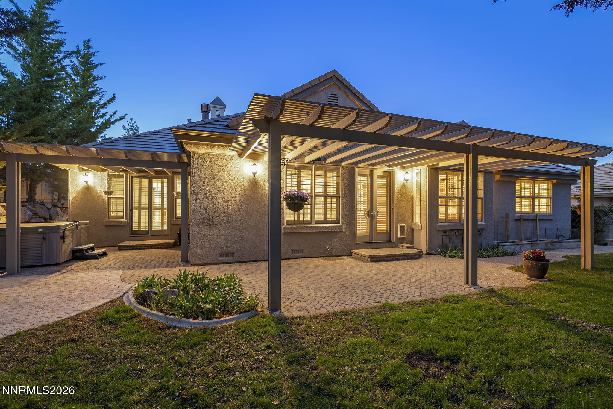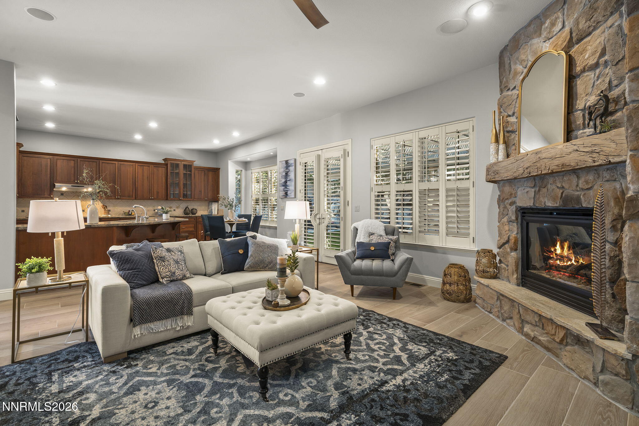 Tucked away in a quiet cul-de-sac in the highly desirable Caughlin Ranch neighborhood, this beautifully updated single-level home offers the perfect blend of comfort, style, and privacy. Thoughtfully refreshed with new tile plank flooring throughout most of the home, fresh interior paint, and engineered wood flooring in the dining room, every detail has been carefully curated. The inviting floorplan features three bedrooms, including a luxurious primary suite and a private junior suite, plus a bedroom and bonus living space at the front of the home (potential for in-law quarters) and a convenient half bath for guests. A formal dining area provides the perfect setting for gatherings, while the private courtyard/atrium in the center of the home offers a peaceful retreatideal for relaxing with a good book. Designer touches shine throughout, including stacked stone accents at the fireplace and in the primary bedroom. The spacious primary suite is a true sanctuary, complete with a spa-like bathroom featuring a walk-in shower, garden tub, dual vanities, and an oversized walk-in closet with custom built-ins. At the heart of the home, the kitchen opens seamlessly to the great room, making it ideal for casual dining and entertaining. Outfitted with a Sub-Zero refrigerator, Thermador oven and gas cooktop, and Bosch dishwasher, its designed to handle everything from weeknight meals to hosting guests. Granite countertops, pull-out shelving, reverse osmosis system, and an instant hot water dispenser add both function and convenience. Comfort is ensured year-round with a dual-zone HVAC system and Nest thermostat, while a surround sound system enhances everyday living. Step outside to an exceptional backyard oasis surrounded by mature evergreen trees for privacy. Enjoy multiple paver patios, a soothing waterfall feature, and an extended patio covered by an Alumi-wood awningperfect for outdoor dining or relaxing. A gas stub is already in place for a future outdoor kitchen, making this space ideal for entertaining. Additional highlights include a spacious three-car garage with a 220V outlet for an EV charging system, built-in cabinets and overhead storage, plus a central vacuum system for added ease. Ideally located near scenic hiking and biking trails, and just minutes from shopping and dining, this home offers a peaceful setting while still being close to everything. A true must-see!