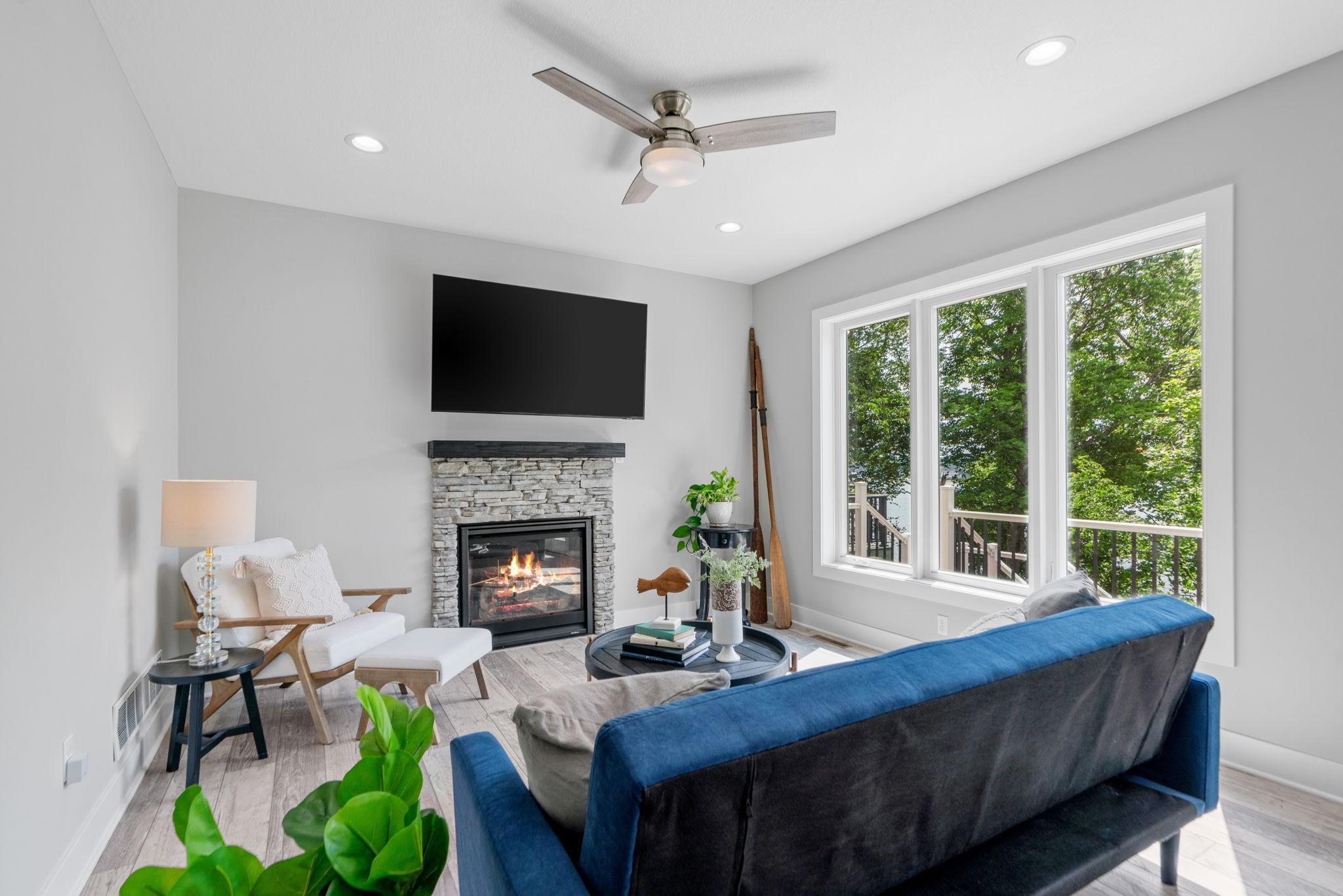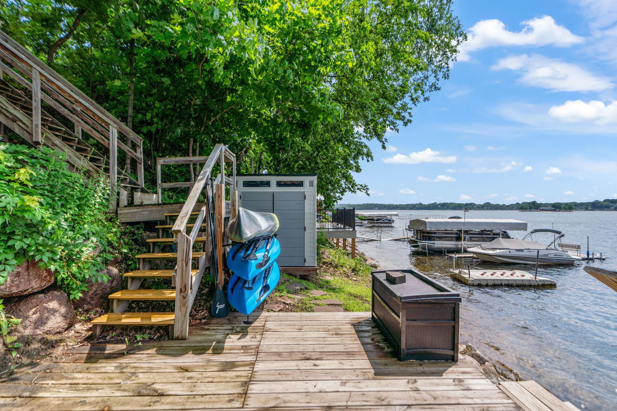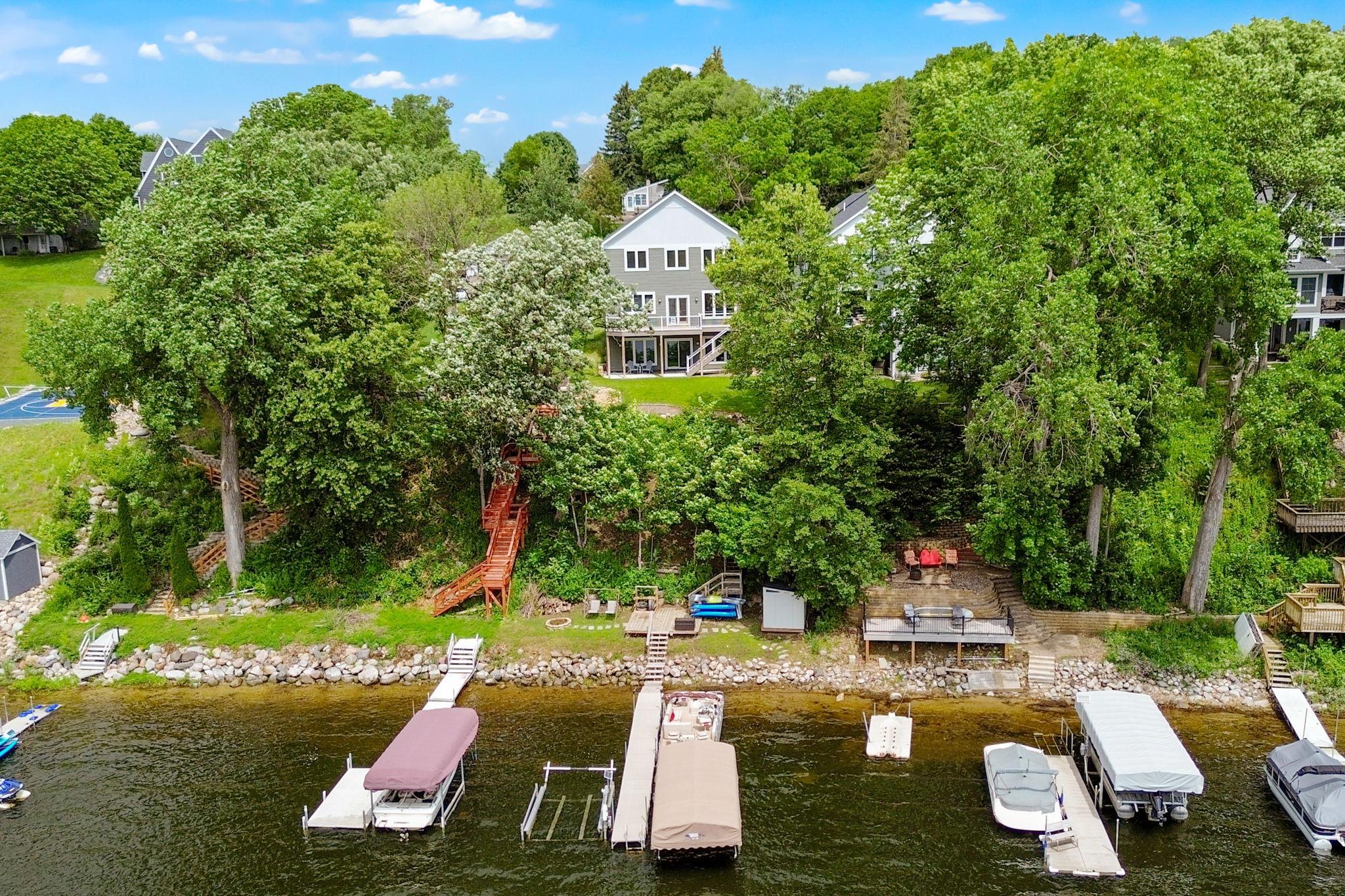 The Triple Play! Like new construction, lakefront, & the OP (Other Place)! Better than new construction, this Gerold Bros. home comes w/ all the extras in landscaping & decorating. The open main floor features a wall of windows & a cozy gas fireplace. The bright, spacious kitchen features a center island & ample cabinet & storage space. Upstairs, youll find 4 bedrooms & 2 full baths, all offering majestic views. Theres plenty of storage & convenient laundry facilities. The full lower level is ready for your finishing touches, w/ the option to add a 5th bedroom or create a grand lakeside entertainment room. Large deck & patio, stairs to lakefront, shed & deck - super fishing & access to Prior Lake! The OP is a space for your imagination to run wild. Whether you need a workshop, entertainment area, a place for overnight guests, sleepovers, home office, or a storage center, the OP has you covered w/ extra parking. Enjoy a great deck and firepit for a second outdoor enjoyment area.