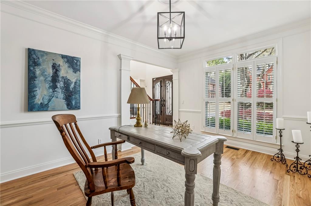 Signature end unit at The Aura Districtan elevated designer residence in the heart of Central Lawrenceville. This striking home blends timeless architecture with modern sophistication, featuring clean lines, oversized windows, and a curated palette of finishes selected by a professional interior designer. The open-concept kitchen impresses with a GE Caf appliance package, and minimalist lighting that enhances both form and function. Upstairs, a custom wet bar with beverage fridge anchors a flexible game room or fourth bedroom, complete with a bonus Juliet balcony with city views. The light-filled main living area enjoys desirable additional side windows. Outdoor living shines on the expansive rooftop deck, while a 2-car integral garage adds everyday convenience. Expertly crafted by Indovina Architects and located near premier dining, boutiques, hospitals, universities, and the Strip District.