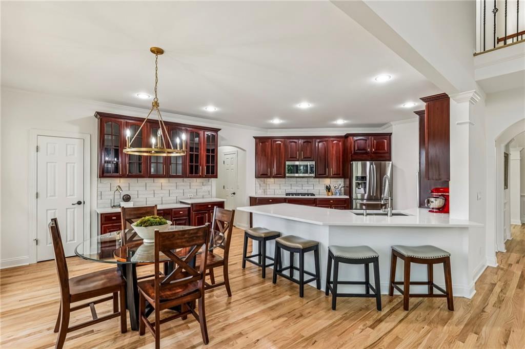 Signature end unit at The Aura Districtan elevated designer residence in the heart of Central Lawrenceville. This striking home blends timeless architecture with modern sophistication, featuring clean lines, oversized windows, and a curated palette of finishes selected by a professional interior designer.