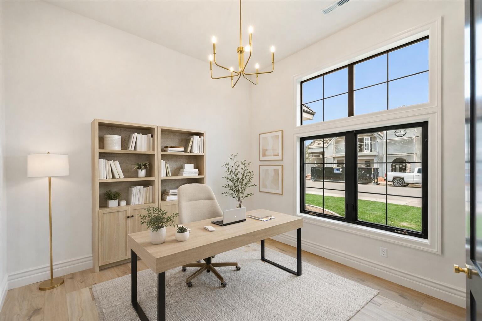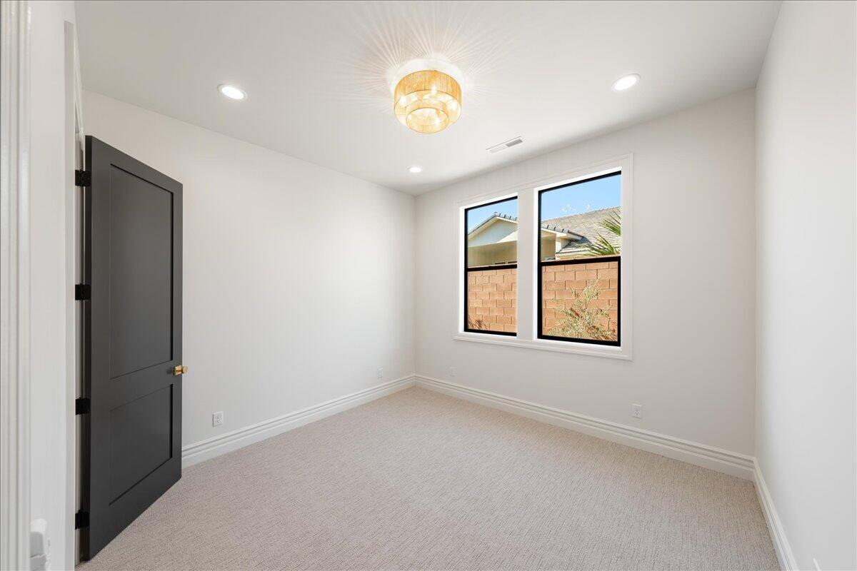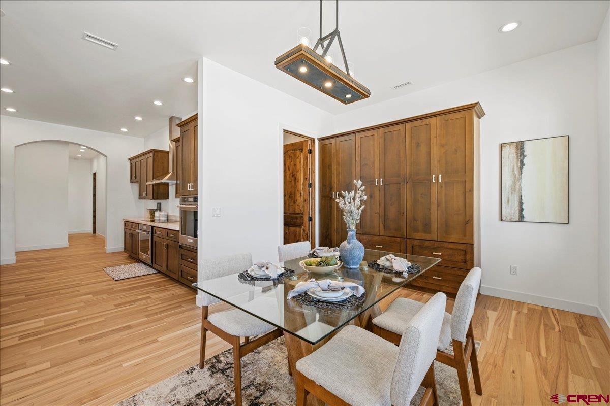 This 2800 sq ft newly built custom home sits on a stunning 3 irrigated acre lot overlooking beautiful Spring Creek Mesa. The residence features four bedrooms and three bathrooms, with an oversized 3 car-attached garage. Spacious kitchen with Quartzite countertops, ample counter space, and two ovens for convenient cooking.