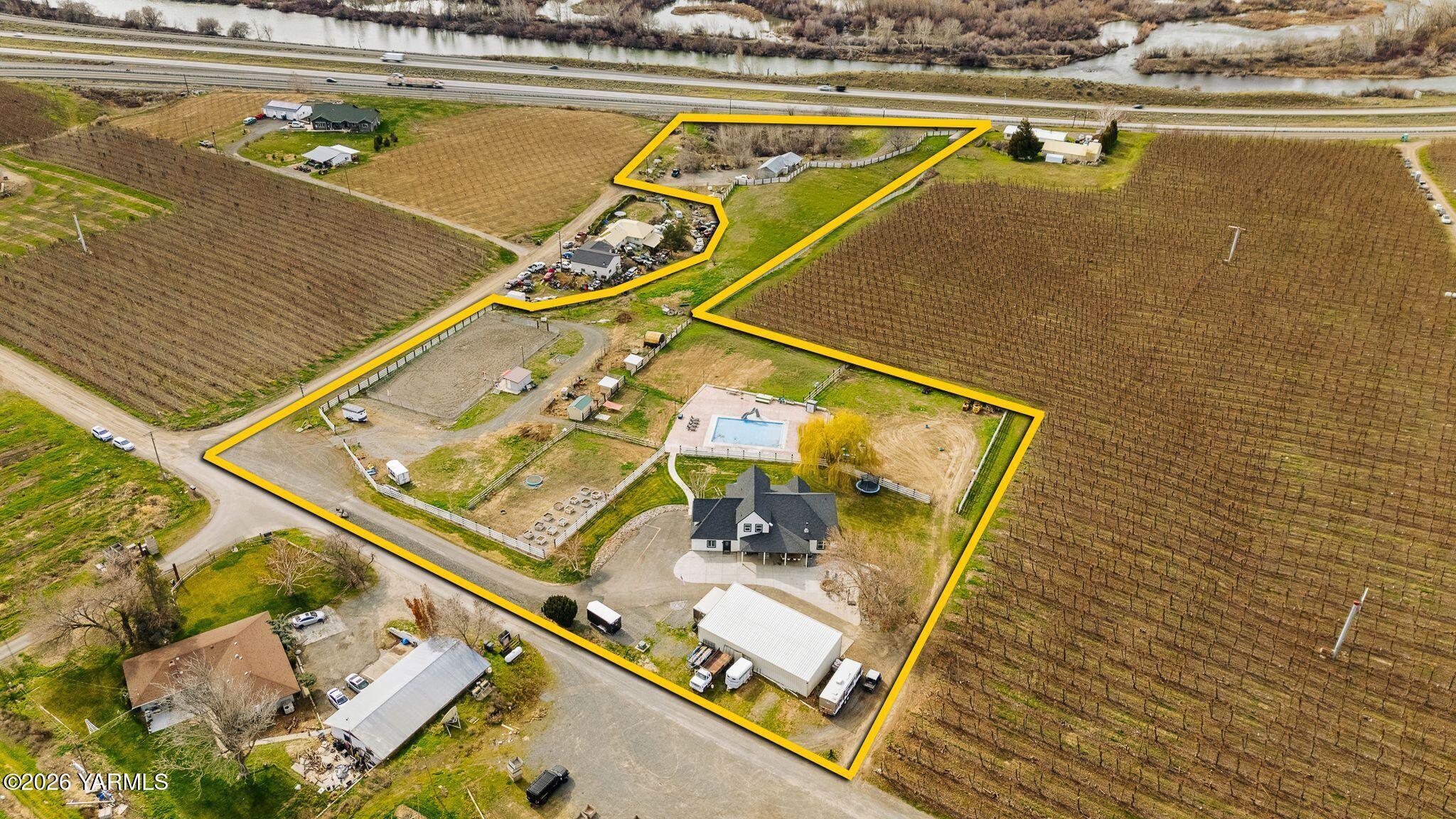 Luxury Living with Income Potential in the Heart of Wine Country.Perched on 6.6 breathtaking acres overlooking the Lower Yakima Valley, this extraordinary 5,300 sq ft estate blends luxury living with incredible versatility. The six-bedroom, four-bathroom home features expansive living spaces, stunning valley views, and outdoor amenities including a pool designed for sunset evenings and an equestrian riding arena. A fully equipped two-bedroom Airbnb suite on the lower level with its own kitchen, office, and private living space, creates an exceptional income opportunity or private guest quarters.The property also includes a large shop and cold storage building, perfect for hobbies, business use, or wine country living.Ideally located between renowned wineries like Treveri Cellars and Owen Roe Winery, this property offers the rare combination of privacy, views, and proximity to some of the Yakima Valleys most celebrated destinations.