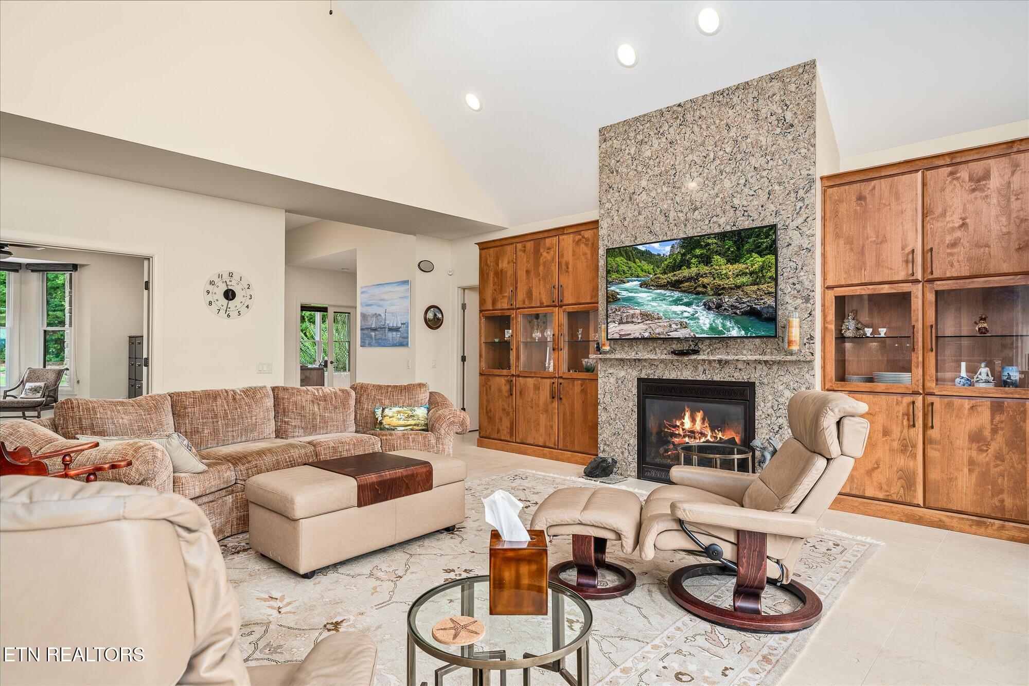 This elegant retreat in The Bluffs was built to celebrate the viewand your life within it. Set on 1.55 private acres, this custom-built retreat offers stunning views, striking architecture, and single-level living with style and substance. The thoughtfully designed layout features 4 bedrooms, 2 full baths, and 2 half baths, with both casual and formal living spaces that flow effortlessly for entertaining or everyday comfort. From the moment you walk in, youre greeted by soaring ceilings and a wall of windows that invite the outdoors in, while the show-stopping floor-to-ceiling granite fireplace anchors the main living space with timeless style. The gourmet kitchen features an oversized granite island, walk-in pantry, and seamless access to the dining area, sunroom, and screened balcony.Enjoy morning coffee from the screened balcony, work from the private office, and retreat to a serene primary suite complete with dual walk-in closets and a spa-style bathroom. Theres even a large bonus room with its own half bath upstairs for hobbies, guests, or media space.With a 2.5-car garage, oversized laundry, two dedicated office spaces, and high-end finishes throughout, this home was designed for both function and wow factor. Perfectly positioned among mature trees with a sense of peace and privacythis is elevated living in one of Fairfield Glades most sought-after settings. https://rem.ax/4ppjVaf Buyer to verify all information before making an informed offer.