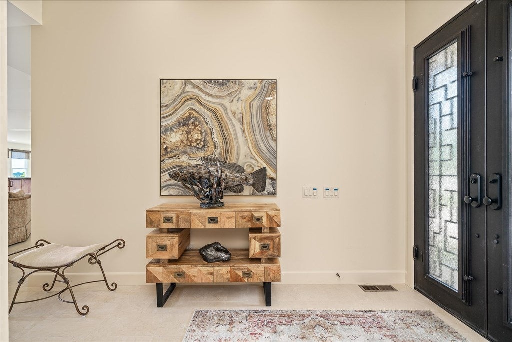 Elegant retreat in The Bluffs on 1.55 private acres with stunning views, striking architecture, and single-level living. This 4BR, 2 full/2 half bath home offers casual and formal spaces perfect for entertaining or everyday comfort. Soaring ceilings, a wall of windows, and a floor-to-ceiling granite fireplace set the tone.