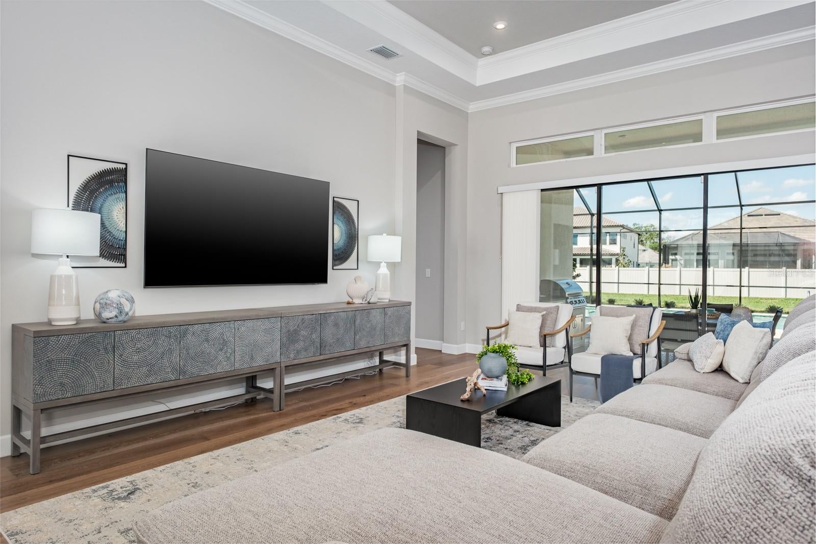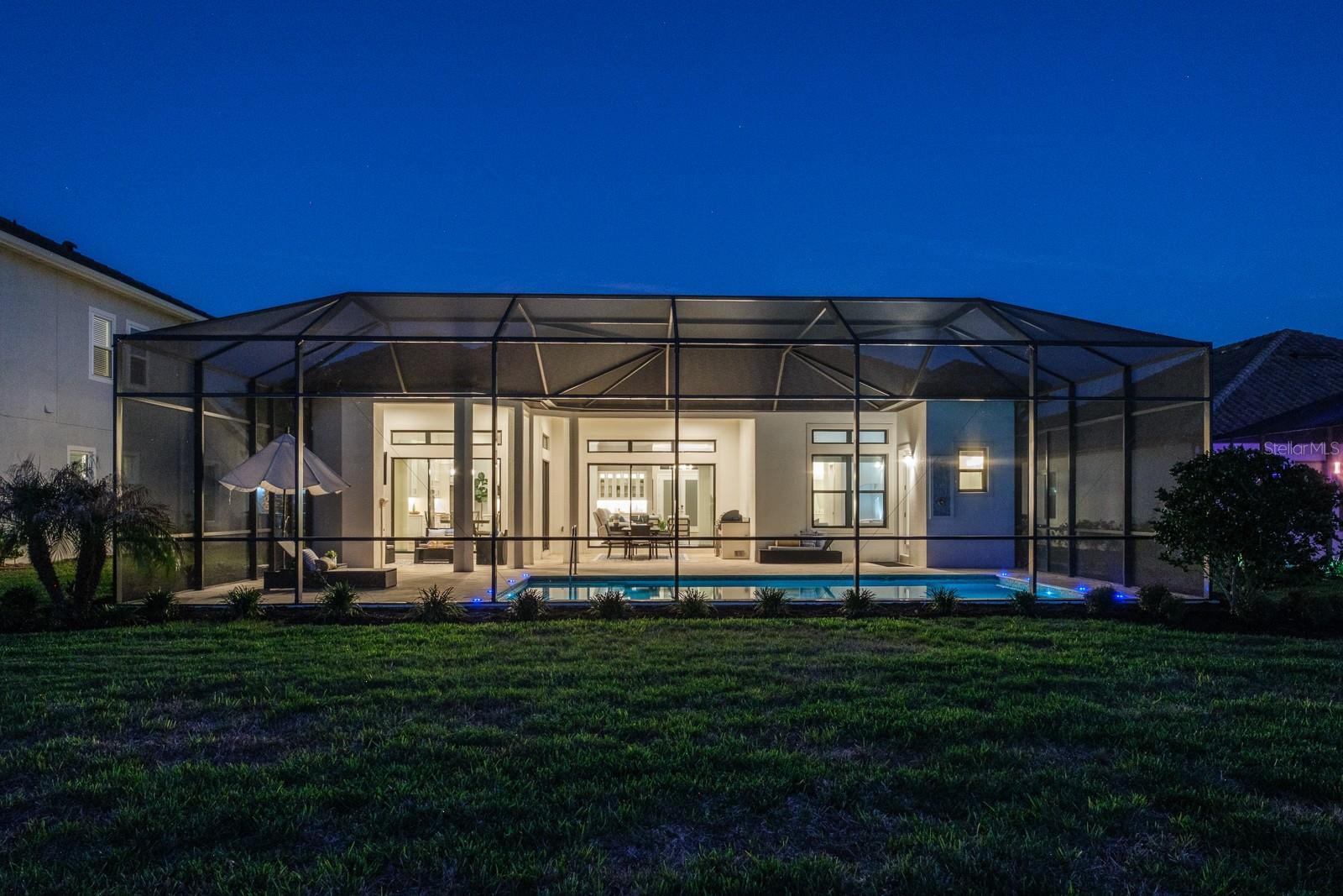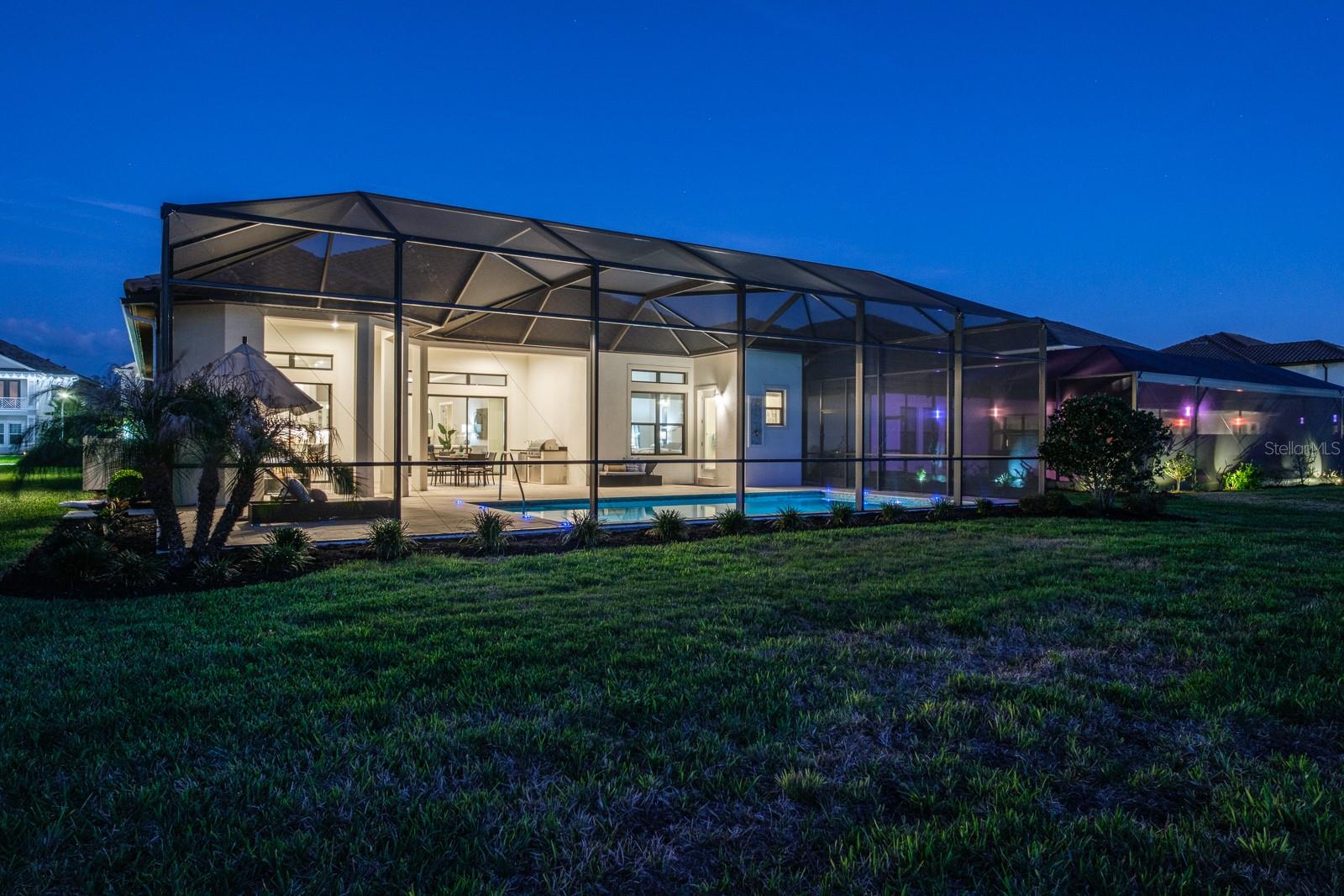 Welcome to luxurious living in the prestigious, gated Rivers Edge community. Stunning Taylor Morrison home perfectly combines luxury, style & functionality. Built in 2022. With over 3,000 sq.ft. this magnificent, immaculate, one-story executive pool home offers 3 bdrms, a study, 3 full bathrooms, 2 half baths and an oversized 3-car garage. Pavered driveway brings you to elegant double glass doors and into the truly open concept floor plan. Gorgeous wood flooring flows throughout the bedrooms and main living area. Formal dining room features trey ceiling, transom window, beverage center with white shaker cabinets including lighted upper cabinets, quartz counters with SS sink, designer tile backsplash & beverage fridge. Stunning gourmet kitchen will impress the finest chef with the oversized island, quartz counters, soft close wood cabinetry with crown molding, upper and lower cabinet lighting, breakfast bar with lower cabinetry, farmhouse sink, hood, SS appliances including GE Monogram built-in convection oven, microwave, 6-burner gas cooktop, dishwasher and a GE Cafe refrigerator. The kitchen provides an abundance of counter space for preparing and entertaining family and friends. Enormous walk-in pantry with wood shelving is the ultimate space needed for serving and storage. Separate large eat-in area compliments the kitchen with sliding glass doors overlooking the fabulous pool views. Kitchen overlooks spacious great room boasting trey ceiling, transom window and sliding glass doors to the outdoor lanai. Living and entertaining is extended with your outdoor oasis. Magnificent travertine tile lanai, enormous pool with pebbletech finish, vaulted mansared screen enclosure, outdoor shower, cabana pool half bathroom, two large, covered areas with poolside kitchen boasting granite counters, beverage fridge, grill and sink and an additional covered space includes a sitting area with a mounted TV and cozy gas fireplace for year-round entertainment. Split bedroom floor plan is ideal for privacy with spacious primary bedroom located in the rear of the home offering trey ceiling w/crown molding, transom windows, 2 walk-in closets with custom closet systems, ensuite bath features dual vanities with wood cabinetry, quartz counters with undermount sinks, dressing/makeup area, garden tub, water closet and frameless glass walk-in shower with designer tile accents. Two additional bedrooms located at the front of the home each boast crown molding and a private ensuite. The second half bath is perfectly situated in the hallway for guests convenience. Double door entry to the private study with trey ceilings is perfect for home office or separate sitting area. Laundry room is ideally located inside the home just off the garage entrance and features a utility sink and separate linen center with upper and lower cabinetry making a great folding area... GE Profile washer & dryer convey! Other notable upgrades include central vacuum, epoxy flooring in garage, living room and outdoor area are pre-wired for surround sound. Rivers Edge residents enjoy the full River Landing community. It is a master planned community with remarkable amenities and provides a resort-style lifestyle. The impressive array of amenities include a fabulous pool, clubhouse & fitness center, tennis & basketball courts, soccer field, playground, dog park. A stunning home in a sought-after community offering the best of Forida living!
