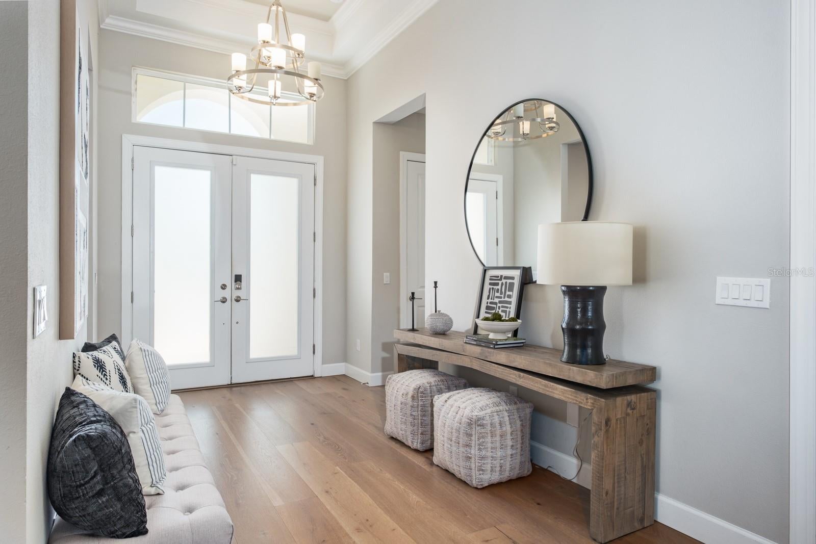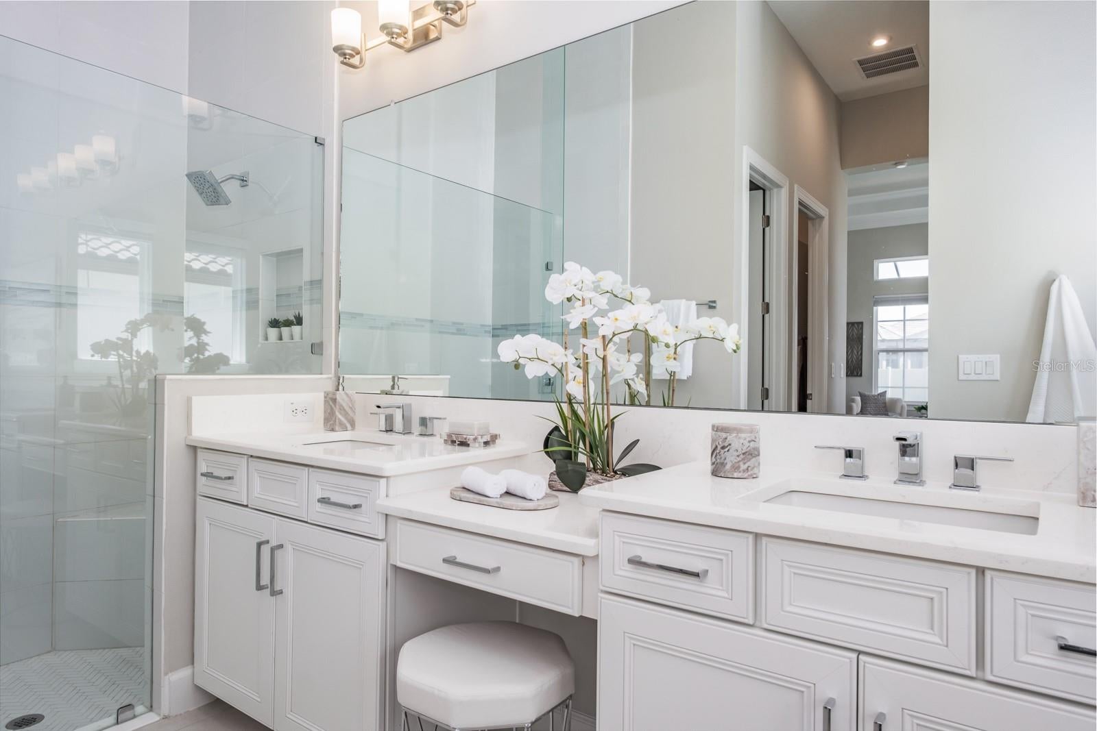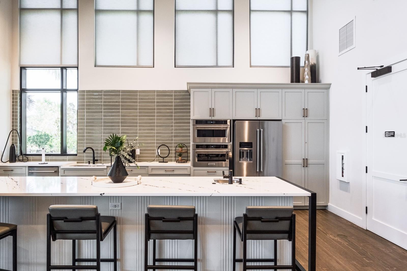 Welcome to luxurious living in the prestigious, gated Rivers Edge community. Stunning Taylor Morrison home perfectly combines luxury, style & functionality. Built in 2022. With over 3,000 sq.ft. this magnificent, immaculate, one-story executive pool home offers 3 bdrms, a study, 3 full bathrooms, 2 half baths and an oversized 3-car garage. Pavered driveway brings you to elegant double glass doors and into the truly open concept floor plan. Gorgeous wood flooring flows throughout the bedrooms and main living area. Formal dining room features trey ceiling, transom window, beverage center with white shaker cabinets including lighted upper cabinets, quartz counters with SS sink, designer tile backsplash & beverage fridge. Stunning gourmet kitchen will impress the finest chef with the oversized island, quartz counters, soft close wood cabinetry with crown molding, upper and lower cabinet lighting, breakfast bar with lower cabinetry, farmhouse sink, hood, SS appliances including GE Monogram built-in convection oven, microwave, 6-burner gas cooktop, dishwasher and a GE Cafe refrigerator. The kitchen provides an abundance of counter space for preparing and entertaining family and friends. Enormous walk-in pantry with wood shelving is the ultimate space needed for serving and storage. Separate large eat-in area compliments the kitchen with sliding glass doors overlooking the fabulous pool views. Kitchen overlooks spacious great room boasting trey ceiling, transom window and sliding glass doors to the outdoor lanai. Living and entertaining is extended with your outdoor oasis. Magnificent travertine tile lanai, enormous pool with pebbletech finish, vaulted mansared screen enclosure, outdoor shower, cabana pool half bathroom, two large, covered areas with poolside kitchen boasting granite counters, beverage fridge, grill and sink and an additional covered space includes a sitting area with a mounted TV and cozy gas fireplace for year-round entertainment. Split bedroom floor plan is ideal for privacy with spacious primary bedroom located in the rear of the home offering trey ceiling w/crown molding, transom windows, 2 walk-in closets with custom closet systems, ensuite bath features dual vanities with wood cabinetry, quartz counters with undermount sinks, dressing/makeup area, garden tub, water closet and frameless glass walk-in shower with designer tile accents. Two additional bedrooms located at the front of the home each boast crown molding and a private ensuite. The second half bath is perfectly situated in the hallway for guests convenience. Double door entry to the private study with trey ceilings is perfect for home office or separate sitting area. Laundry room is ideally located inside the home just off the garage entrance and features a utility sink and separate linen center with upper and lower cabinetry making a great folding area... GE Profile washer & dryer convey! Other notable upgrades include central vacuum, epoxy flooring in garage, living room and outdoor area are pre-wired for surround sound. Rivers Edge residents enjoy the full River Landing community. It is a master planned community with remarkable amenities and provides a resort-style lifestyle. The impressive array of amenities include a fabulous pool, clubhouse & fitness center, tennis & basketball courts, soccer field, playground, dog park. A stunning home in a sought-after community offering the best of Forida living!