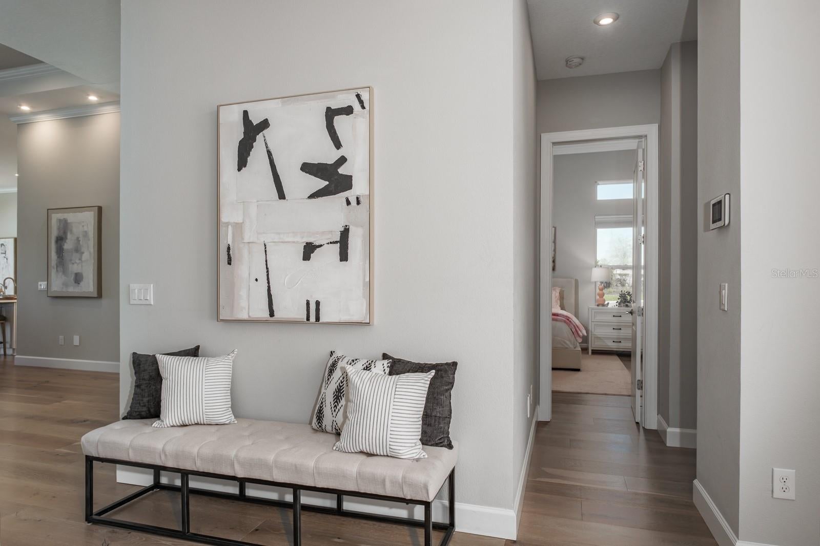Elegant New Construction in Somerset Ridge. Step inside this thoughtfully designed home offering a seamless blend of style and function. The open-concept living area features engineered wood flooring, a striking fireplace accent, and built-in cabinetry. The kitchen showcases stained cabinetry, a large island, premium fixtures, and a walk-in pantry with additional storage.