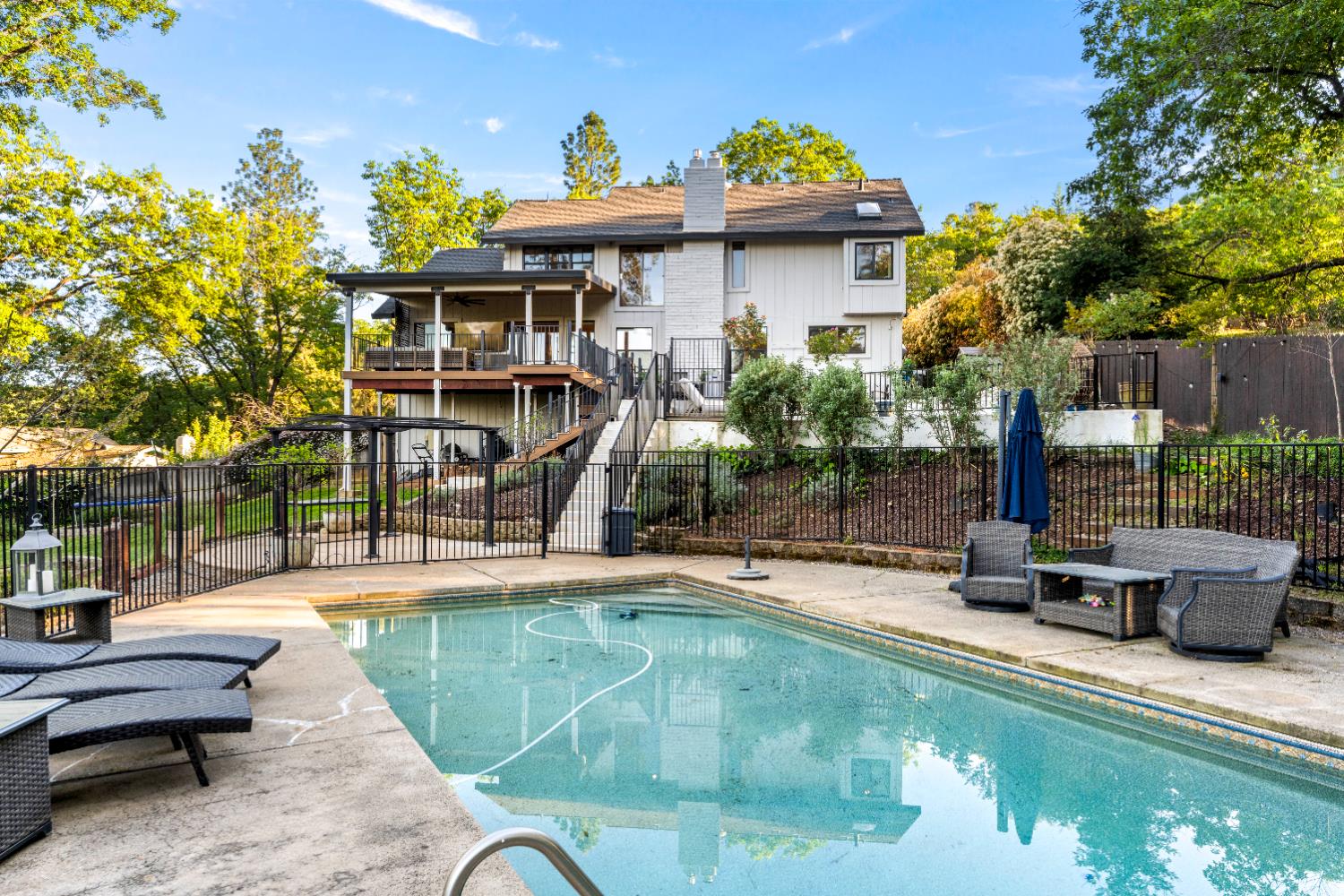 Imagine a home where summer days are spent poolside, kids laugh and play under wide open skies, and evenings wind down by the firethis is the lifestyle waiting for you in this beautifully updated Shingle Springs home with OWNED SOLAR. Step into a luxurious foyer featuring designer lighting and rich wood paneling, setting the tone for the thoughtfully curated interior.