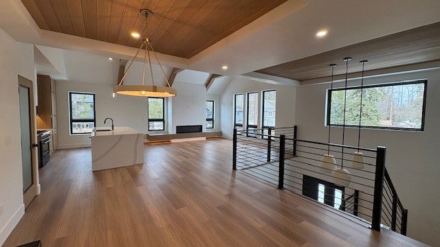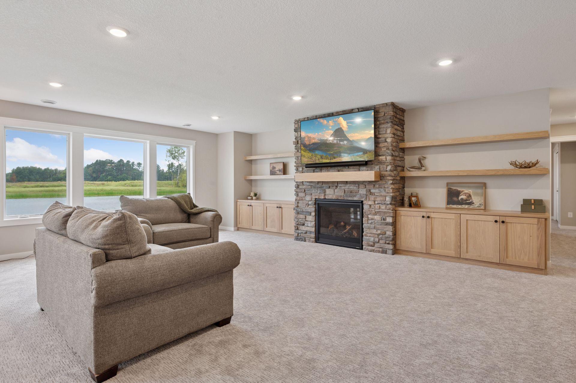 Welcome to Lang Builders Newest Masterpiece in Swedish Chapel Estates! Situated on a stunning 2.2-acre lot with serene pond views, this exceptional model home blends luxury design with functional living across two spacious levels. The main floor spans 2,044 square feet and showcases a thoughtfully designed layout perfect for both relaxing and entertaining. At the heart of the home, a gourmet chefs kitchen shines with custom white oak cabinetry, granite countertops, a stylish backsplash, and a generous island overlooking the vaulted living room. Enjoy added convenience and storage with a walk in butlers pantry featuring a prep sink, open shelving, and additional cabinetry. A striking stone fireplace flanked by built-ins adds warmth and charm to the living space. The luxurious primary suite is a true retreat, featuring a spa-inspired private bathroom, a spacious walk-in closet with a built-in organization system, and its own private laundry area designed for ultimate ease and privacy. Additional main-level highlights include a formal dining room with angled patio doors leading to a maintenance-free deck, a welcoming office with vaulted tongue-and-groove cedar ceilings just off the foyer, a spacious mudroom with a walk-in storage closet, and a stylish half bath for guests. Downstairs, the walkout lower level offers another 1,737 square feet of beautifully finished living space. Entertain effortlessly with a large wet bar and a bar height center island that opens to the expansive family room, complete with a second stone fireplace and built-in cabinetry. Three additional bedrooms, a 3/4 bath, a second laundry room, and ample storage make this level as practical as it is impressive.The oversized garage is a dream for hobbyists or storage needs42 feet wide and 28 feet deep on one side, fully insulated with floor drains for added utility. Crafted with premium materials throughout, this home includes Marvin windows, granite surfaces, custom soft-close cabinetry, high-grade flooring, LP Smart Siding, and moreshowcasing the attention to detail and quality Lang Builders is known for.