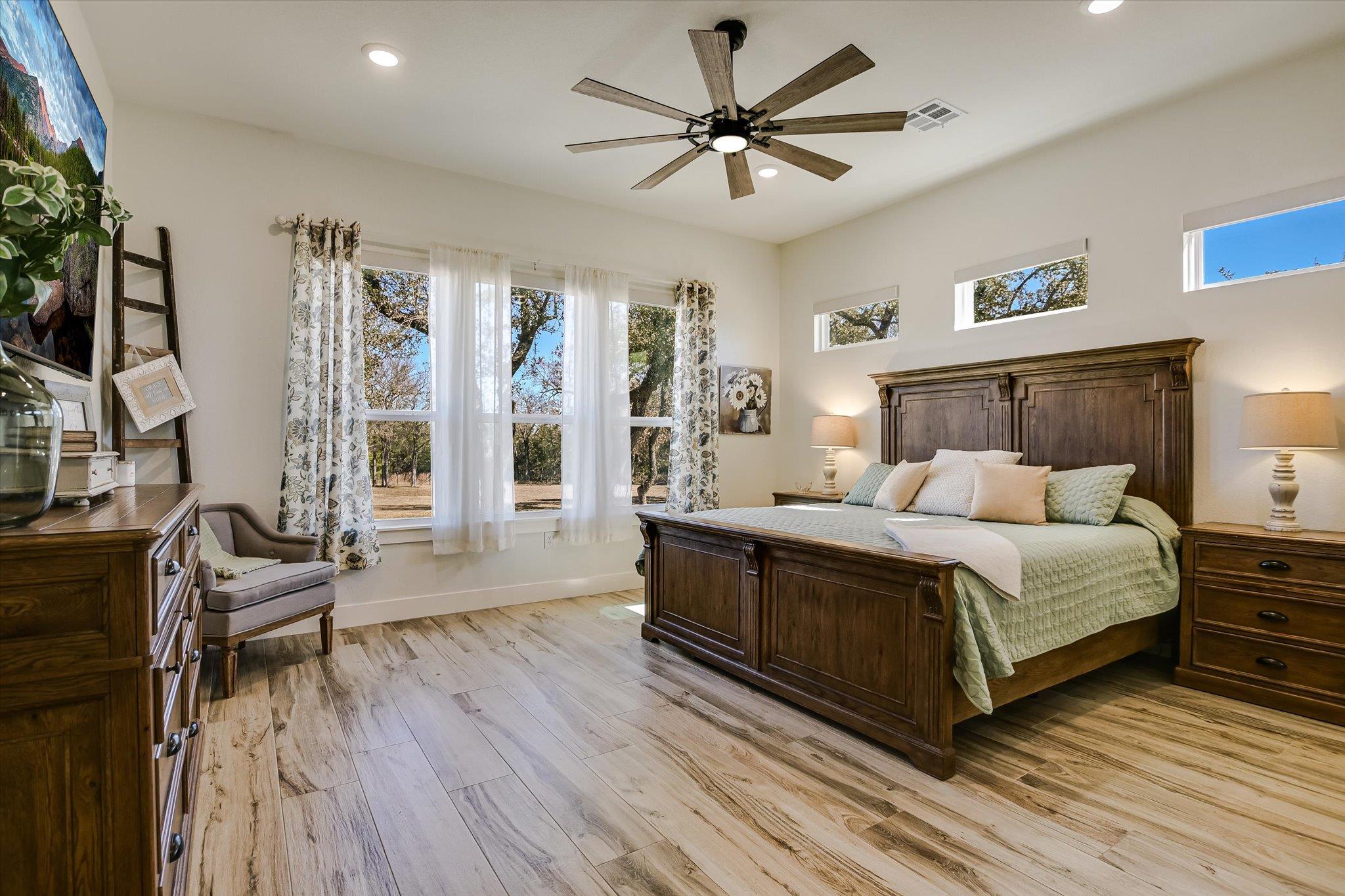 The Belville Plan built by Peachtree Residential Properties. Quick Move-In! Enjoy summer evenings on the rocking chair front porch. This brand new home has it all and offers a perfect blend of a beautiful new home and a place to enjoy the lake. All the homes in this 15 homesite community come with a deeded, covered, deep water slip located at the community dock. The lake is just a quick golf cart ride away for you to enjoy your boating adventures. The wide foyer is flanked by the Dining Room with wainscoting and a Flex Room that is perfect for an office or a place for a grand piano! The impressive 2 story Family Room has beautiful stained beams and plenty of windows. The fireplace has built-in cabinets on both sides and a wood fireplace surround. The open concept living is perfect for entertaining with a kitchen with cabinets to the ceiling, a large island, SS Kitchen Aid appliances, walk-in pantry and Breakfast Room. A bonus is the large Keeping Room with a vaulted ceiling. This home has a large Guest Room on the main floor wth a full bath, shower and a walk-in closet. Upstairs is a catwalk with hardwood floor, stained railing and metal balusters overlooking the Family Room. There is a reading nook at the upstairs hallway. The spa like Owners bath has a shower, soaking tub and double vanities with quartz countertop as well as a walk-in closet and a smaller closet. Upstairs there are 2 secondary bedrooms with private baths. There are engineered hardwoods in the main living areas, carpet in the bedrooms and tile in the Laundry Room and Baths. This home has a 2-car side entry garage and a tandem garage. This is a beautiful level lot. This community is a perfect place to call home and is minutes away lake fun, dining and shopping! If you are searching for a builder that provides TRUE design flexibility, look no further. Come see us today to learn about all the possibilities. Ask us about our rates as low as 3.99%* with use of sellers preferred lender, Movement Mortgage, with binding contract by 03/15/2026.