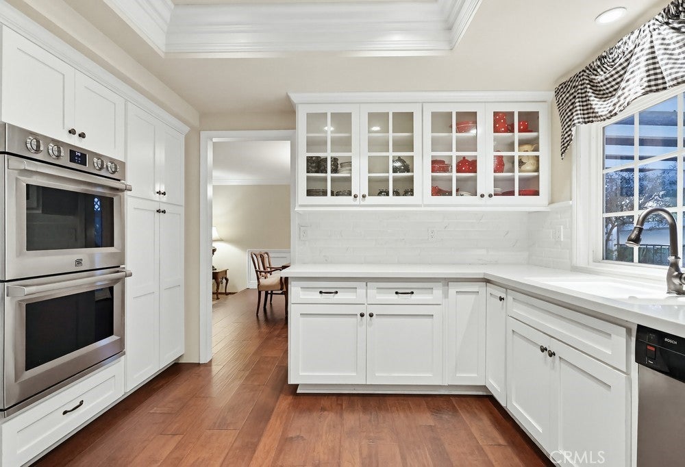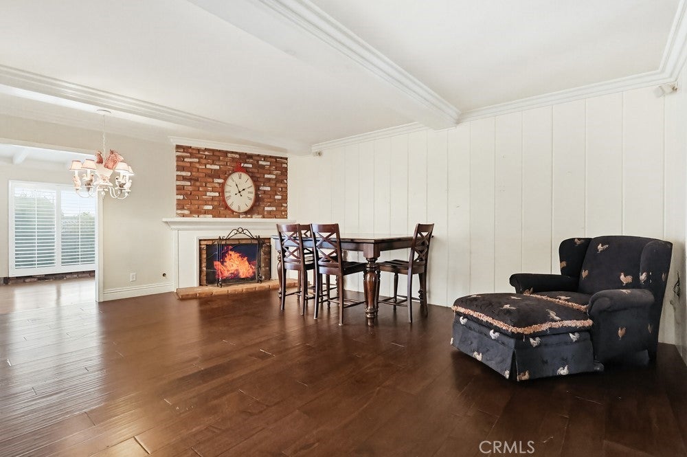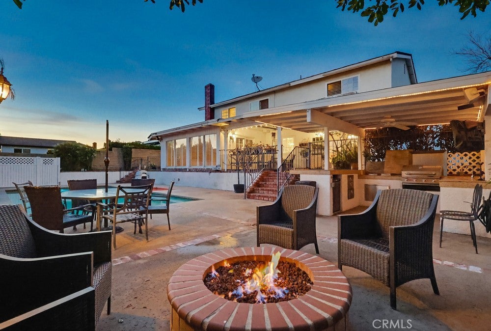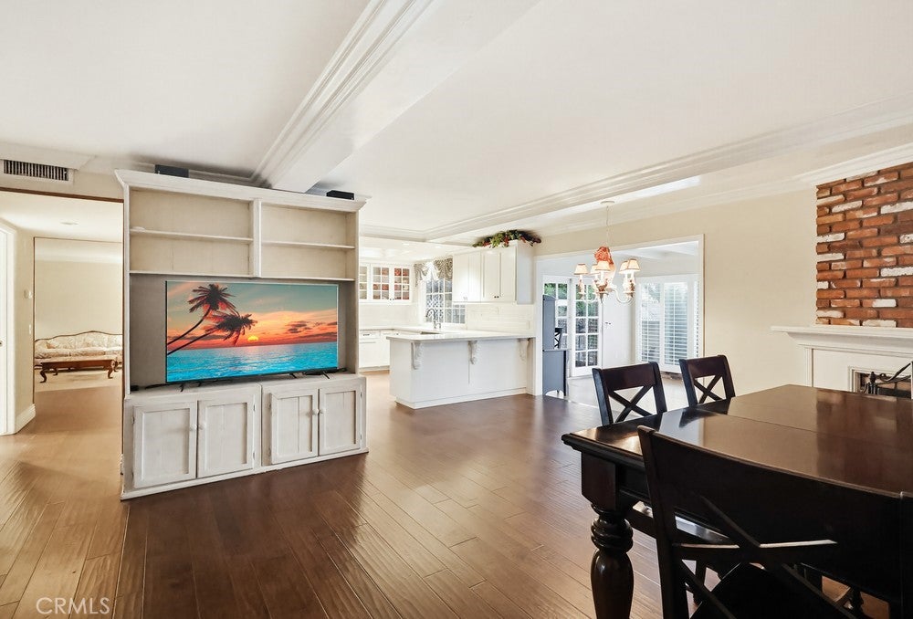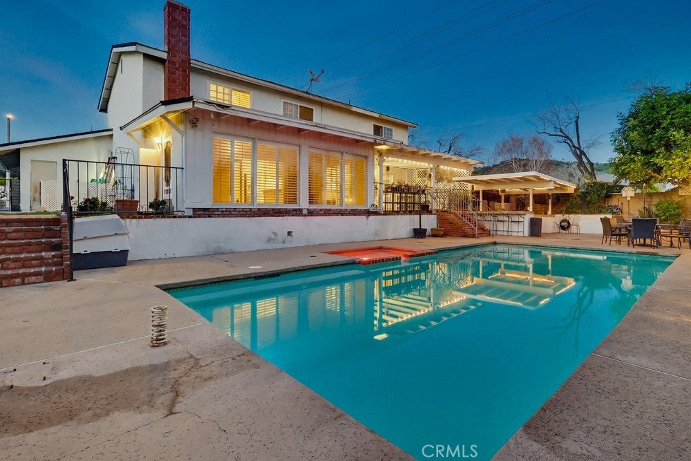 Welcome to 1962 Olivewood Street, a spacious two-story pool home ideally situated on a rare corner lot with beautiful views of the San Gabriel Mountainsthe only corner property along Emerald offering this unique vantage point. Excellent curb appeal welcomes you with a lush front lawn and inviting brick front porch and entry, creating a warm and timeless first impression.Inside, the home features a thoughtfully designed layout including a sunken family room, formal dining area, sunroom, and expansive living spaces ideal for both everyday living and entertaining. Plantation shutters throughout the home, including the sunroom, provide style and privacy, while crown molding throughout the downstairs living areas and in the primary bedroom adds architectural character.The living room and kitchen showcase coffered ceilings with recessed lighting along with a cozy gas fireplace featuring a brick hearth and wood mantle, creating an inviting central gathering space. Beautiful wood flooring flows throughout the kitchen, dining, and family room areas, enhancing warmth and continuity throughout the main level.The updated kitchen is designed with both functionality and style in mind, featuring shaker-style cabinetry, quartz countertops, subway tile backsplash, and a custom mosaic accent backsplash behind the cooktop. Additional upgrades include rollout cabinet drawers and dual Lazy Susan storage, maximizing organization and usability.Upstairs, all bedrooms are generously sized and include ceiling fans, while the primary suite offers dual closets and crown molding, creating a comfortable retreat. The upstairs hallway bathroom has been updated with a shaker-style vanity, granite countertops, and tile flooring. Bathrooms and select living areas also feature tasteful wainscoting accents that enhance the homes overall charm.The bright sunroom adds flexible living space and opens through double doors from the dining area to an outdoor patio, creating seamless indoor-outdoor flow.The backyard is ideal for entertaining with a private sunken pool area, fire pit, and a fully equipped outdoor kitchen featuring a barbecue, sink, refrigerator, ceiling fan, TV, and ambient string lighting, perfect for enjoying Southern California living year-round.A rare opportunity combining mountain views, a premier corner location, spacious living areas, and exceptional indoor-outdoor amenities in one of La Vernes most desirable neighborhoods. Dont miss out on this opportunity!