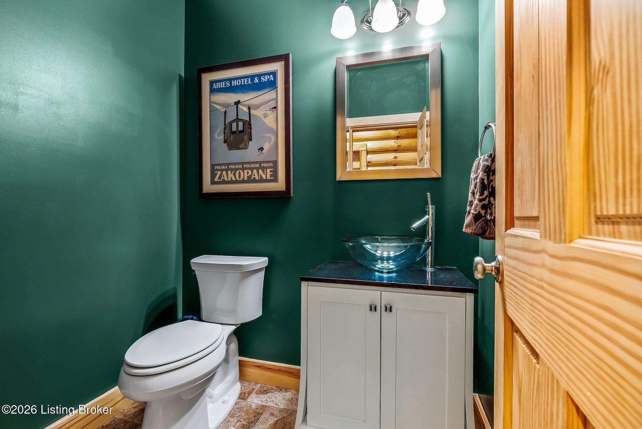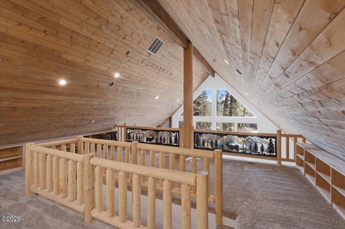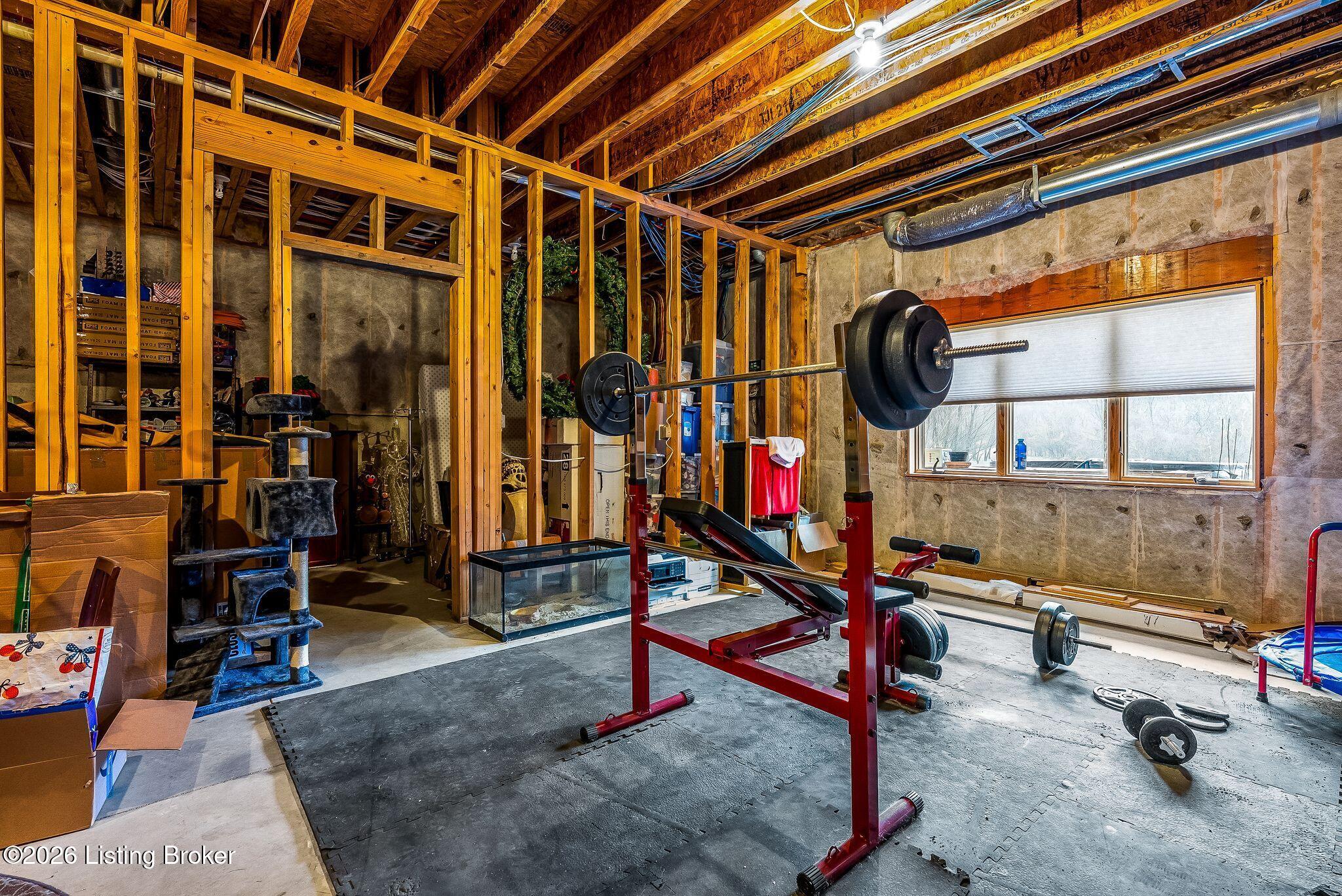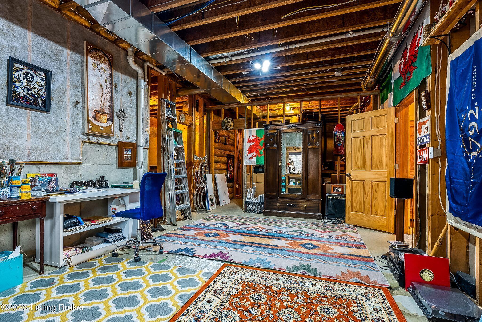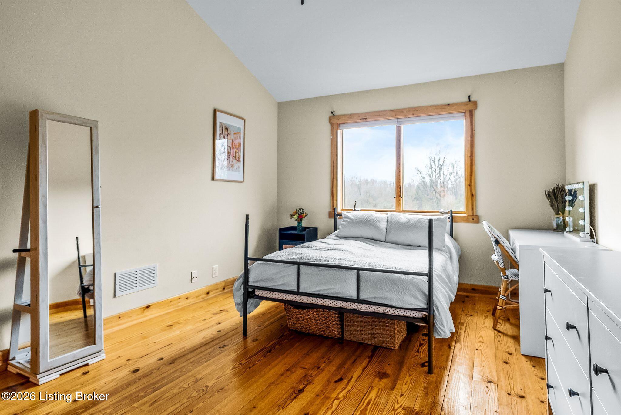Welcome to 2212 Ballard School Rd in LaGrange, a spectacular custom-built log estate set on 16 private acres with breathtaking views of woods and pasture in every direction. Tucked mile off the main road, this property offers exceptional privacy while still being just minutes from LaGrange shopping, dining, and I-71. Step inside to a breathtaking great room defined by a dramatic 2.5-story vaulted ceiling and an expansive A-frame wall of windows that fills the space with sunlight and captures sweeping views of the peaceful surroundings. Extraordinary, handcrafted stone masonry anchors the room with a beautiful fireplace and continues throughout both the interior and exterior of the home, highlighting the craftsmanship of this one-of-a-kind property. Acacia wood floors run through the entry, great room, kitchen, and primary suite, adding warmth and character. The first-floor primary suite offers a relaxing retreat with a trey ceiling, sitting area, dual walk-in closets, and private deck overlooking the rear property. The spacious bath includes dual vanity, large tub and walk in shower creating a comfortable and functional layout. Designed for everyday living and entertaining, the kitchen opens to the dining and living areas and includes an oversized pantry, mudroom, and convenient laundry access with direct entry to the oversized two-car garage. Built-in speakers enhance both the kitchen and outdoor deck spaces. Off the dining area, a large deck provides the perfect setting for enjoying the surrounding countryside. Upstairs, youll find four generously sized bedrooms, including one with a private balcony overlooking the front of the property and another with an en-suite bath. The upper level also features a loft and an additional full bathroom. The finished walkout lower level offers additional living and entertaining space, featuring a bar area and a beautifully crafted hearth with a wood stove, along with doors that open to the rear patio and outdoor gathering area. An additional 1,600 square feet of unfinished basement provide excellent expansion potential, including two framed and electrically wired rooms ready to be finished and plumbing already installed for a future basement bathroom. Outdoor living is equally impressive with five patios and decks, including the private primary suite balcony. The property also features an outdoor firepit, stone pizza oven, outdoor grilling area, deer stands, dog kennels, and even an ATV included with the property, making the acreage a true outdoor playground. Recent improvements include newly stripped and resealed logs along the rear of the home and rebuilt balcony railings. The home is also equipped with dual geothermal heat pump systems and a whole-house Culligan water filtration system with separate drinking water filtration including a new water heater (2025). With 16 acres of rolling land, partial woods, expansive views, and unmatched privacy, this extraordinary property offers the perfect blend of rustic elegance, modern efficiency, and convenient location. A rare opportunity to own this one-of-a-kind property that offers privacy, character, and incredible craftsmanship while still being conveniently located near LaGrange amenities.