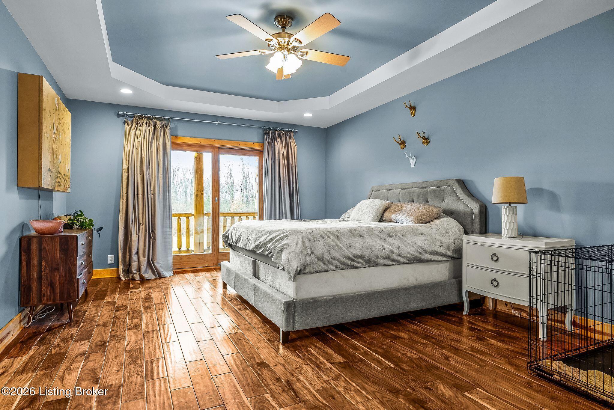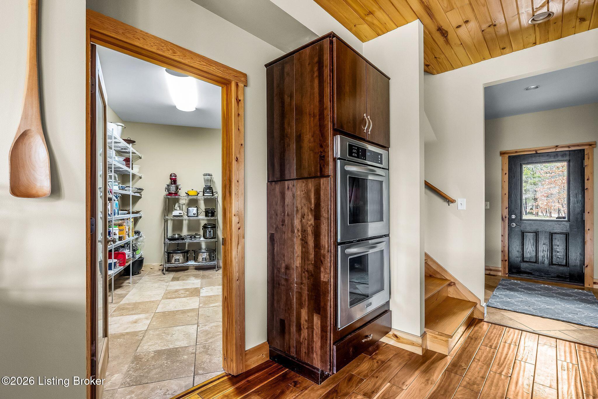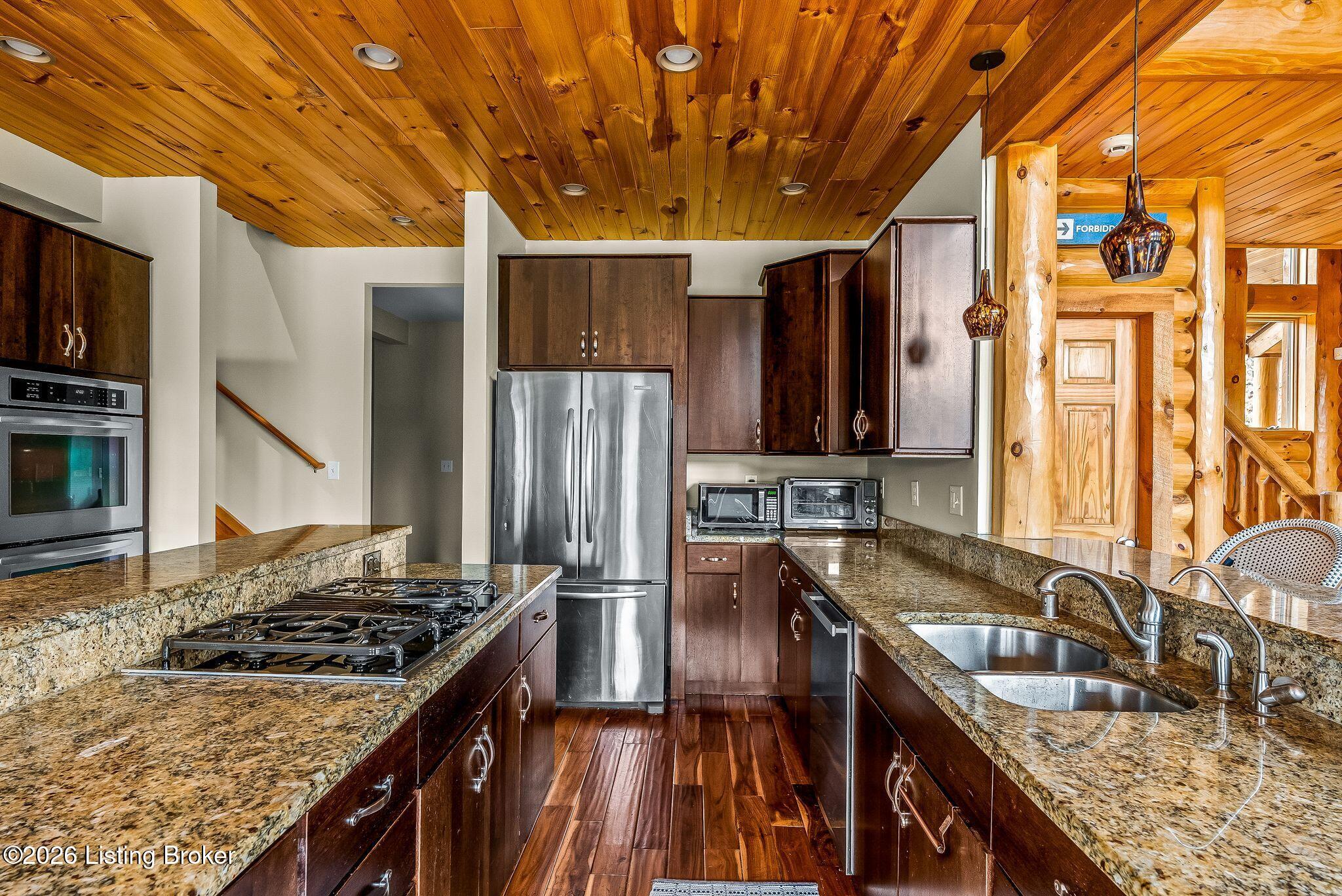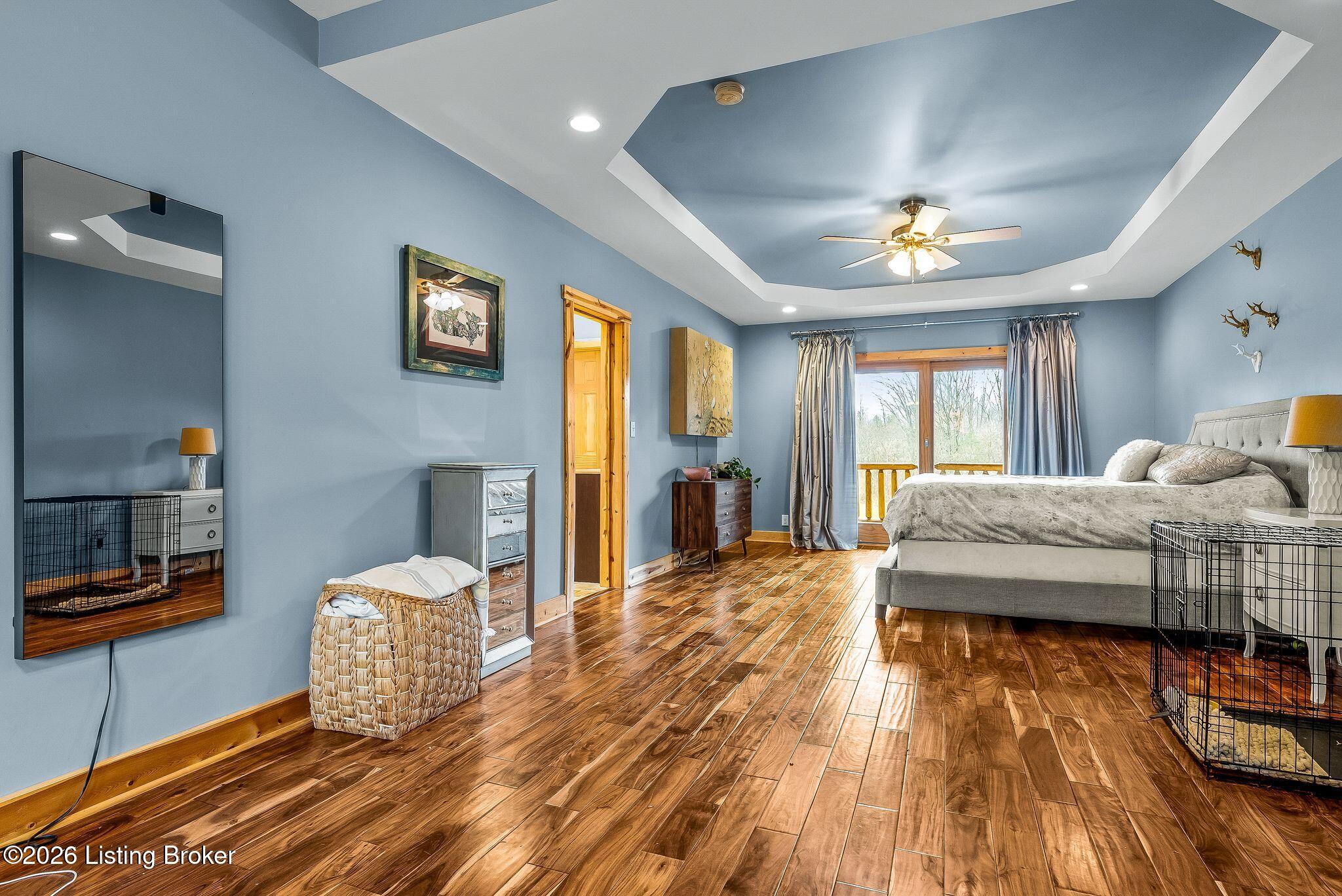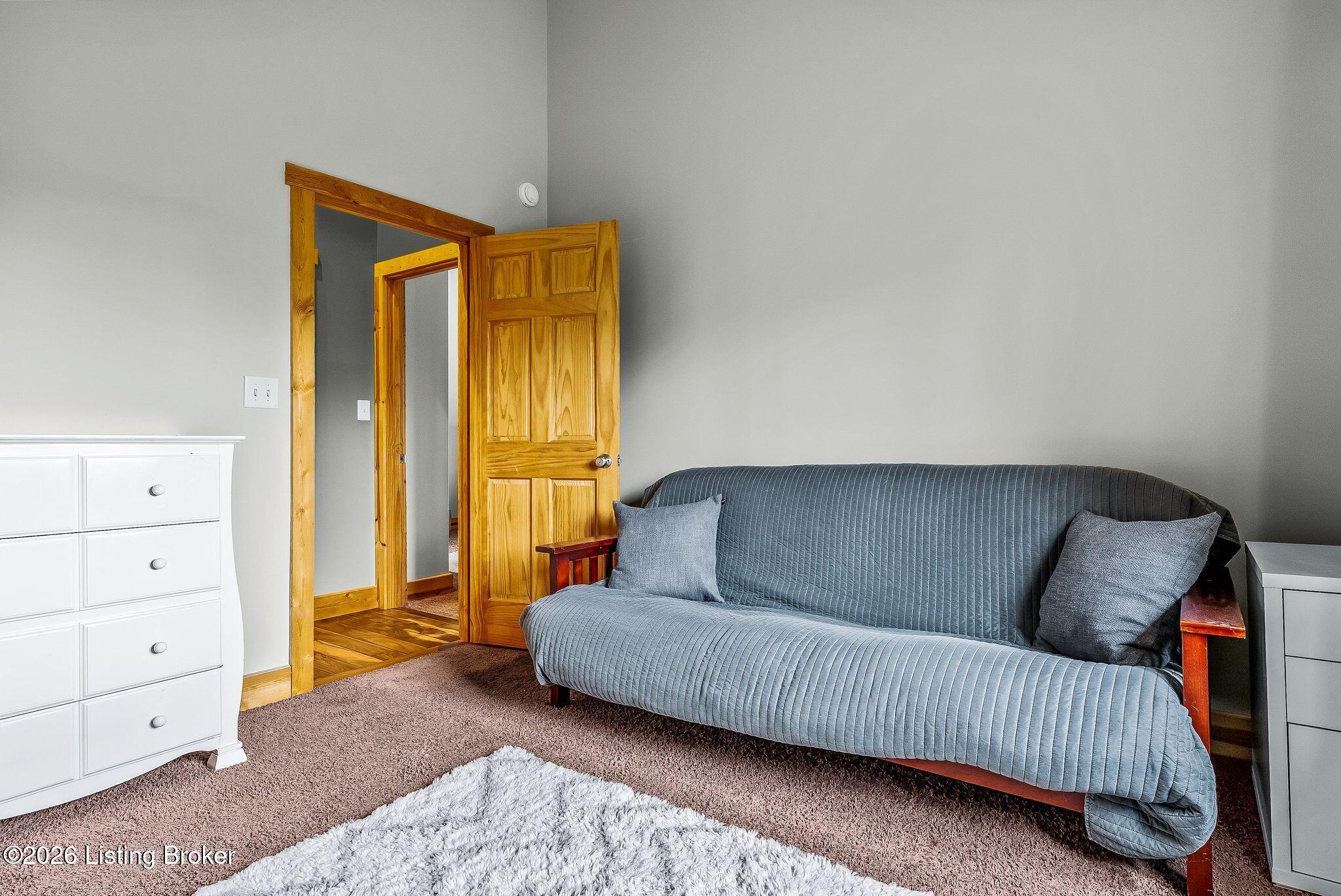 Welcome to 2212 Ballard School Rd in LaGrange, a spectacular custom-built log estate set on 16 private acres with breathtaking views of woods and pasture in every direction. Tucked mile off the main road, this property offers exceptional privacy while still being just minutes from LaGrange shopping, dining, and I-71. Step inside to a breathtaking great room defined by a dramatic 2.5-story vaulted ceiling and an expansive A-frame wall of windows that fills the space with sunlight and captures sweeping views of the peaceful surroundings. Extraordinary, handcrafted stone masonry anchors the room with a beautiful fireplace and continues throughout both the interior and exterior of the home, highlighting the craftsmanship of this one-of-a-kind property. Acacia wood floors run through the entry, great room, kitchen, and primary suite, adding warmth and character. The first-floor primary suite offers a relaxing retreat with a trey ceiling, sitting area, dual walk-in closets, and private deck overlooking the rear property. The spacious bath includes dual vanity, large tub and walk in shower creating a comfortable and functional layout. Designed for everyday living and entertaining, the kitchen opens to the dining and living areas and includes an oversized pantry, mudroom, and convenient laundry access with direct entry to the oversized two-car garage. Built-in speakers enhance both the kitchen and outdoor deck spaces. Off the dining area, a large deck provides the perfect setting for enjoying the surrounding countryside. Upstairs, youll find four generously sized bedrooms, including one with a private balcony overlooking the front of the property and another with an en-suite bath. The upper level also features a loft and an additional full bathroom. The finished walkout lower level offers additional living and entertaining space, featuring a bar area and a beautifully crafted hearth with a wood stove, along with doors that open to the rear patio and outdoor gathering area. An additional 1,600 square feet of unfinished basement provide excellent expansion potential, including two framed and electrically wired rooms ready to be finished and plumbing already installed for a future basement bathroom. Outdoor living is equally impressive with five patios and decks, including the private primary suite balcony. The property also features an outdoor firepit, stone pizza oven, outdoor grilling area, deer stands, dog kennels, and even an ATV included with the property, making the acreage a true outdoor playground. Recent improvements include newly stripped and resealed logs along the rear of the home and rebuilt balcony railings. The home is also equipped with dual geothermal heat pump systems and a whole-house Culligan water filtration system with separate drinking water filtration including a new water heater (2025). With 16 acres of rolling land, partial woods, expansive views, and unmatched privacy, this extraordinary property offers the perfect blend of rustic elegance, modern efficiency, and convenient location. A rare opportunity to own this one-of-a-kind property that offers privacy, character, and incredible craftsmanship while still being conveniently located near LaGrange amenities.