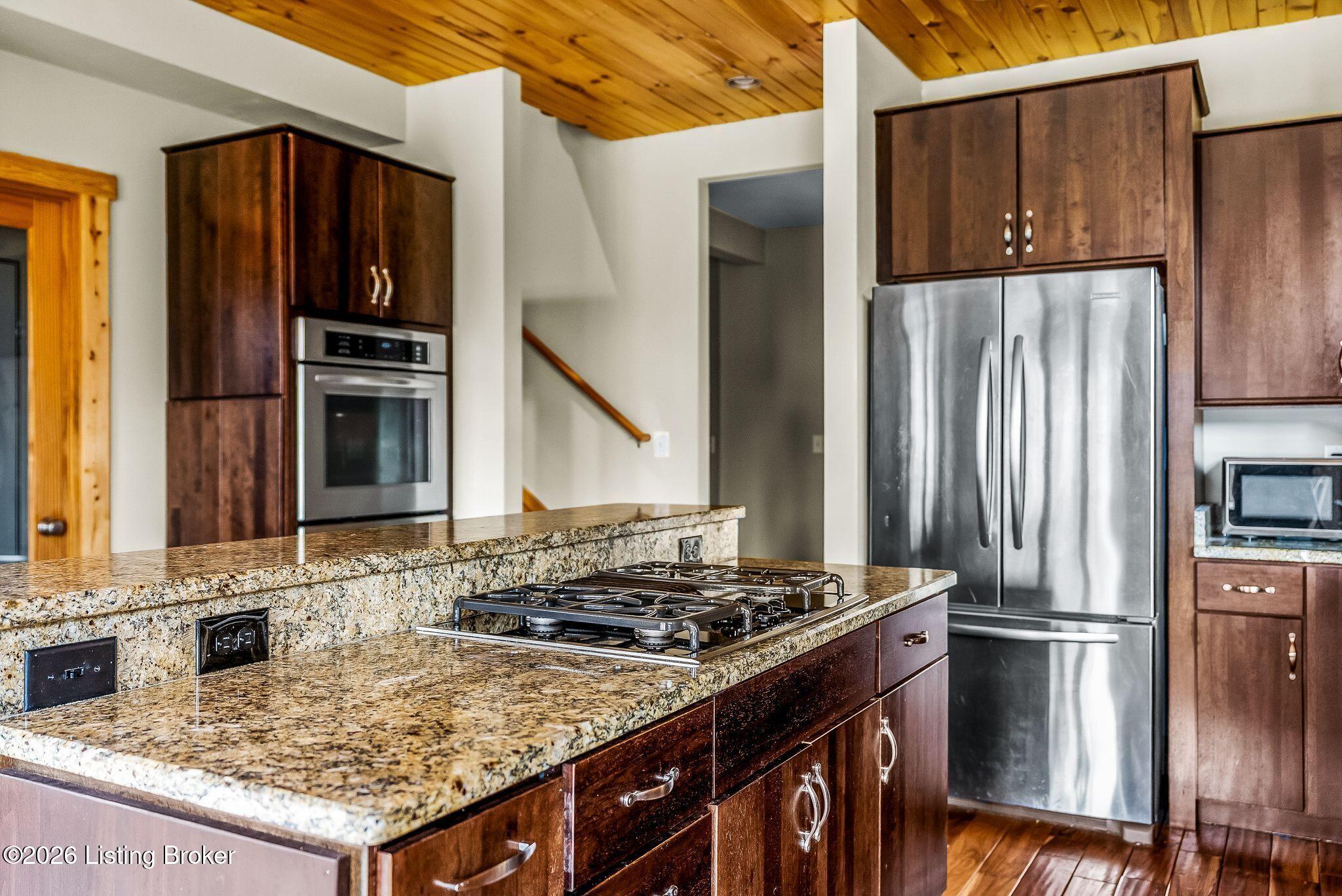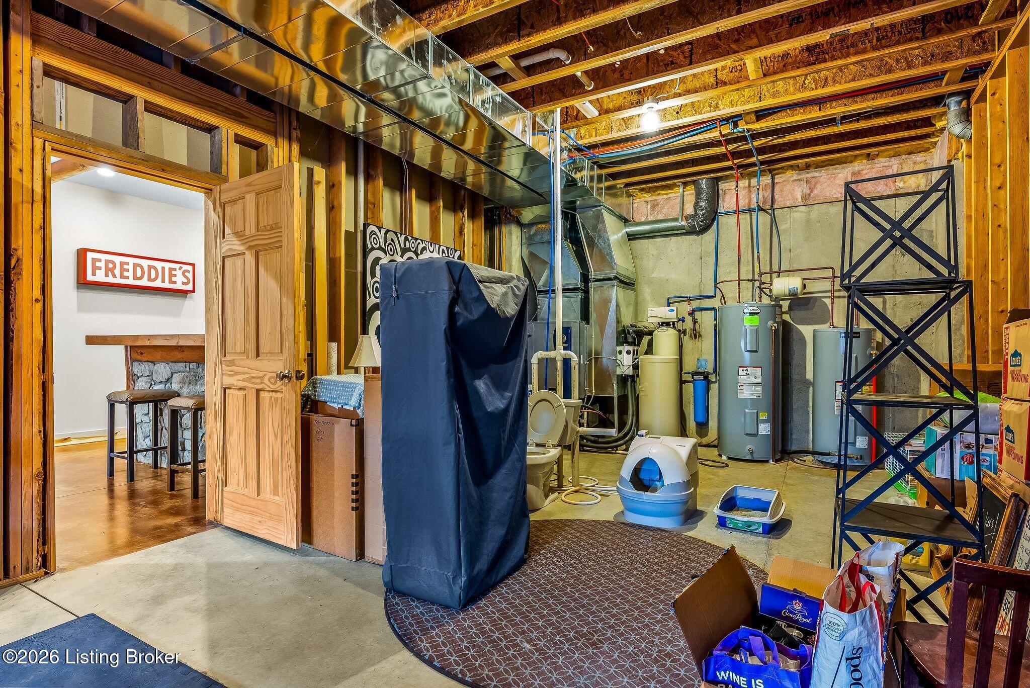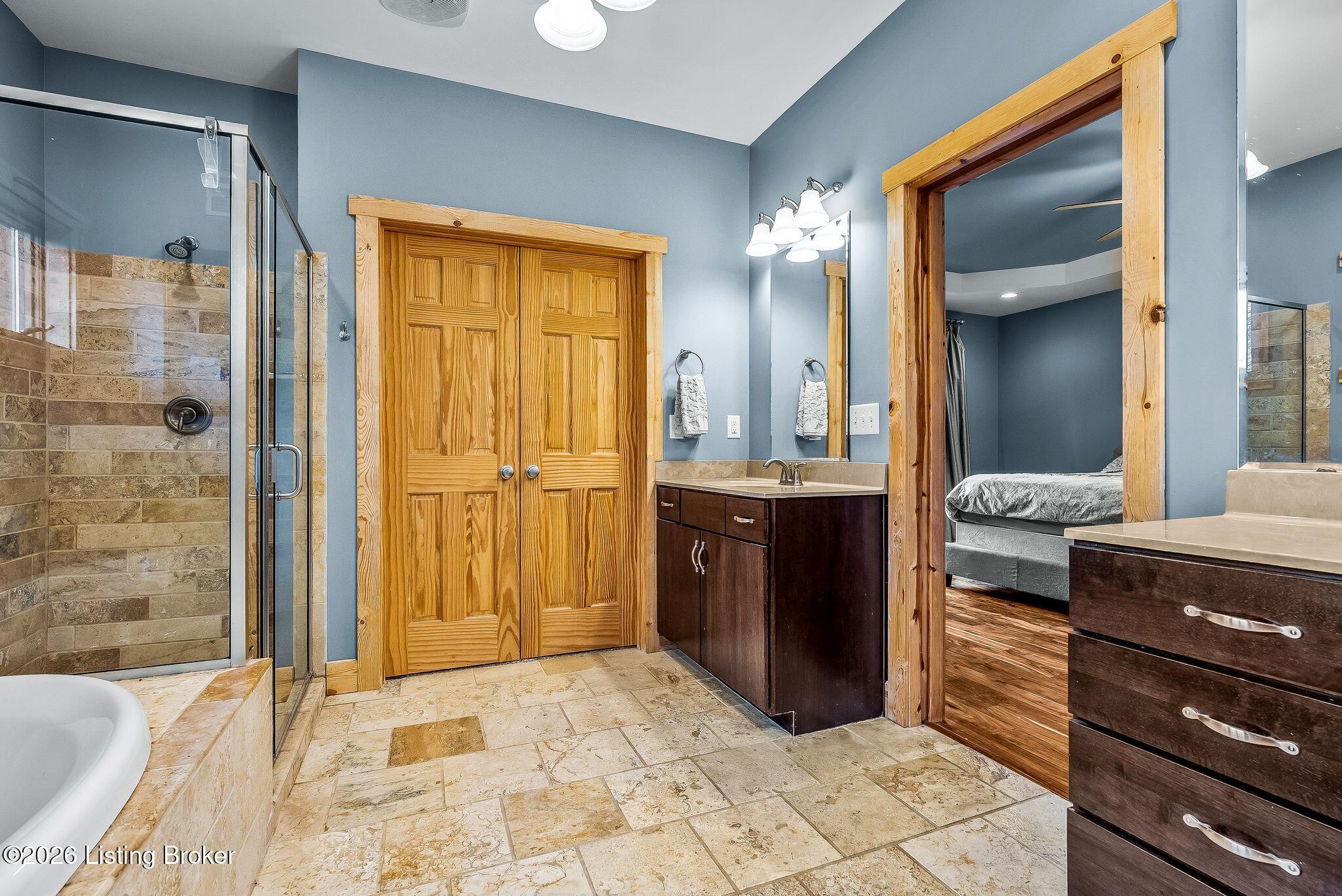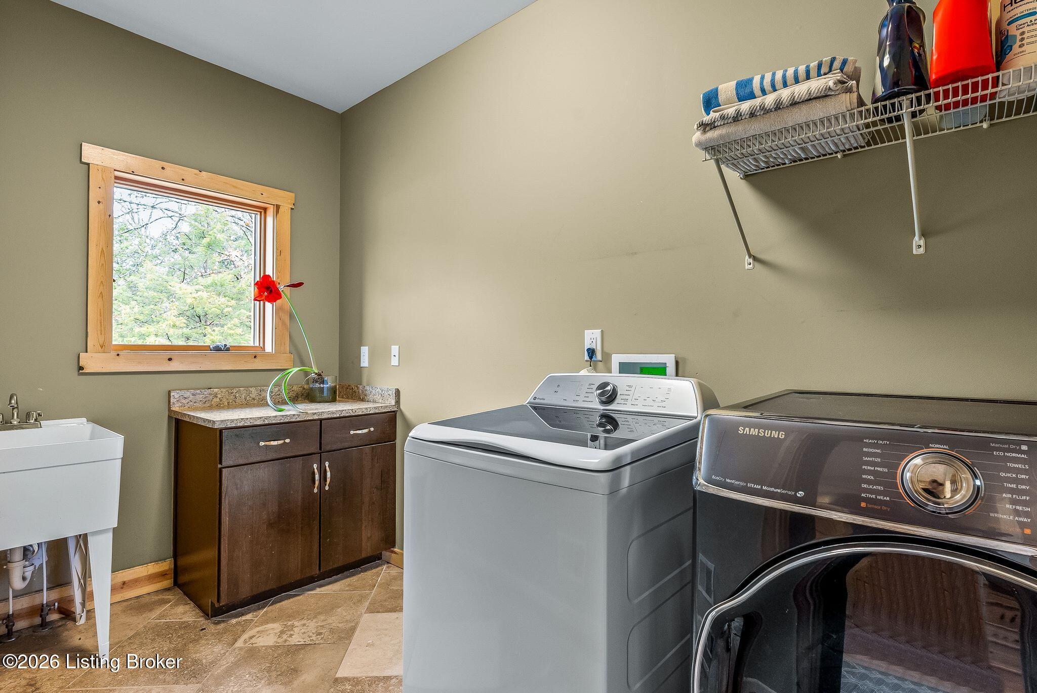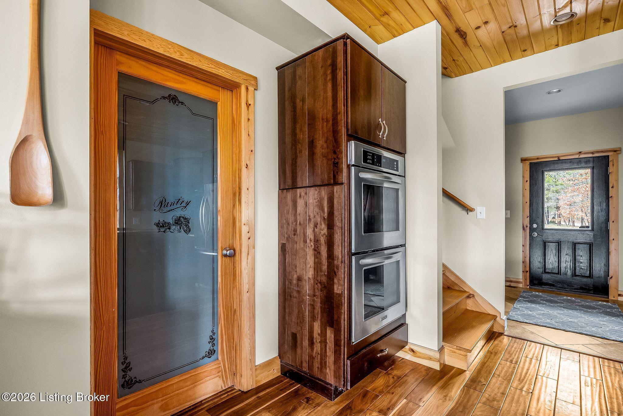 Welcome to 2212 Ballard School Rd in LaGrange, a spectacular custom-built log estate set on 16 private acres with breathtaking views of woods and pasture in every direction. Tucked mile off the main road, this property offers exceptional privacy while still being just minutes from LaGrange shopping, dining, and I-71. Step inside to a breathtaking great room defined by a dramatic 2.5-story vaulted ceiling and an expansive A-frame wall of windows that fills the space with sunlight and captures sweeping views of the peaceful surroundings. Extraordinary, handcrafted stone masonry anchors the room with a beautiful fireplace and continues throughout both the interior and exterior of the home, highlighting the craftsmanship of this one-of-a-kind property. Acacia wood floors run through the entry, great room, kitchen, and primary suite, adding warmth and character. The first-floor primary suite offers a relaxing retreat with a trey ceiling, sitting area, dual walk-in closets, and private deck overlooking the rear property. The spacious bath includes dual vanity, large tub and walk in shower creating a comfortable and functional layout. Designed for everyday living and entertaining, the kitchen opens to the dining and living areas and includes an oversized pantry, mudroom, and convenient laundry access with direct entry to the oversized two-car garage. Built-in speakers enhance both the kitchen and outdoor deck spaces. Off the dining area, a large deck provides the perfect setting for enjoying the surrounding countryside. Upstairs, youll find four generously sized bedrooms, including one with a private balcony overlooking the front of the property and another with an en-suite bath. The upper level also features a loft and an additional full bathroom. The finished walkout lower level offers additional living and entertaining space, featuring a bar area and a beautifully crafted hearth with a wood stove, along with doors that open to the rear patio and outdoor gathering area. An additional 1,600 square feet of unfinished basement provide excellent expansion potential, including two framed and electrically wired rooms ready to be finished and plumbing already installed for a future basement bathroom. Outdoor living is equally impressive with five patios and decks, including the private primary suite balcony. The property also features an outdoor firepit, stone pizza oven, outdoor grilling area, deer stands, dog kennels, and even an ATV included with the property, making the acreage a true outdoor playground. Recent improvements include newly stripped and resealed logs along the rear of the home and rebuilt balcony railings. The home is also equipped with dual geothermal heat pump systems and a whole-house Culligan water filtration system with separate drinking water filtration including a new water heater (2025). With 16 acres of rolling land, partial woods, expansive views, and unmatched privacy, this extraordinary property offers the perfect blend of rustic elegance, modern efficiency, and convenient location. A rare opportunity to own this one-of-a-kind property that offers privacy, character, and incredible craftsmanship while still being conveniently located near LaGrange amenities.