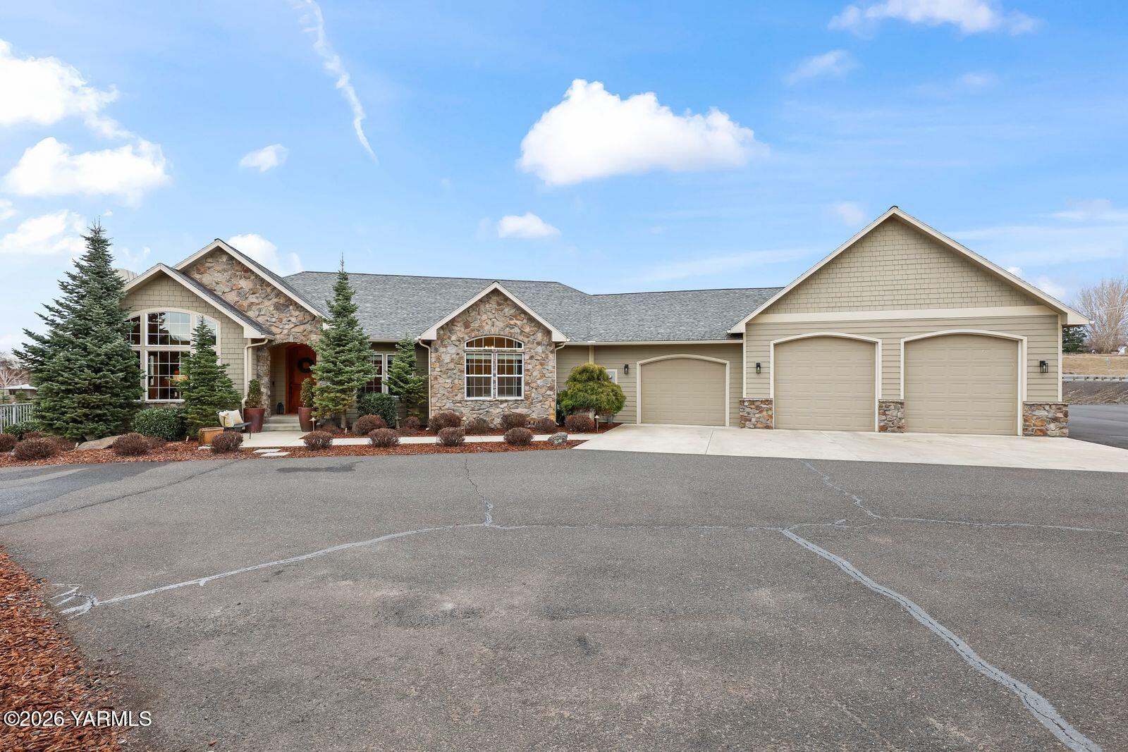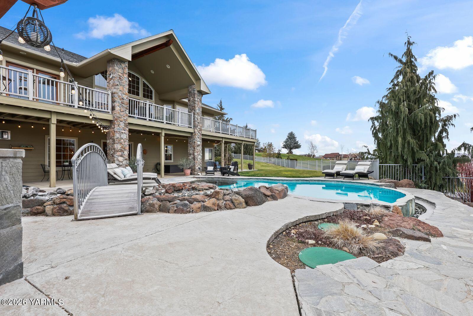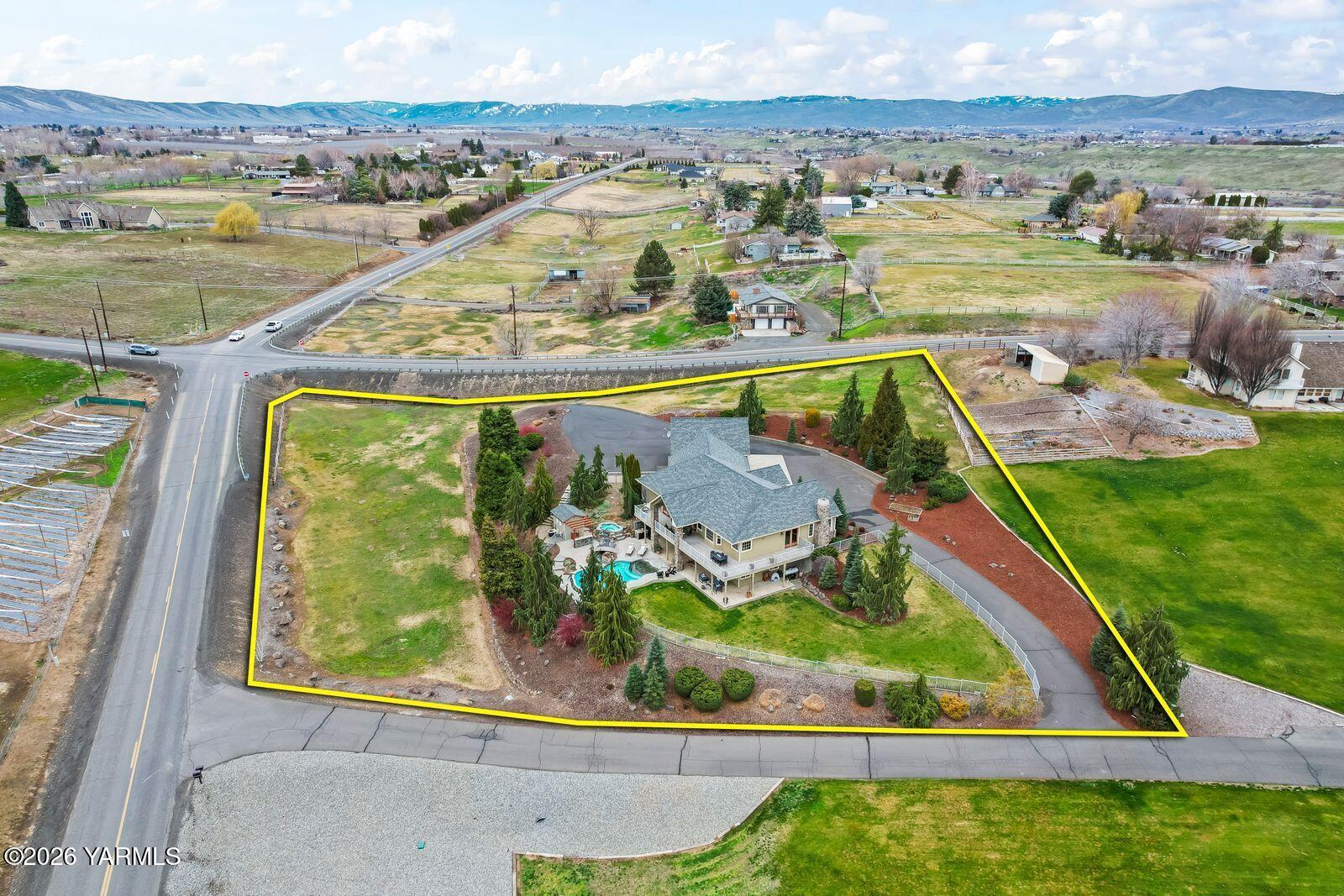 Stunning custom-built home by DJ Turner Construction on 1.97 acres in the heart of West Valley offers exceptional craftsmanship, comfort, and resort-style living. This spacious 3,584 sq ft home features 5 bedrooms and 4 bathrooms with beautiful finishes throughout, including vaulted ceilings, natural stone fireplaces, hardwood floors, granite countertops, and warm wood accents that create an inviting atmosphere. Multiple living areas provide flexibility for both everyday living and entertaining, while large windows frame peaceful views of surrounding orchards and rolling hills. The outdoor spaces are truly exceptional, featuring a zero-entry, infinity-edge pool, hot tub, outdoor kitchen, and expansive entertaining areas that truly feel like your own private resort. Enjoy quiet mornings on the deck listening to the sounds of water and nature while taking in incredible sunrises over the orchards, and relaxing evenings soaking in the hot tub under a sky full of stars. The property offers privacy and space for kids and pets to play, mature low-maintenance landscaping, and a welcoming neighborhood setting just minutes from West Valley High School and a short drive to everyday amenities. Additional highlights include a three-car garage with a pull-through third bay, tall doors for larger vehicles, full RV hookups, a convenient pull-around driveway with ample parking for trucks or RVs, and a dedicated dog run. This thoughtfully designed home offers peaceful country living with high-end features while remaining close to everything West Valley has to offer.