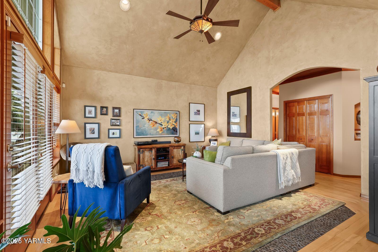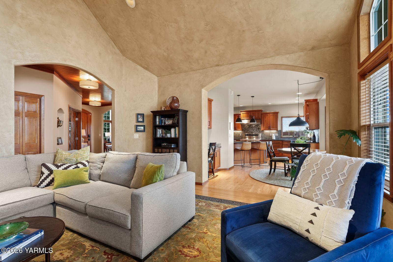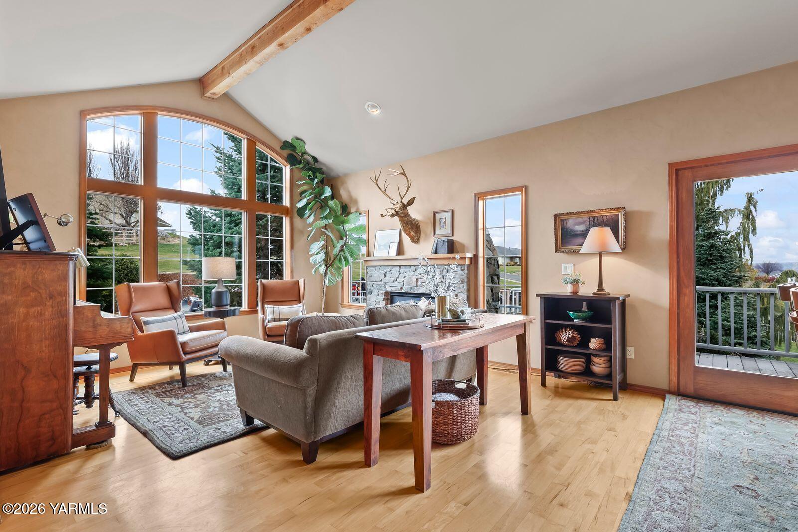 Stunning custom-built home by DJ Turner Construction on 1.97 acres in the heart of West Valley offers exceptional craftsmanship, comfort, and resort-style living. This spacious 3,584 sq ft home features 5 bedrooms and 4 bathrooms with beautiful finishes throughout, including vaulted ceilings, natural stone fireplaces, hardwood floors, granite countertops, and warm wood accents that create an inviting atmosphere. Multiple living areas provide flexibility for both everyday living and entertaining, while large windows frame peaceful views of surrounding orchards and rolling hills. The outdoor spaces are truly exceptional, featuring a zero-entry, infinity-edge pool, hot tub, outdoor kitchen, and expansive entertaining areas that truly feel like your own private resort. Enjoy quiet mornings on the deck listening to the sounds of water and nature while taking in incredible sunrises over the orchards, and relaxing evenings soaking in the hot tub under a sky full of stars. The property offers privacy and space for kids and pets to play, mature low-maintenance landscaping, and a welcoming neighborhood setting just minutes from West Valley High School and a short drive to everyday amenities. Additional highlights include a three-car garage with a pull-through third bay, tall doors for larger vehicles, full RV hookups, a convenient pull-around driveway with ample parking for trucks or RVs, and a dedicated dog run. This thoughtfully designed home offers peaceful country living with high-end features while remaining close to everything West Valley has to offer.