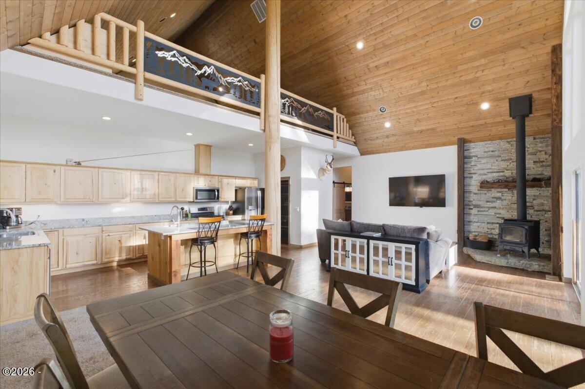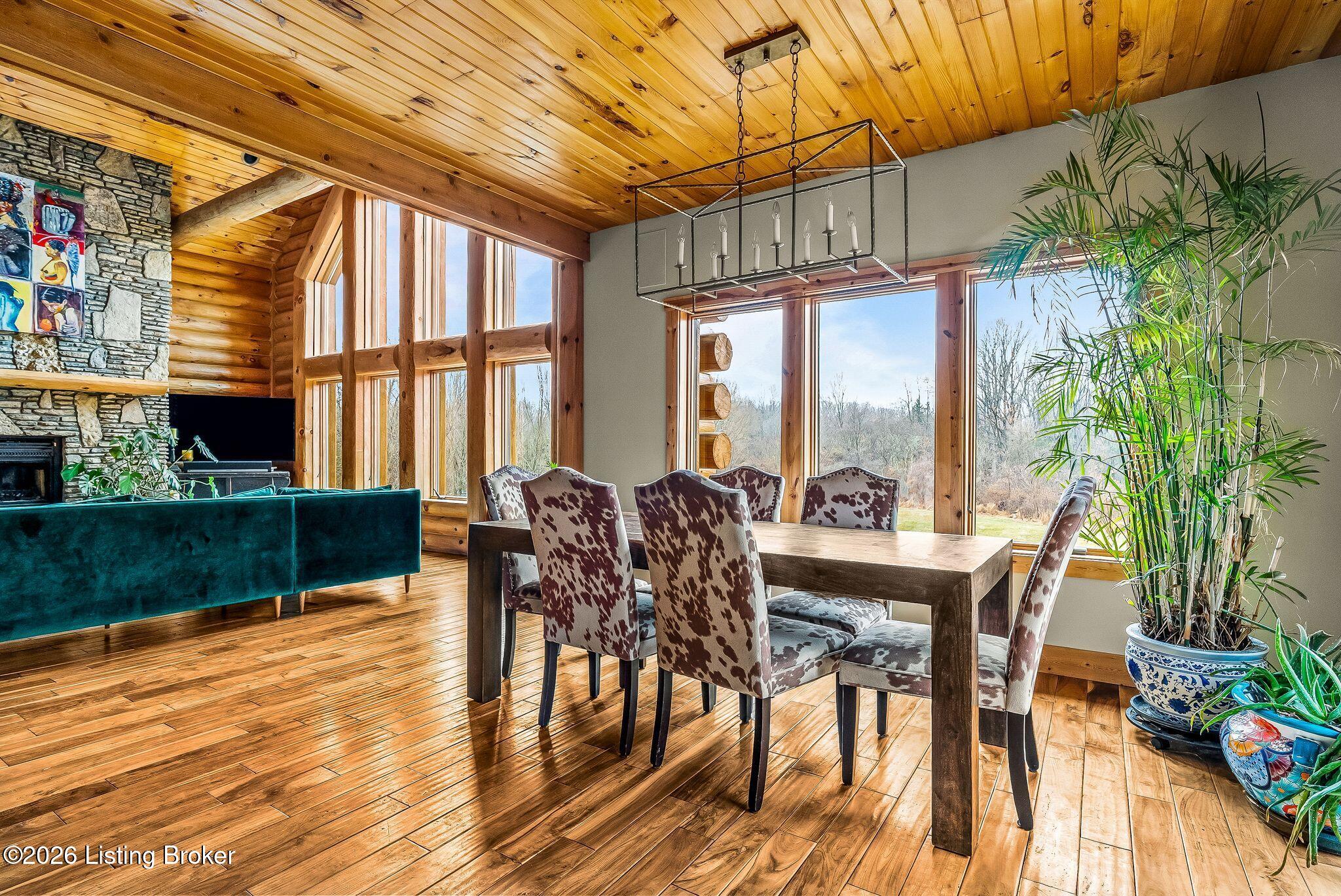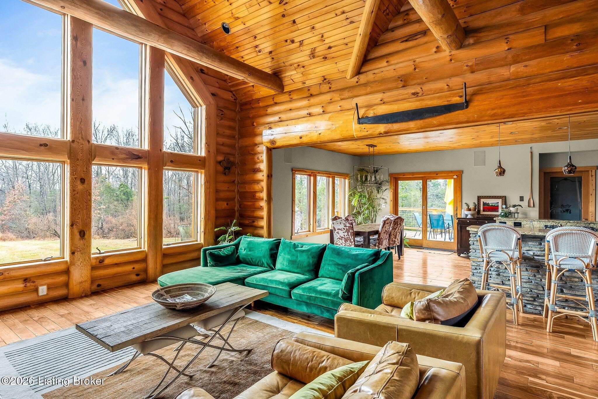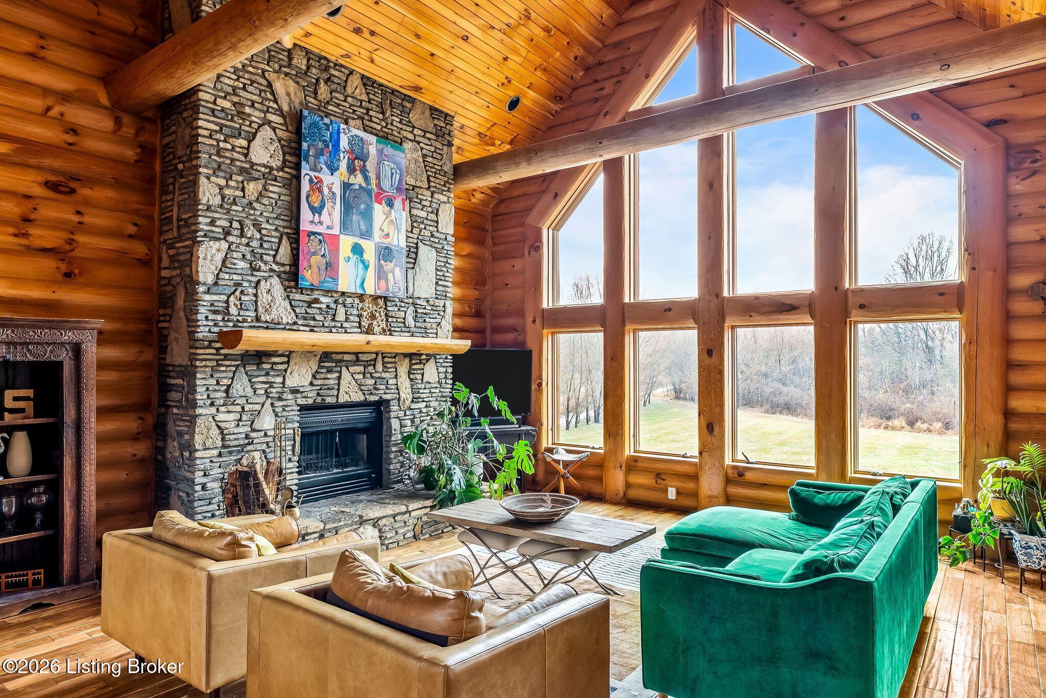Welcome to 2212 Ballard School Rd in LaGrange, a spectacular custom-built log estate set on 16 private acres with breathtaking views of woods and pasture in every direction. Tucked mile off the main road, this property offers exceptional privacy while still being just minutes from LaGrange shopping, dining, and I-71. Step inside to a breathtaking great room defined by a dramatic 2.