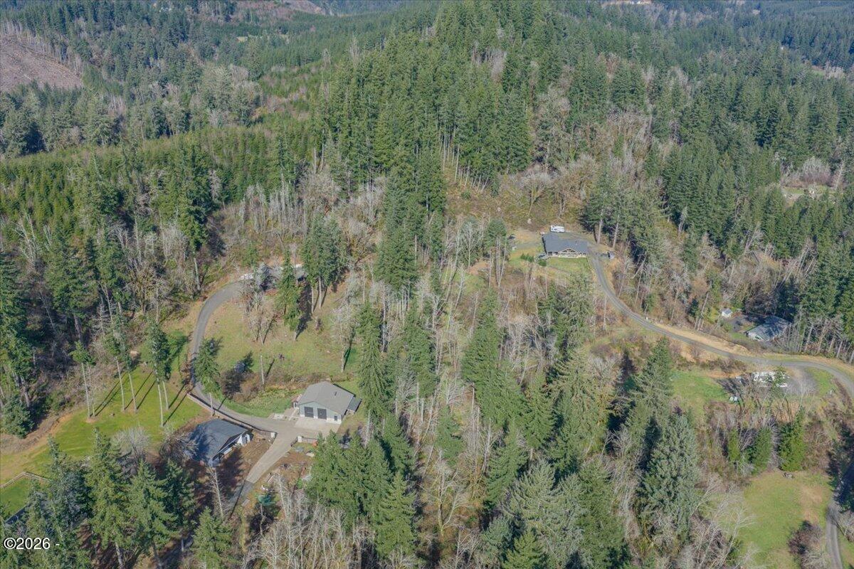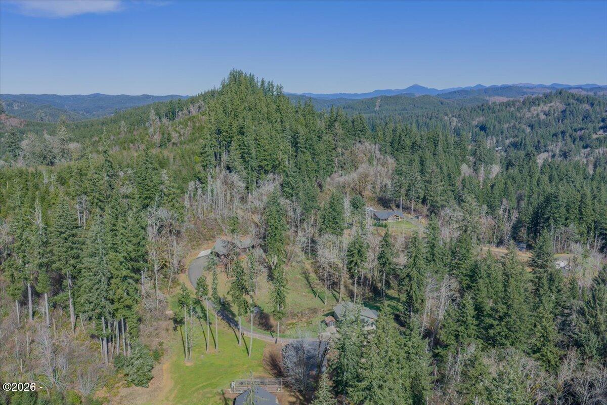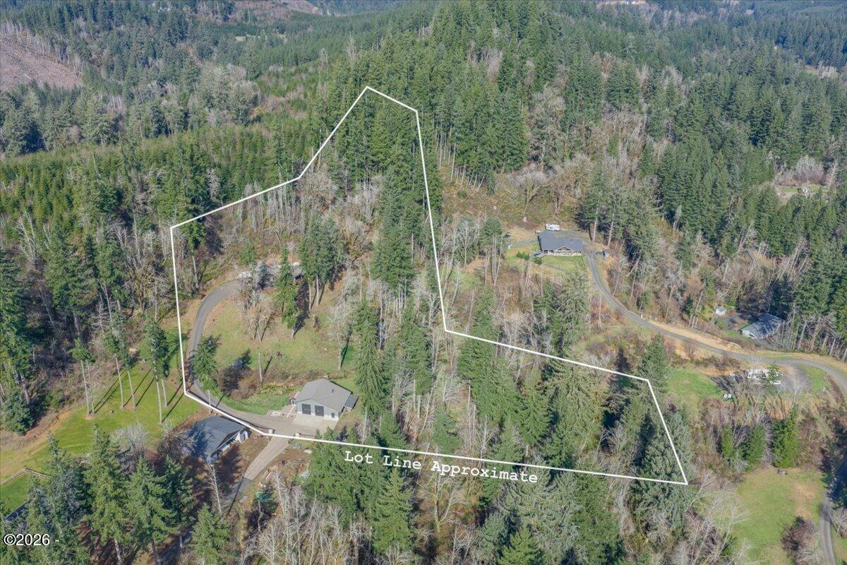Country freedom with coastal convenience.Situated on 5 usable acres along desirable Olalla Road, this private property offers space to live, build, create, & breathe - all just 6 miles to Newports iconic bay front shopping, rests, & marina, and only mile to downtown Toledo.Open floor plan & en-suite primary w/ fountain shower & views fr. private wrap around deck and hot tub. Standout features:36x48 shop with loft substantial, versatile, & ready for hobbies, equipments, storage, RV or possible business use. Even better, the shop has its own separate well, providing added flexibility and long-term functionality. Inside the home, youll find comfortable living spaces surrounded by natural landscape and peaceful views. An 80-gallon heat pump water heater with recirculation system adds modern efficiency and the convenience of near-instant hot water. The setting offers the best of both worlds: rural privacy with quick access to town amenities and the Oregon Coast. A small lot line adjustment will be completed prior to closing. If youve been searching for acreage with infrastructure already in place and room to expand your vision this Olalla property delivers.