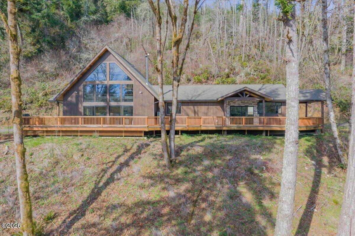 Country freedom with coastal convenience, situated on 5 usable acres along desirable Olalla Road, this private property offers space to live, build, create, & breathe - all just 6 miles to Newports iconic bay front shopping, rests, & marina, and only mile to downtown Toledo Open floor plan & en-suite primary w/ fountain shower & views frm priv. wrap around deck and hot tub. Standout features:36x48 shop with loft substantial, versatile, & ready for hobbies, equip., storage, RV or possible business use. Even better, the shop has its own separate well, providing added flexibility and long-term functionality.Inside the home, youll find comfortable living spaces surrounded by natural landscape and peaceful views. An 80-gallon heat pump water heater with recirculation system adds modern efficiency and the convenience of near-instant hot water.The setting offers the best of both worlds: rural privacy with quick access to town amenities and the Oregon Coast.If youve been searching for acreage with infrastructure already in place and room to expand your vision this Olalla property delivers. A small lot line adjustment will be completed prior to closing.