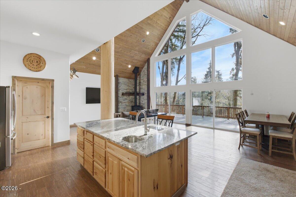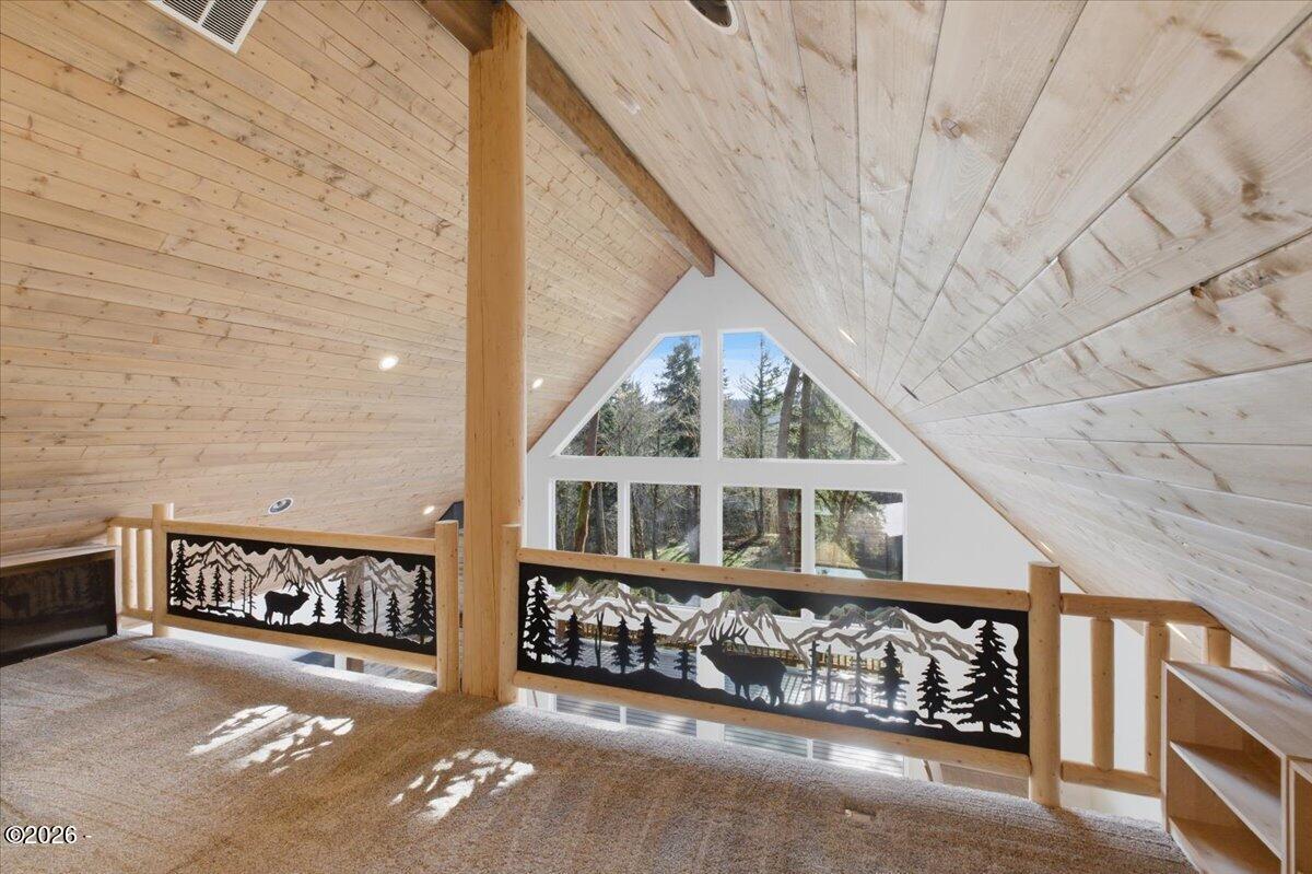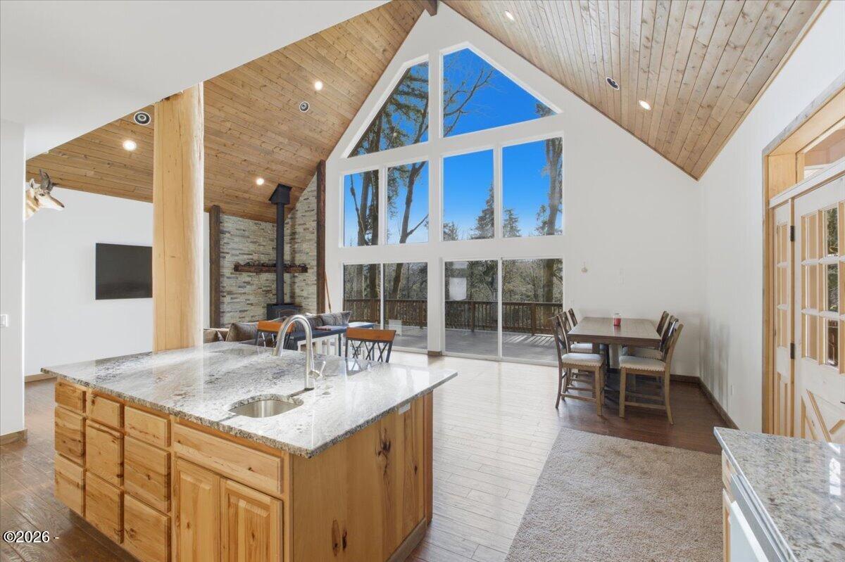 Country freedom with coastal convenience, situated on 5 usable acres along desirable Olalla Road, this private property offers space to live, build, create, & breathe - all just 6 miles to Newports iconic bay front shopping, rests, & marina, and only mile to downtown Toledo Open floor plan & en-suite primary w/ fountain shower & views frm priv. wrap around deck and hot tub.