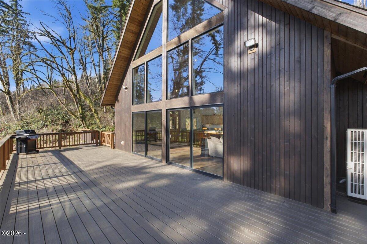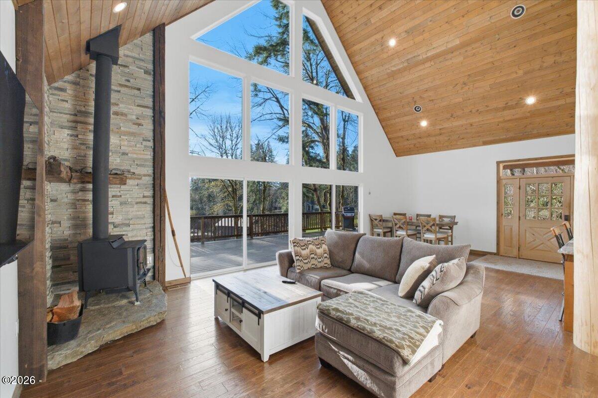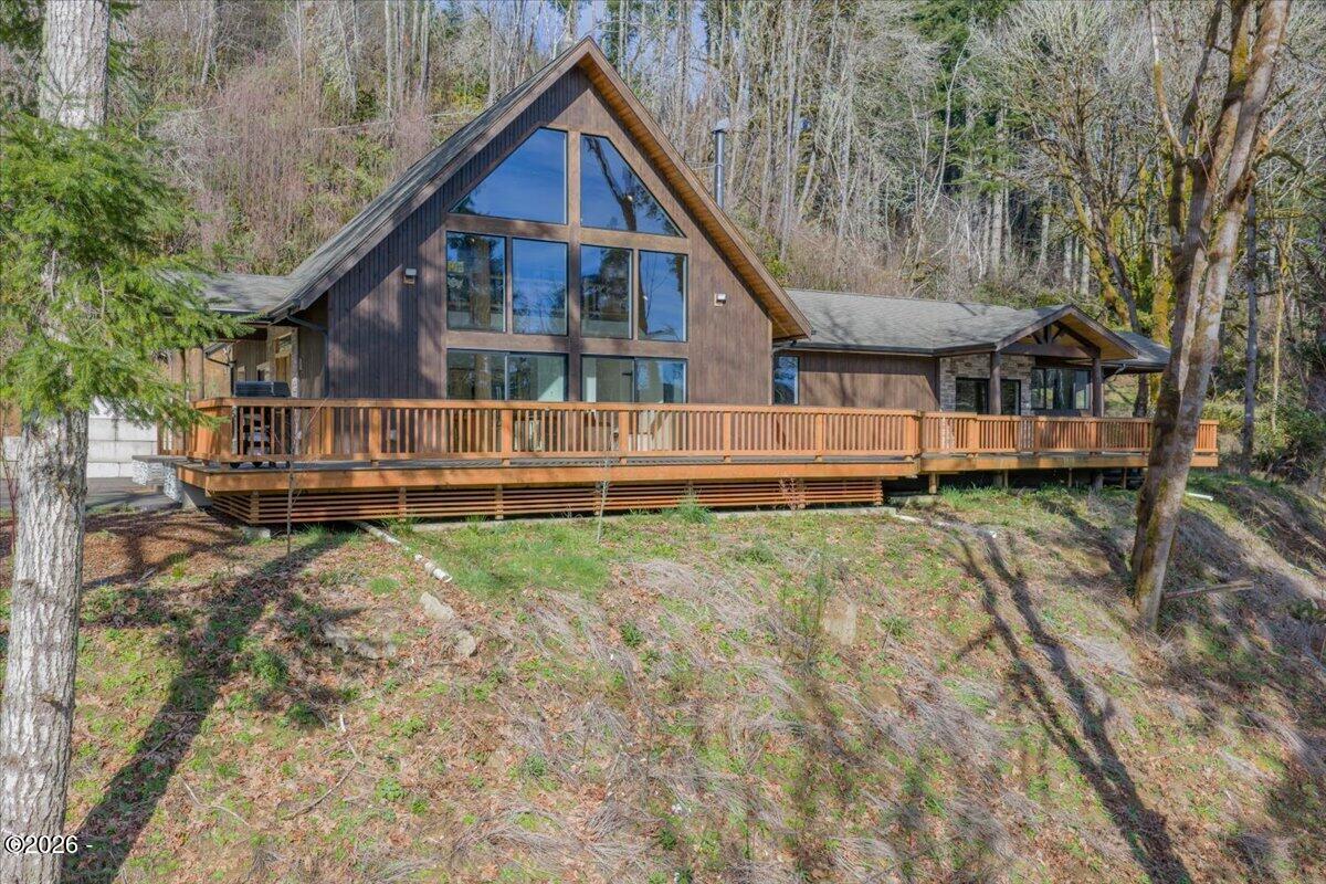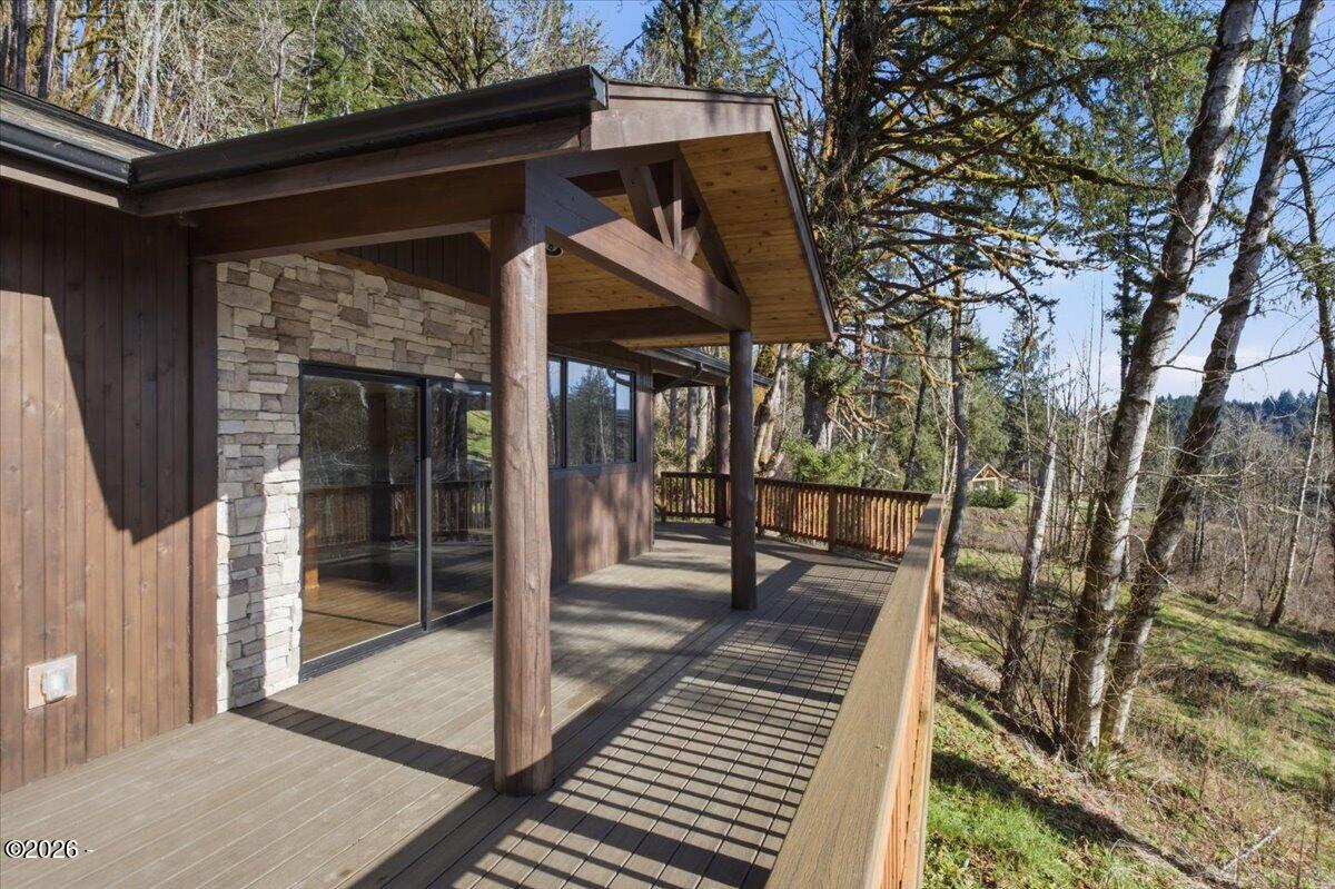 Country freedom with coastal convenience.Situated on 5 usable acres along desirable Olalla Road, this private property offers space to live, build, create, & breathe - all just 6 miles to Newports iconic bay front shopping, rests, & marina, and only mile to downtown Toledo.Open floor plan & en-suite primary w/ fountain shower & views fr. private wrap around deck and hot tub.