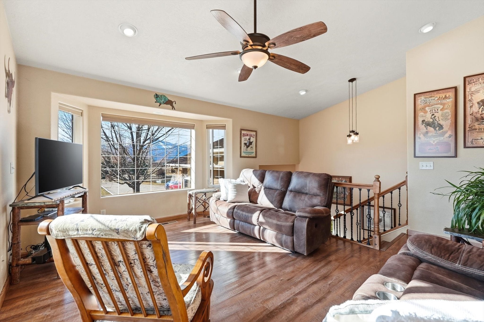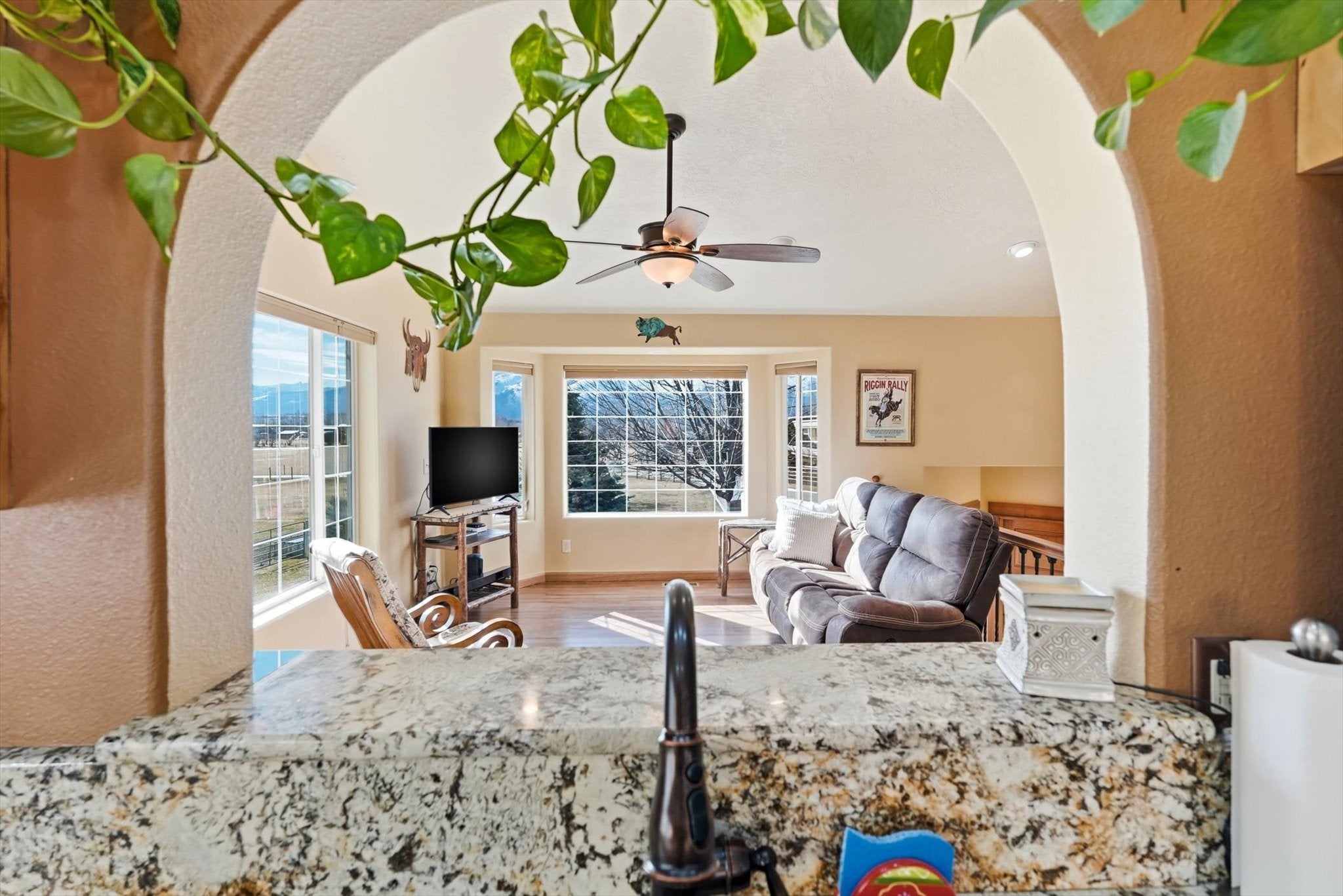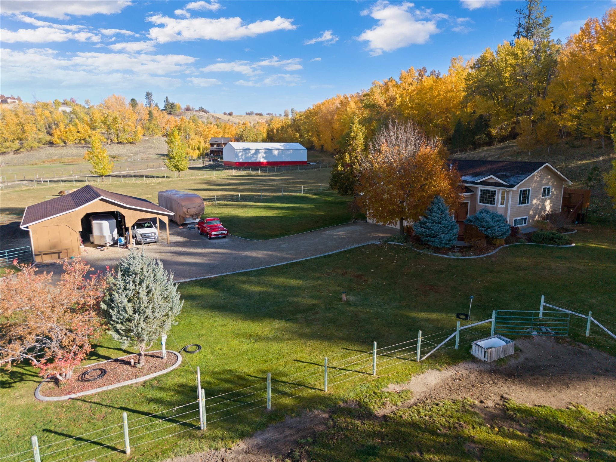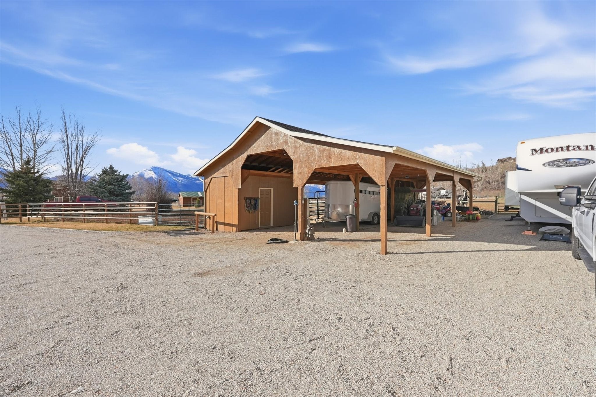 Experience the perfect blend of privacy, functionality, and modern comfort with this beautiful home ready for horses.. Tucked outside of town, this property offers the peace and space youve been looking for, while still providing convenient access to everyday amenities. The back of the property offers a tree-covered hillside, creating a natural buffer enhancing privacy and abundant wildlife. Enjoy breathtaking mountain views and wide-open skies from your own backyardan ideal setting for relaxing evenings or morning coffee on the porch. Inside, the home shines with numerous upgrades and updates throughout. The remodeled kitchen features modern finishes and thoughtful design, perfect for both daily living and entertaining with granite counter tops, updated flooring, fixtures and the bathrooms have been beautifully updated and remodeled. The finished basement expands the living space, offering flexibility for family room, guest quarters, home office, or recreation area with renai. Equestrian and hobby enthusiasts will appreciate the well-equipped pole barn, complete with hay storage and a tack room, electricity, updated lighting, RV hookups provide added convenience for guests or travel-ready living,. The property is fenced and cross fenced with water rights, gravity flow irrigation means minimal energy costs and there is also a seasonal pond. Whether youre looking for a horse property, room to roam, or simply a private retreat with stunning views and modern updates, this exceptional acreage offers endless potential and the lifestyle youve been dreaming of. Seller is also leaving the gun safe for the new buyer.