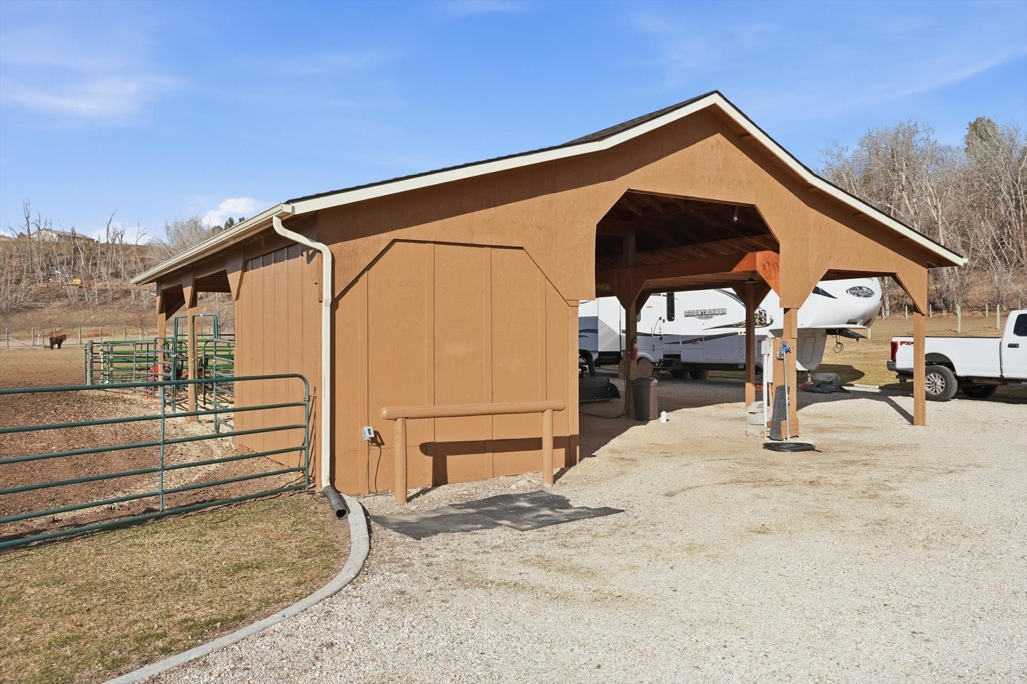 Experience the perfect blend of privacy, functionality, and modern comfort with this beautiful home ready for horses.. Tucked outside of town, this property offers the peace and space youve been looking for, while still providing convenient access to everyday amenities. The back of the property offers a tree-covered hillside, creating a natural buffer enhancing privacy and abundant wildlife.