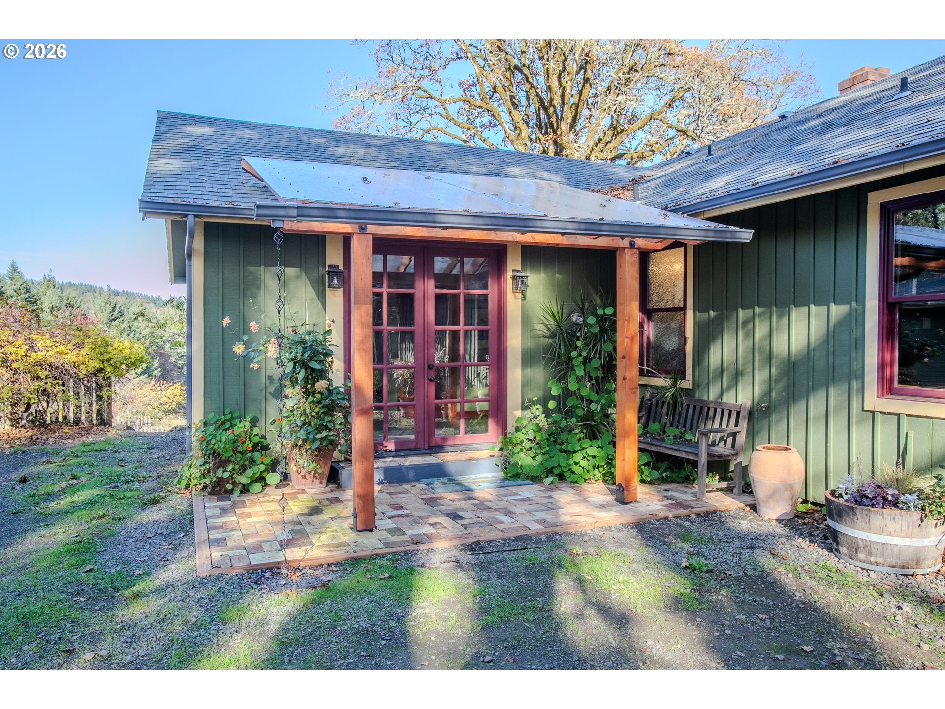 Imagine mornings collecting farm fresh eggs, tending your organic greenhouse gardens while watching the sunrise behind Mt. Hood over your own 24.85 acres of Oregon countryside. This idyllic setting offers a perfect opportunity for a hobby farm, equestrian property, or private homestead retreat. Open pasture, mature trees, excellent eastern sun exposure on desirable Willakenzie soils provide ideal conditions for an orchard, boutique vineyard, or agriculture. Enjoy peaceful rural living with convenient access to Portland.The experience only gets better with the artistically updated 4 bedroom, 3 bath, 3,671 sq/ft. farmhouse. Expansive wood framed picture windows & glass doors bathe the home in year round natural light while showcasing sweeping views of the Yamhill River Valley and Chehalem Mountains.At the heart of the home is a custom open kitchen featuring a striking live edge madrone breakfast bar, creating a natural gathering place for friends and family. The lower level offers a theater/media room complete with bar & wine cellar, perfect for entertaining.Indoor and outdoor living blend seamlessly with an expansive deck and stone terrace featuring a central fire pit and fountain, ideal for relaxing evenings under the stars.The property is well equipped with an oversized 3 car garage, a 30 x 48 shop, and a substantial 60 x 100 rustic livestock barn, providing abundant space for equipment, animals, or creative pursuits. Wander the private walking trails, enjoy the seasonal creek and pond. Unwind in the natural wood fired cedar sauna (with outdoor shower) near the home or in the steam sauna in the main floor bathroom.This special property has hosted numerous private events and retreats and offers the potential for seasonal rental opportunities. Explore the wineries, vineyards of the Yamhill-Carlton AVA, Oregons premier wine growing region at your doorstep. All of this just minutes from hi-tech Employment. Approximately 40 Miles to Pdx, 11 miles to Mcminville