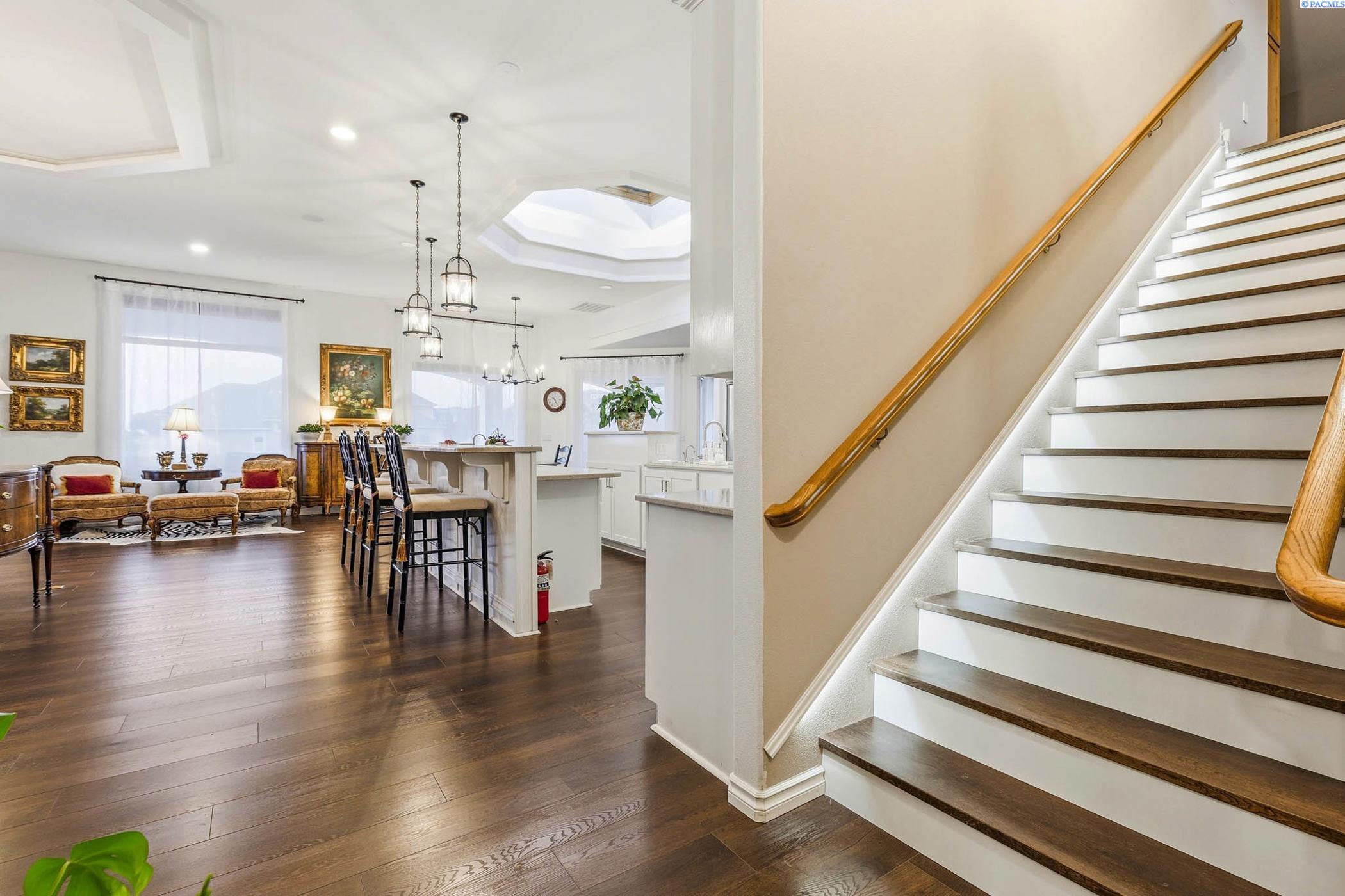 MLS# 289995 Truly one-of-a-kind home with panoramic views of the Tri-Cities, Columbia River & Blue Mountains! This 5,028 sq ft, two-story residence sits on a .44-acre lot and is thoughtfully engineered for comfort, efficiency, and securityoffering the rare feel of nearly two homes in one.The enclosed portico entry opens to a spacious great room designed to showcase the stunning scenery.