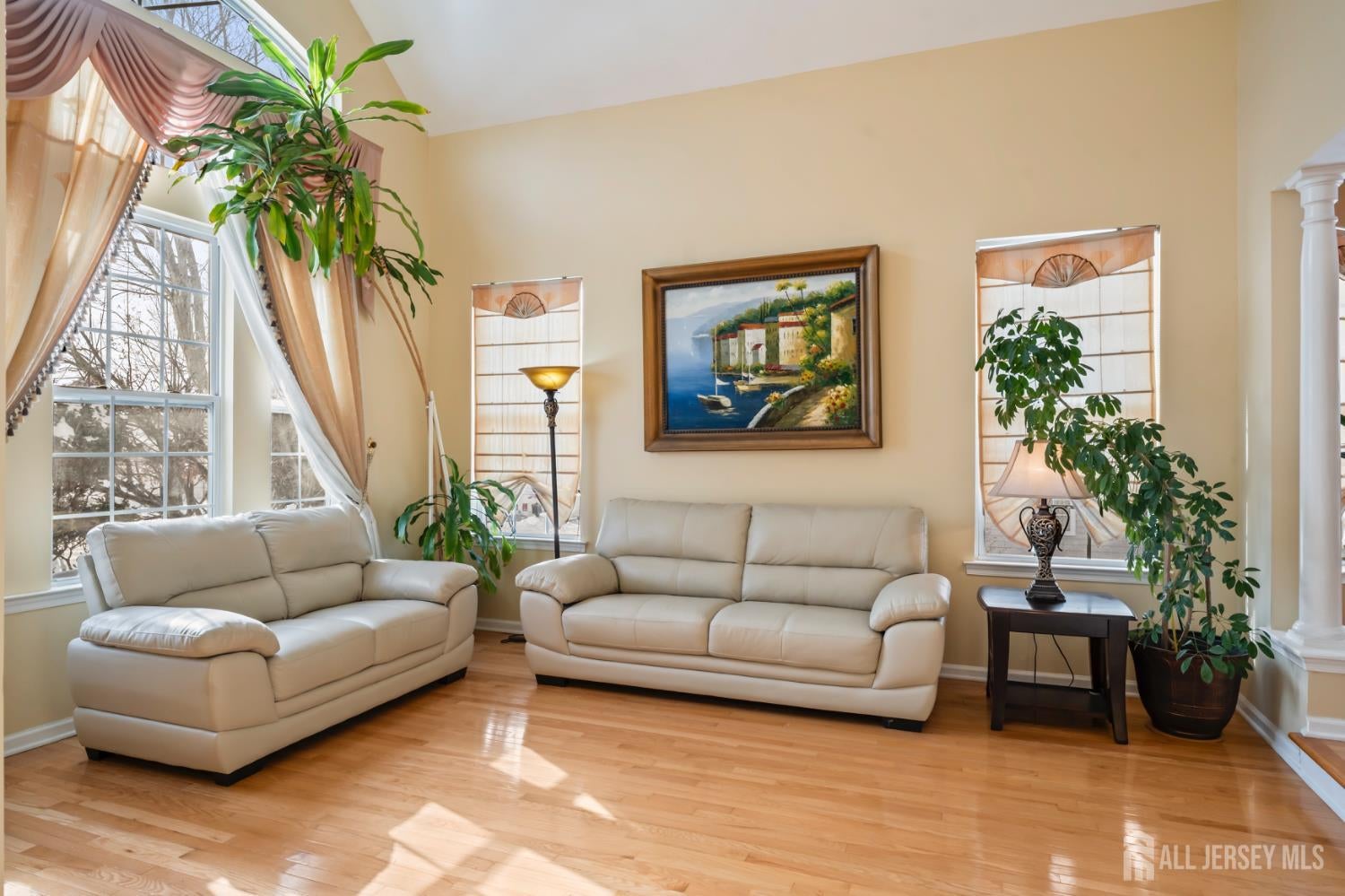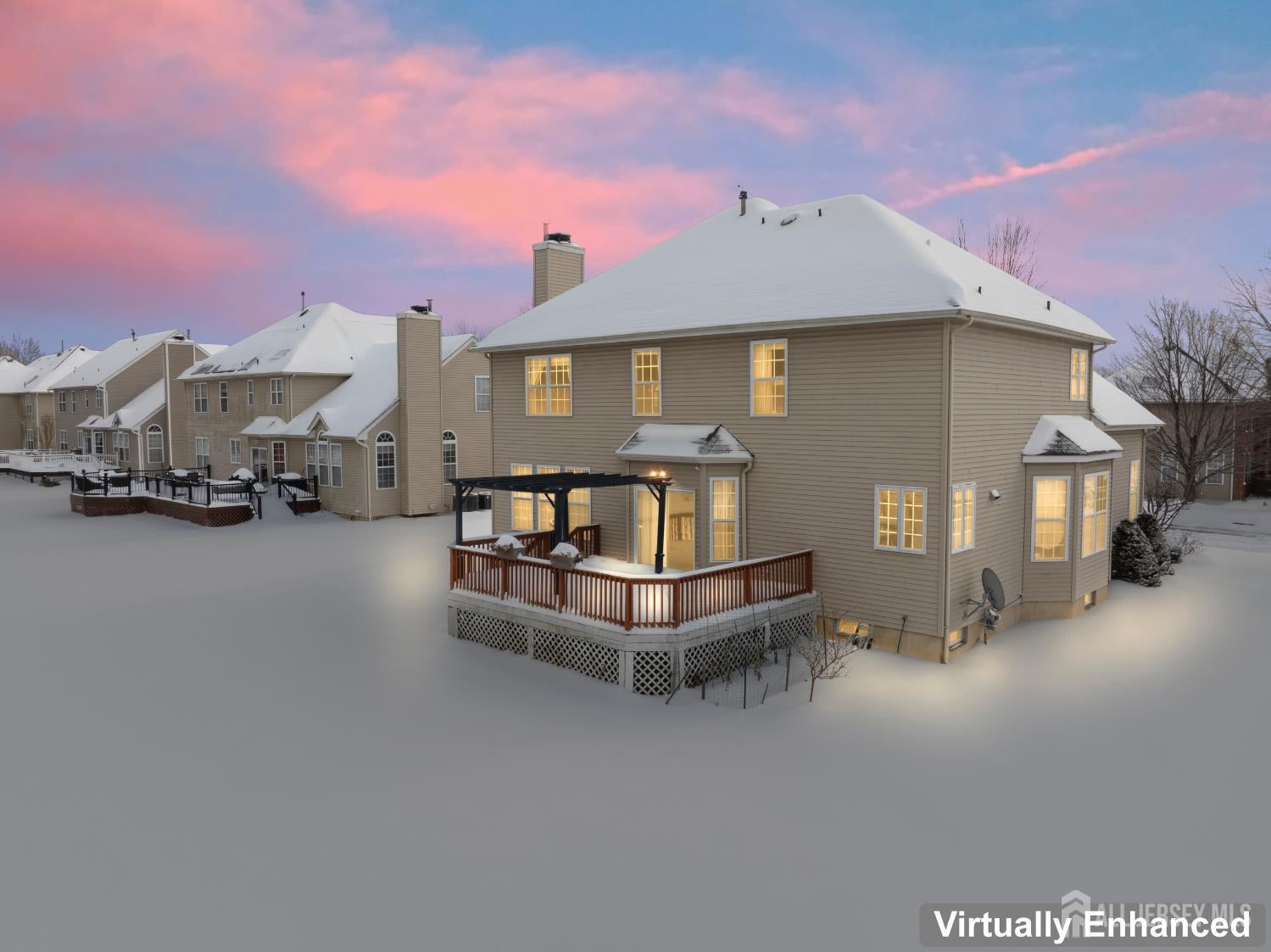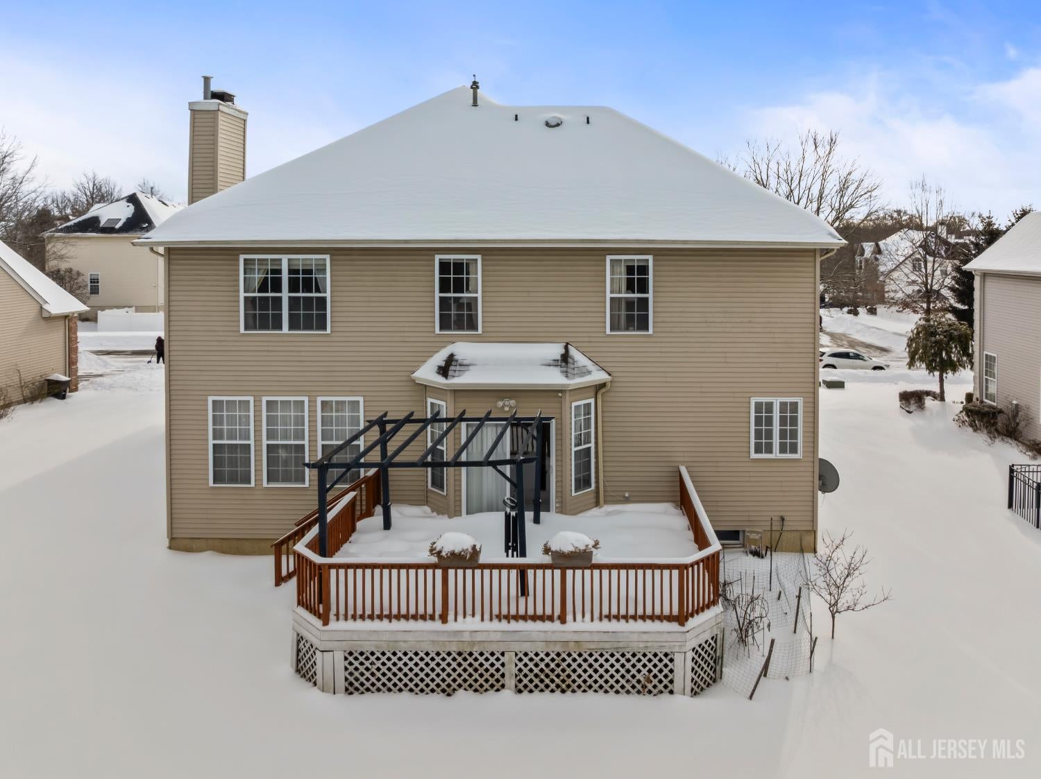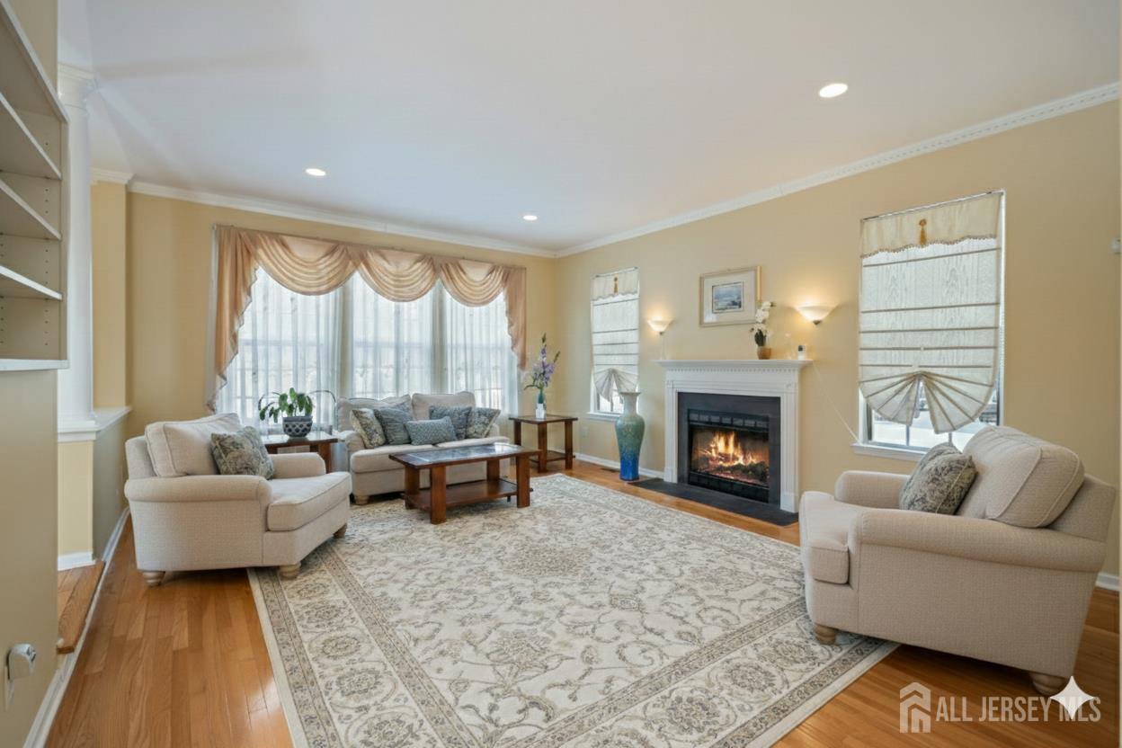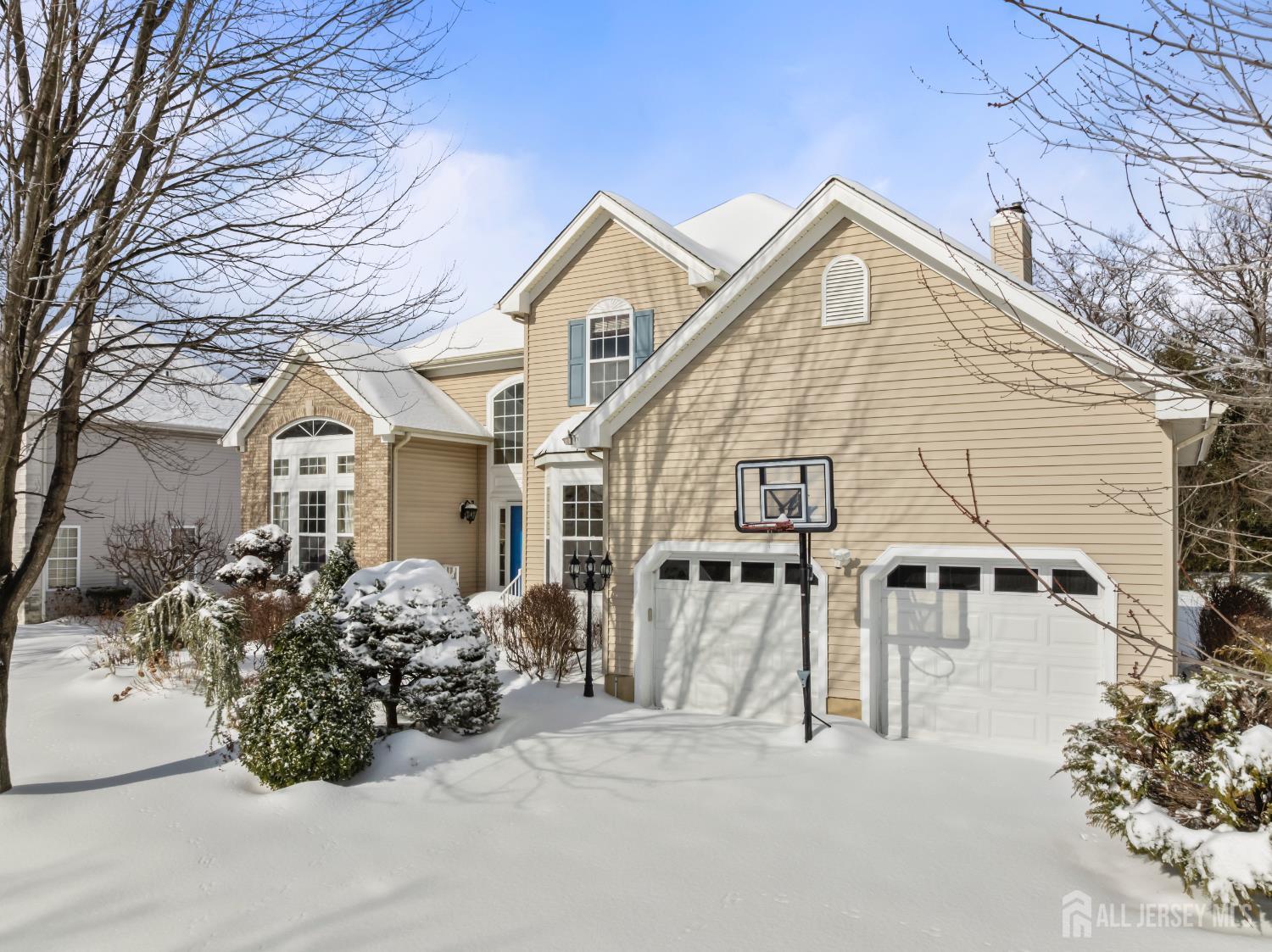 Elegant custom living awaits in the highly sought-after Apple Ridge community, where timeless design and thoughtful craftsmanship come together in a beautifully proportioned residence. Architectural details such as custom wall niches with accent lighting, crown molding, and hardwood flooring throughout reflect the homes refined character and attention to detail. A welcoming grand foyer with a statement chandelier opens to the living room, where soaring ceilings create a bright and airy atmosphere ideal for both everyday living and entertaining. The banquet-sized dining room is perfectly suited for formal gatherings, while the well-appointed kitchen offers stainless steel appliances, a center island, generous counter space, a pantry, and a sunlit breakfast nook overlooking the backyardan inviting space for casual meals and connection. The family room provides a comfortable retreat, anchored by a fireplace and designed for relaxed evenings or hosting guests. A private office or den, a full bath, and a conveniently located laundry room complete the main level, offering flexibility and functionality. Upstairs, the primary suite serves as a serene retreat, featuring a cathedral ceiling, dual walk-in closets, and a spa-inspired bath with soaking tub, separate shower, and double vanities. Three additional bedrooms and a full bath complete the second level, offering ample space for a variety of needs. The high-ceiling basement presents versatile potential for a recreation room, home gym, office, or theater. Outdoors, the tree-lined backyard features a deck and pergola, creating an ideal setting for entertaining or quiet enjoyment. Recent updates include a new HVAC system, furnace, and tankless water heater (2024), a hardwood staircase (2024), and new garage doors. Additional highlights include a smart sprinkler controller, an electric vehicle charging station with a Level 2 charger, and professionally designed landscaping that enhances curb appeal. Conveniently located near NYC bus routes and major highways including Route 18, Route 1, and the NJ Turnpike, with easy access to Downtown New Brunswick, Rutgers University, hospitals, shopping, dining, and recreation. The home is also situated within the East Brunswick school district, including Warnsdorfer Elementary School, part of the townships highly regarded Blue Ribbon school system.
