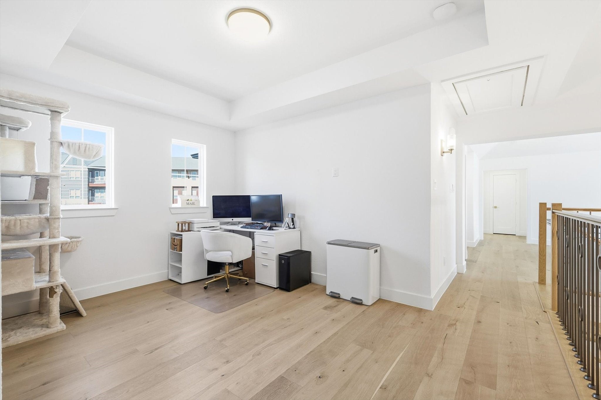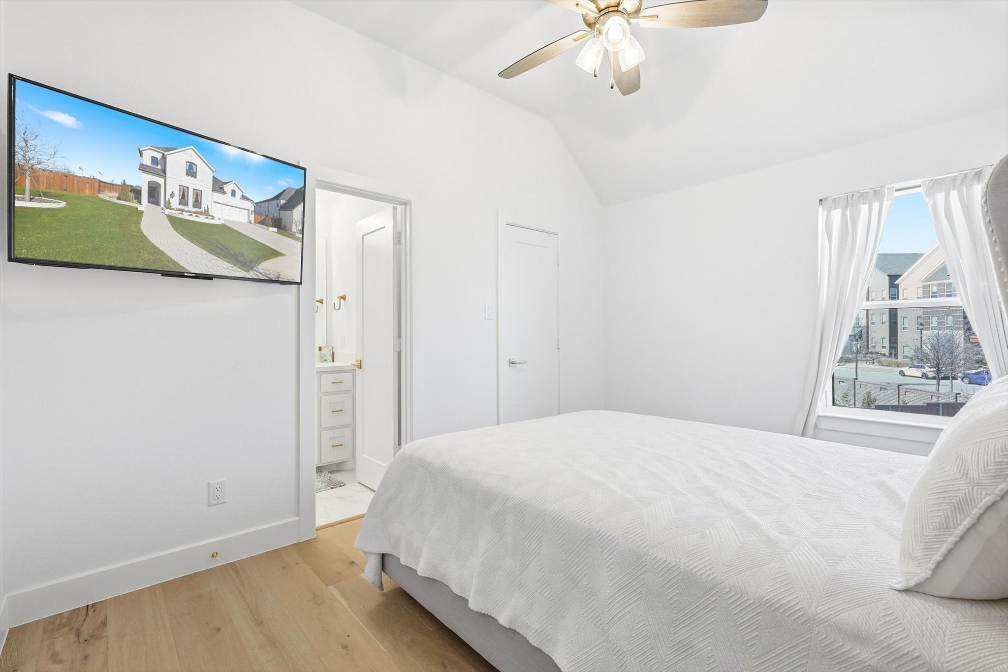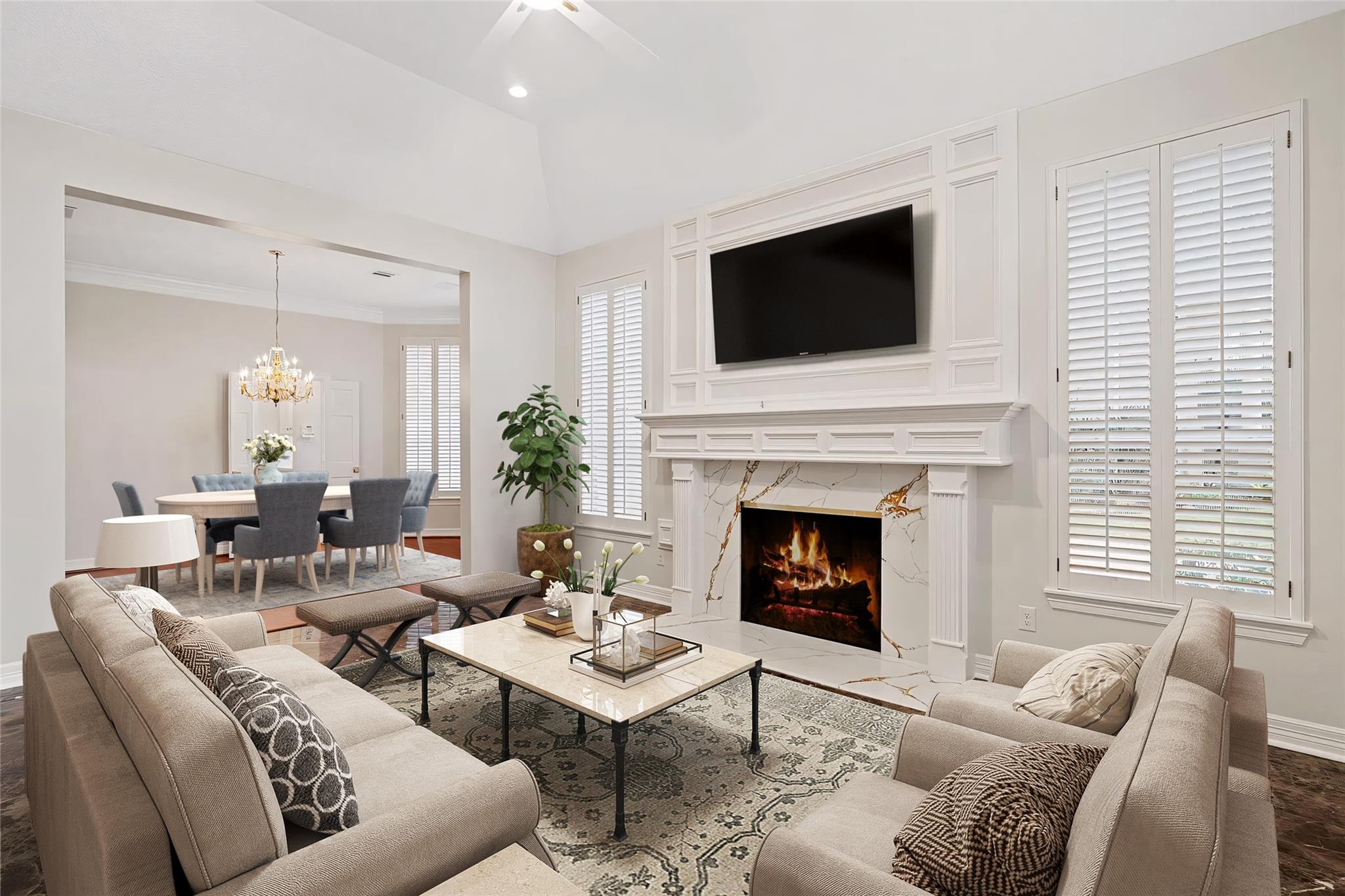 Step into luxury in this breathtaking three-level masterpiece, located in a quiet cul-de-sac, where a grand two-story foyer, framed by soaring ceilings, dramatic windows, and a statement chandelier, sets the tone for the elegance that unfolds throughout. Sunlight cascades through expansive windows, illuminating every corner of the home, from the living room, anchored by a beautiful fireplace, to the stunning chefs kitchen with its 8-burner gas range, under-cabinet lighting, butlers pantry, and charming architectural arch. Up the wide staircase, the primary suite awaits a massive, light-drenched retreat with a serene spa-inspired ensuite and a custom walk-in closet. The upper level also features a beautiful Jack and Jill bathroom, thoughtfully designed to connect bedrooms with both style and convenience. Additional spaces include a dedicated exercise room and a luxurious hot tub, offering wellness and relaxation at home. Designer light fixtures, dimmable lighting, and Apple smart home integration add sophistication and modern ease. With quick access to 35W and proximity to premier shopping, this home blends luxury, comfort, and convenience effortlessly. A sanctuary of light, space, and refined living crafted for the life youve always imagined.