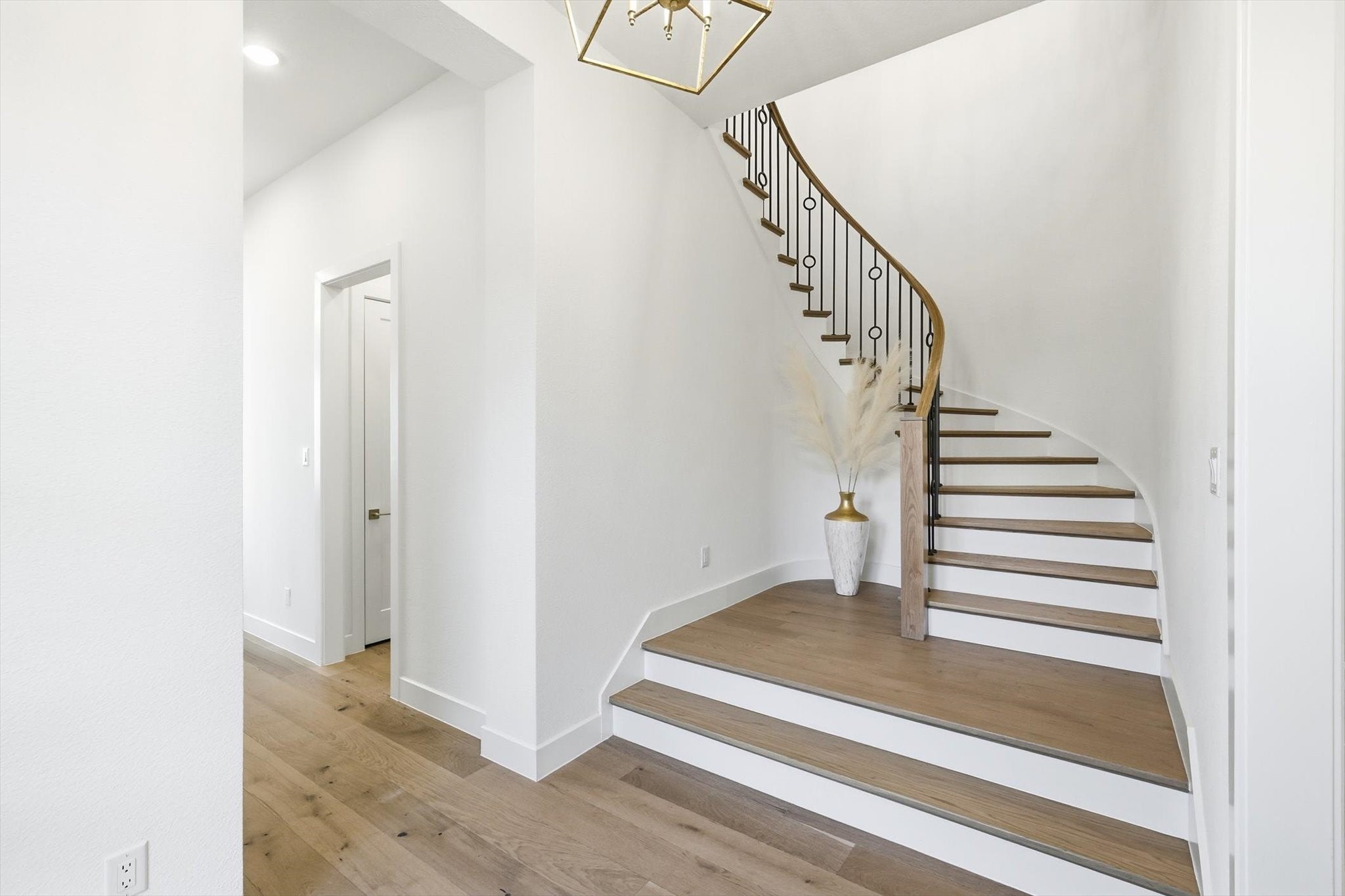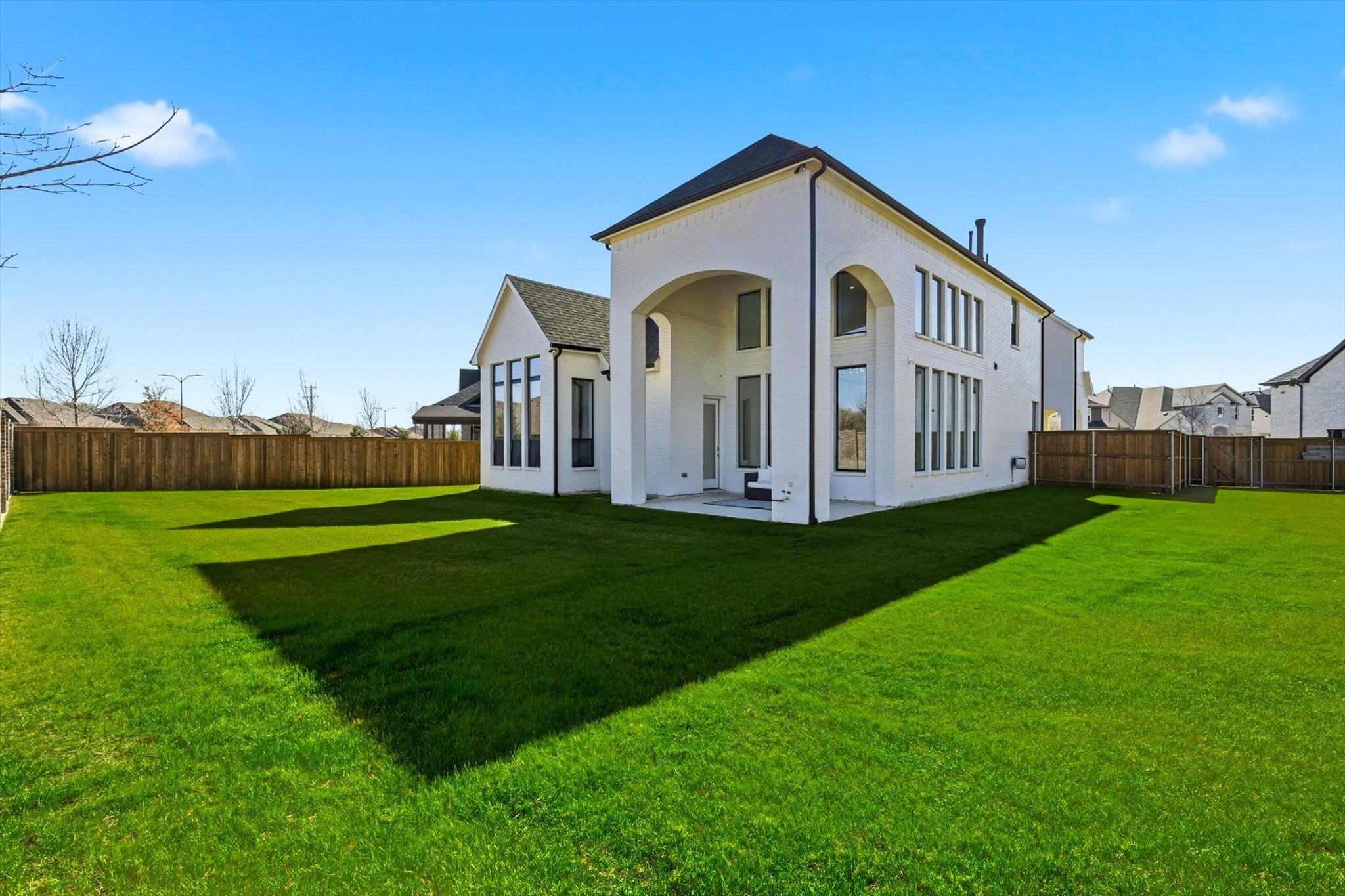 The ideal blend of modern comfort with timeless elegance awaits you at this immaculate southwest-facing two story home on a super-sized lot in The Grove Frisco. Beautiful painted brick exterior gives way to a courtyard entry before reaching the front door, a truly unique entry experience. Modern double entry doors give way to a dramatic Foyer and curved stair case.