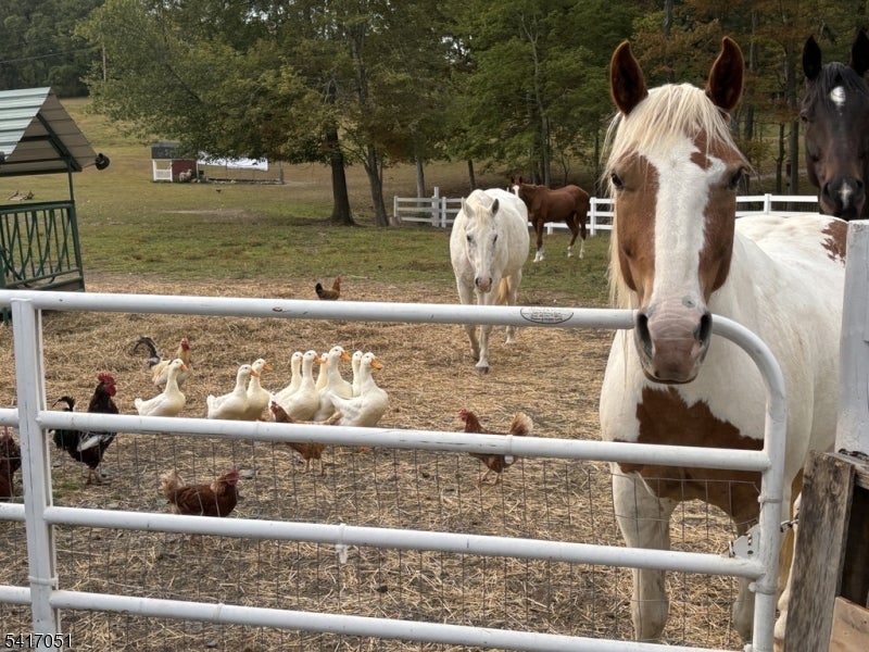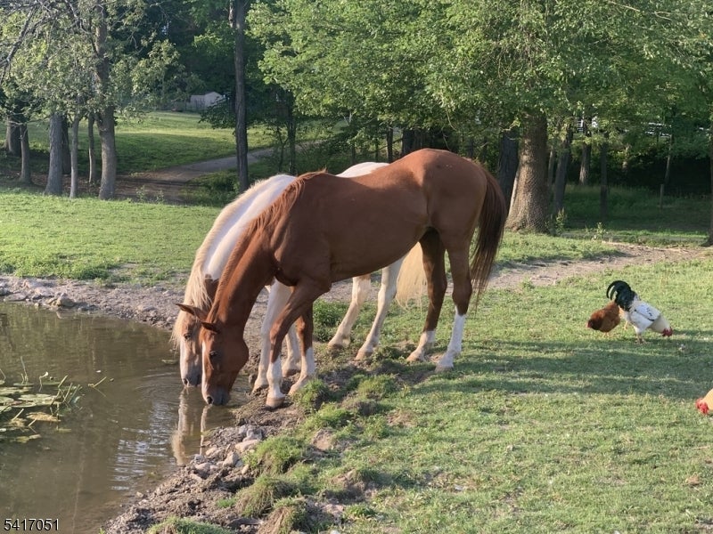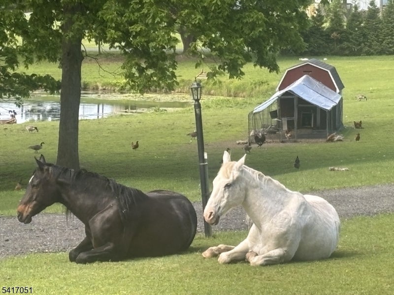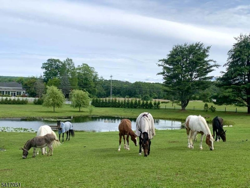 Wake up to your horses grazing beside a spring fed pond, a private 11 acre EQUESTRIAN Estate in Sussex County, with Shimers Brook flowing through the property.This rare offering blends refined country living with a fully developed horse facility. Custom gates lead to a 90 X 24 barn with 5 matted stalls and 200 amp electric service, a 150 X 70 outdoor riding arena, tack shed, and a 25 X 30 hay/utility barn currently used as a chainsaw carving studio. There is a single stall barn on the hill for additional animals. Designed with animals in mind, the grounds include 2 temperature controlled dog runs, 2 chicken coops and a fully electric fenced pasture. Enjoy Farm to Table living with an 80 X 40 vegetable garden with apple, pear, and blueberry bushes. Framed by a stand of mature trees, this sold brick ranch is set far back on the property offering 5 Bedrooms, 3 Full Baths, including a spa -style bath with steam shower/Jacuzzi, and 2 woodburning fireplaces . Zoned Live/Work, the home includes a Studio or Den with a private entrance, ideal for a Home Office, Artist Studio or Professional Workspace. A dramatic picture window overlooks the pond & pasture where the horses roam. An in-ground saltwater pool surrounded by perrenials creates a secluded setting. Located 5 minutes from the River towns of Milford & Matamoras with easy access to I-84 & Rt 23, Rt 15, & Rt 206. Rarely does a property of this quality appear on the market.