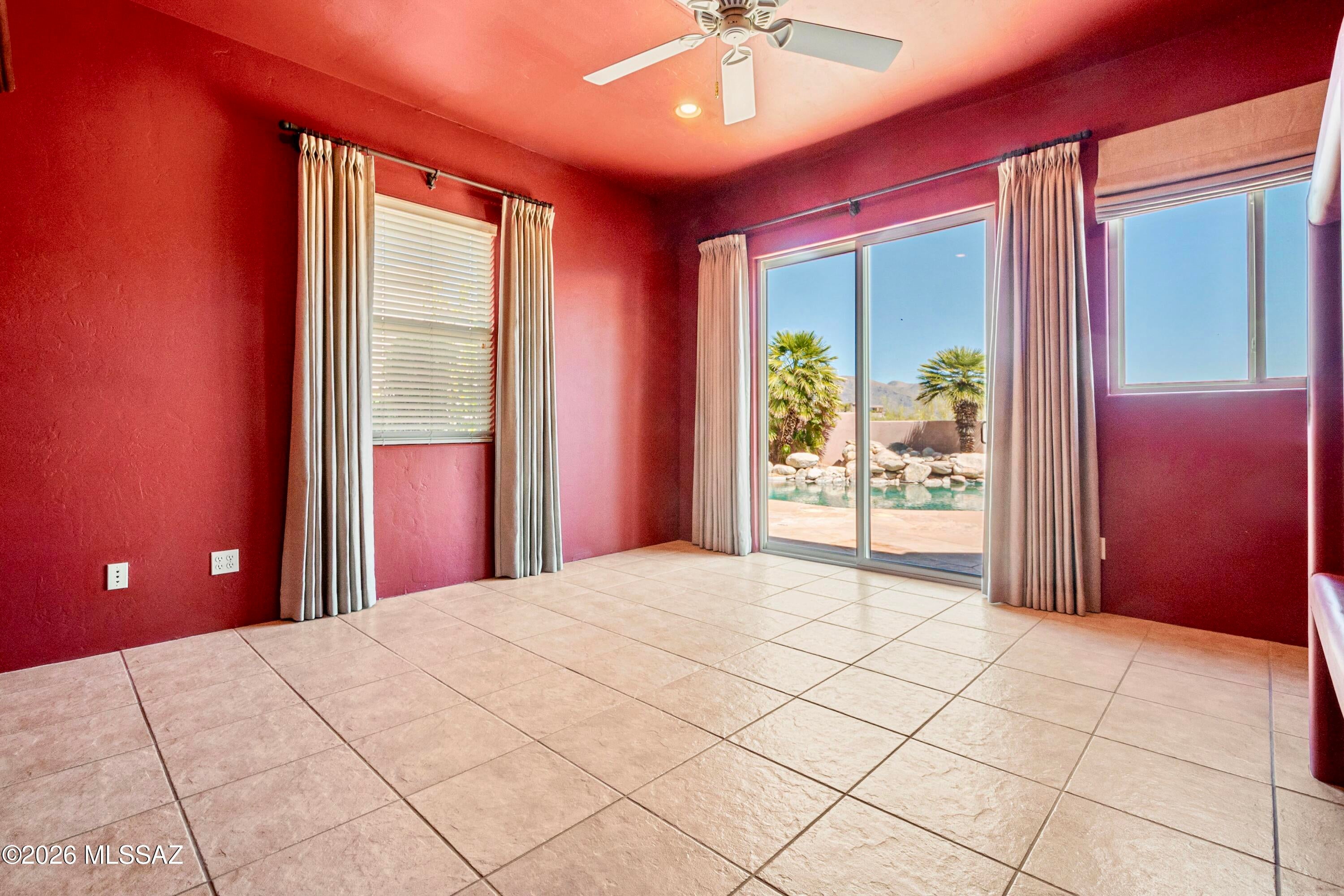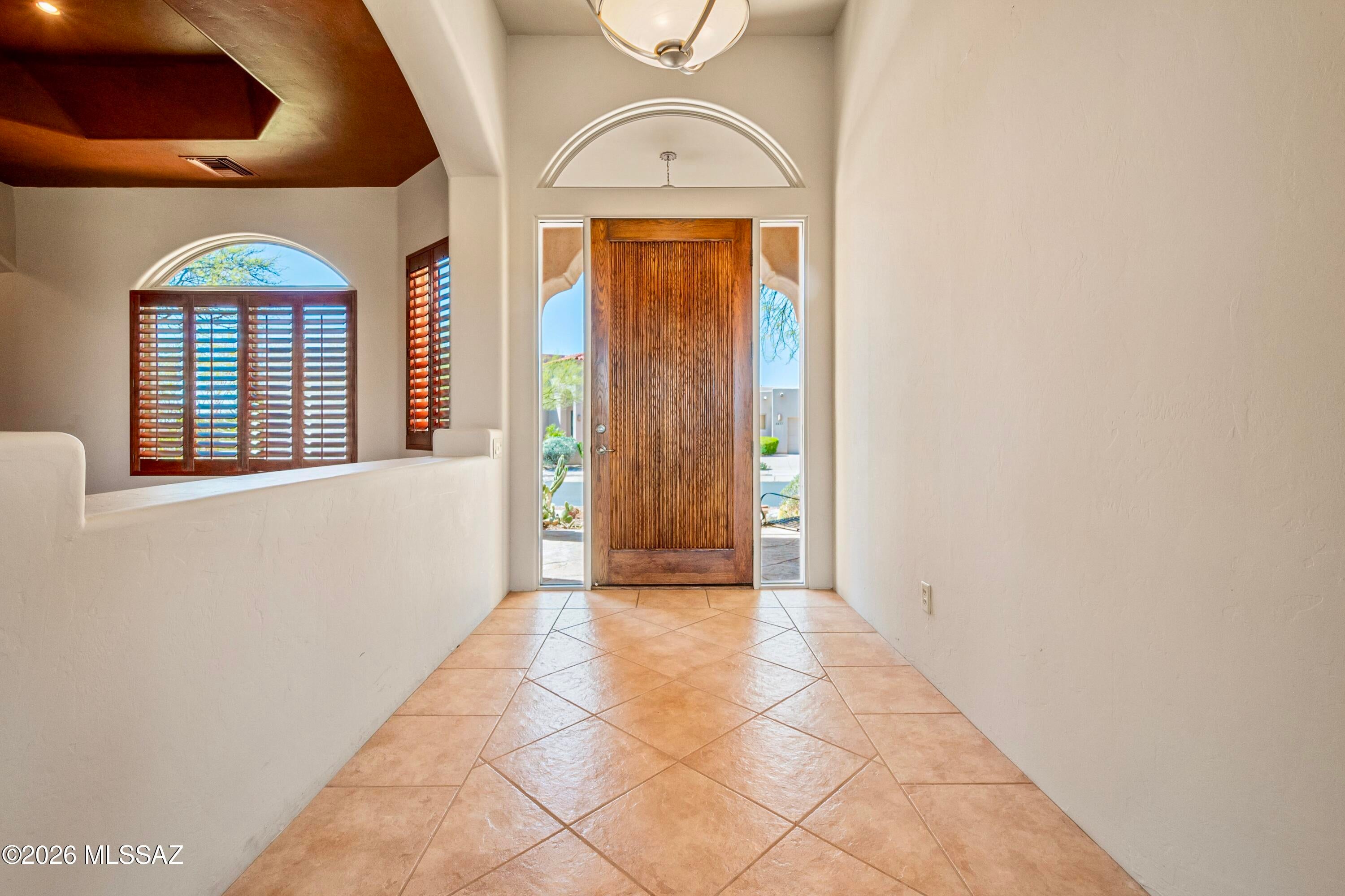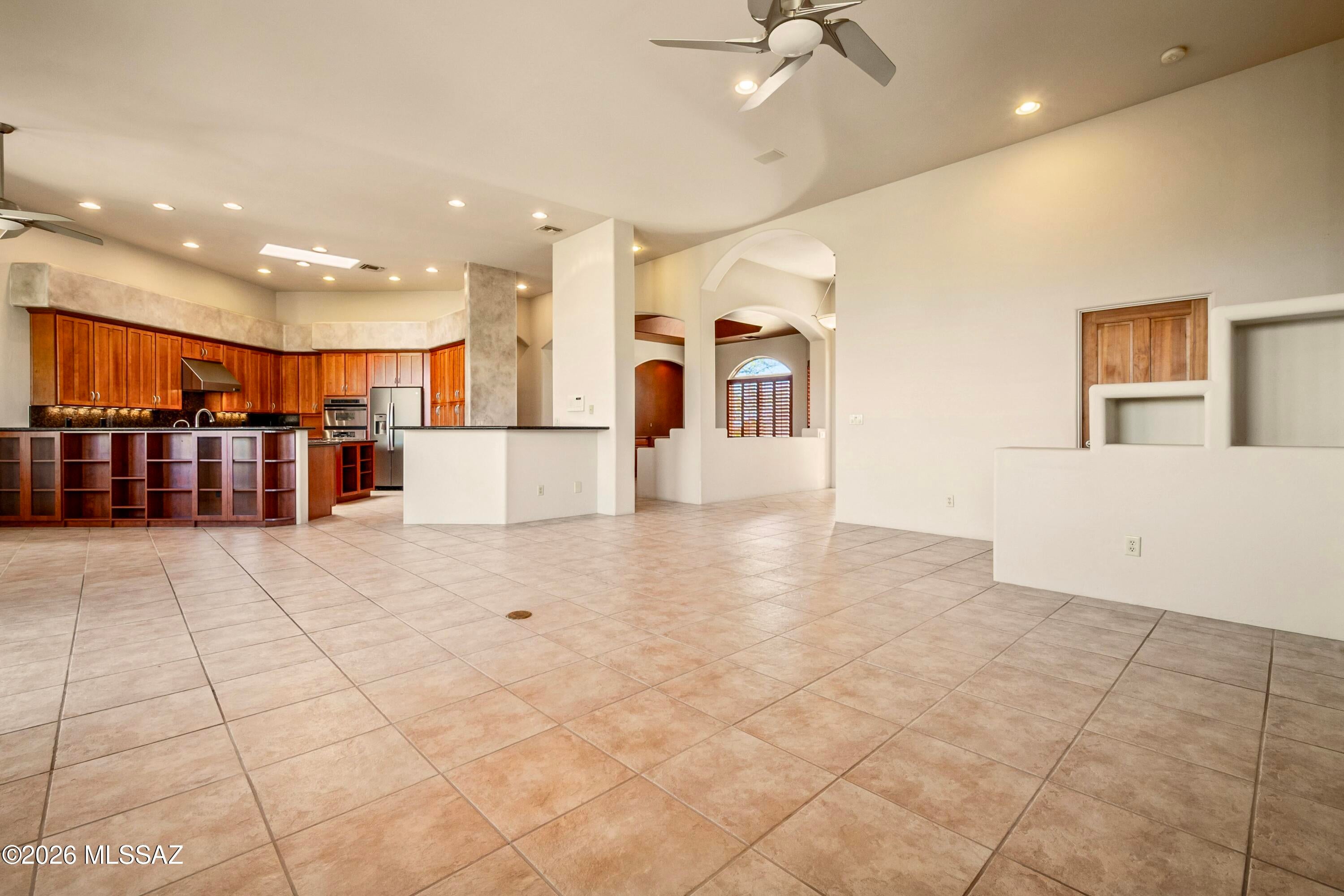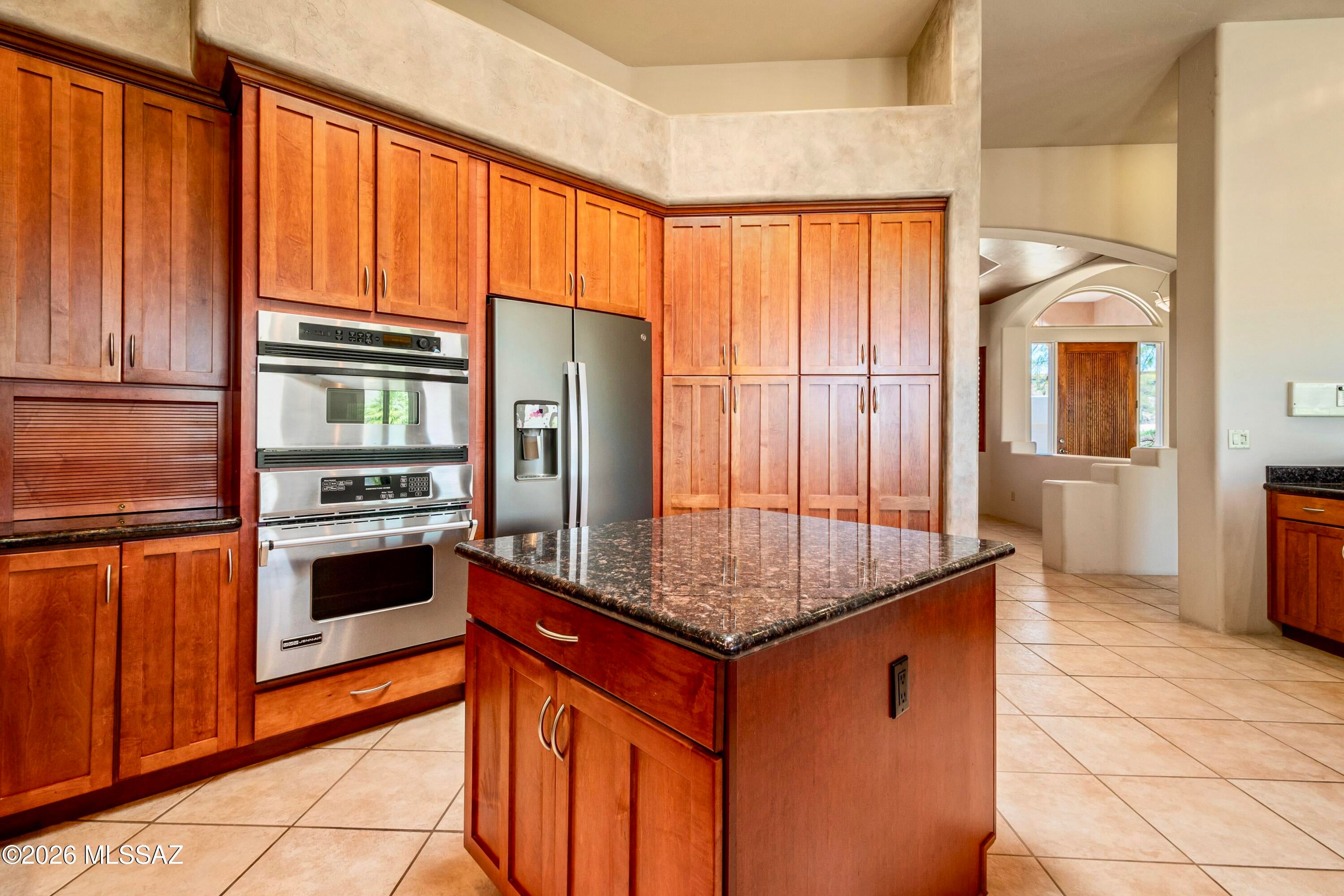 Elevated on a premier ridge-top homesite, this exceptional residence in Sabino Mountain offers a rare combination of privacy, architectural integrity, and truly breathtaking, unobstructed panoramic mountain views. Set on 1.14 acres within one of Tucsons most coveted gated enclaves, distinguished by its dramatic setting and rare neighborhood sidewalks.Built in 2001 and thoughtfully positioned to capture the surrounding beauty, the home embodies timeless contemporary design with a seamless, easy-living single-level layout. From the moment you enter, the foyer frames sweeping views through the expansive great room, where soaring ceilings, gallery walls, and artful niches are filled with natural light. The ideal split-bedroom floor plan ensures both comfort and privacy, complemented by solid wood paneled doors, expansive tile flooring, and architectural details throughout.Designed for everyday living and effortless entertaining alike, the kitchen is a standout centerpiece. Anchored by a central island and surrounded by expansive granite surfaces, it features custom cabinetry with pull-outs, display shelving, and integrated lighting. High-end appliances include a Jenn-Air commercial gas range with hood and heat lamps, double-wall ovens, and an Advantium microwave. A beverage bar with a built-in chiller enhances entertaining, while both casual and formal dining spaces, complete with a coffered ceiling and a built-in buffet, offer versatility.The desirable east-facing backyard invites year-round enjoyment with a large covered patio, flagstone hardscape, and a Pebble Tec pool and spa with a spillway water feature. A charming kiva fireplace anchors a separate niche patio, creating an intimate space. Mature, lush desert landscaping, enhanced by a new drip system (2025), surrounds the fully fenced yard, offering both beauty and ease of care.The owners suite is a peaceful retreat, opening directly to the patio and featuring a 5-piece bath with a garden tub, walk-in shower, and a customized closet system. Spacious secondary bedrooms provide flexibility, including one with private access to a hall bath. A well-appointed den, complete with a stately library cabinet and patio access, offers the option of a 4th bedroom, a recreational space, or an office.Additional highlights include an inviting covered entry, a gently sloped, extended driveway, a spacious three-car garage with 8-foot door headers, and a large, light-filled laundry room with workspace, storage, and a built-in desk, perfect for hobbies or organization.Ideally located near Sabino Canyon Recreation Area and Ventana Canyon Resort & Country Club, residents enjoy immediate access to world-class hiking, cycling, golf, tennis, and pickleball, as well as premier dining, shopping, and top-rated schools.Lovingly maintained by its long-term owner, the home features a new roof and sealed parapets (2026), along with recent updates to low-E glass and window seals.This is a rare opportunity to own a view property of this caliber in one of Tucsons most sought-after foothills communities.