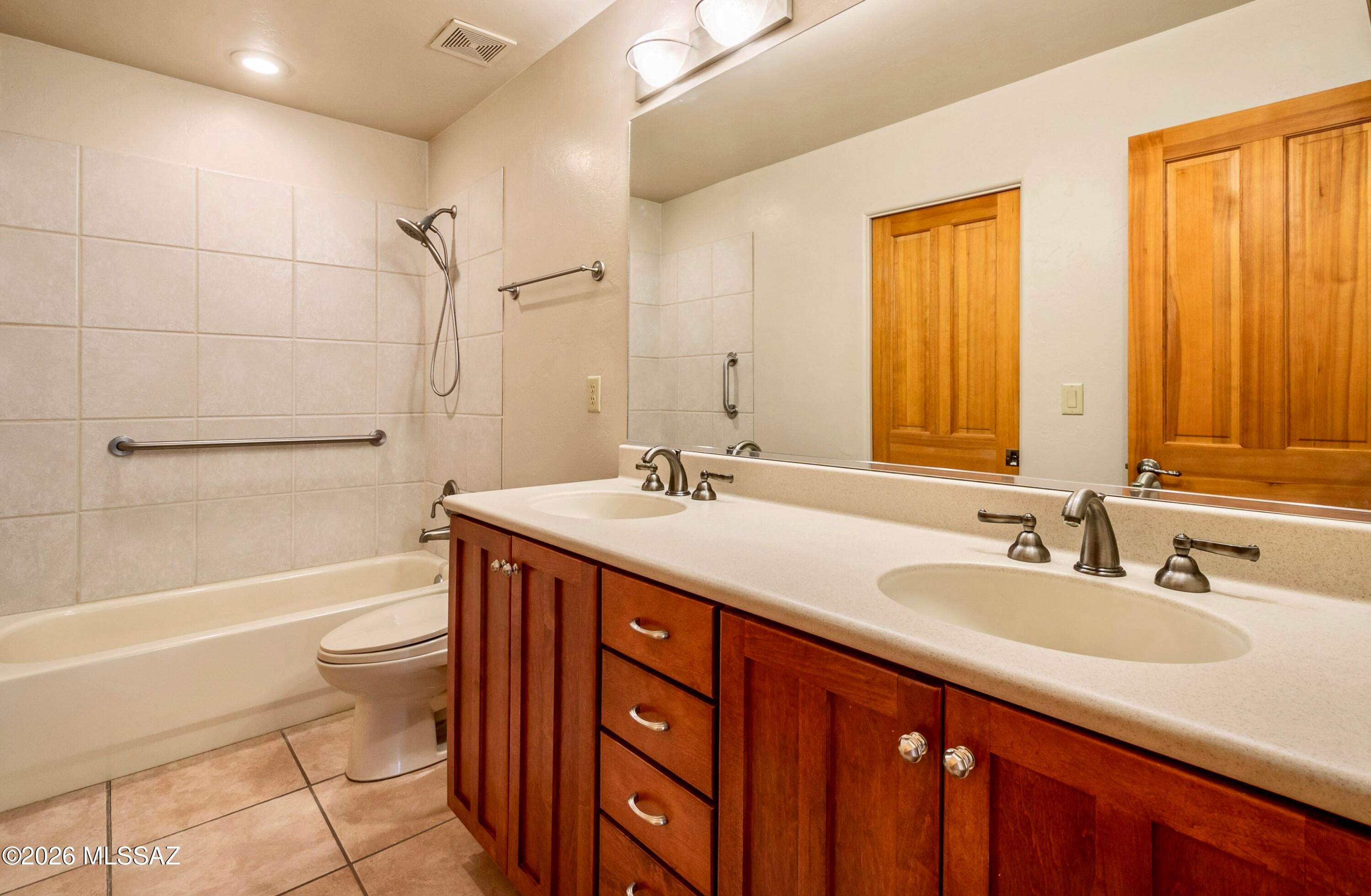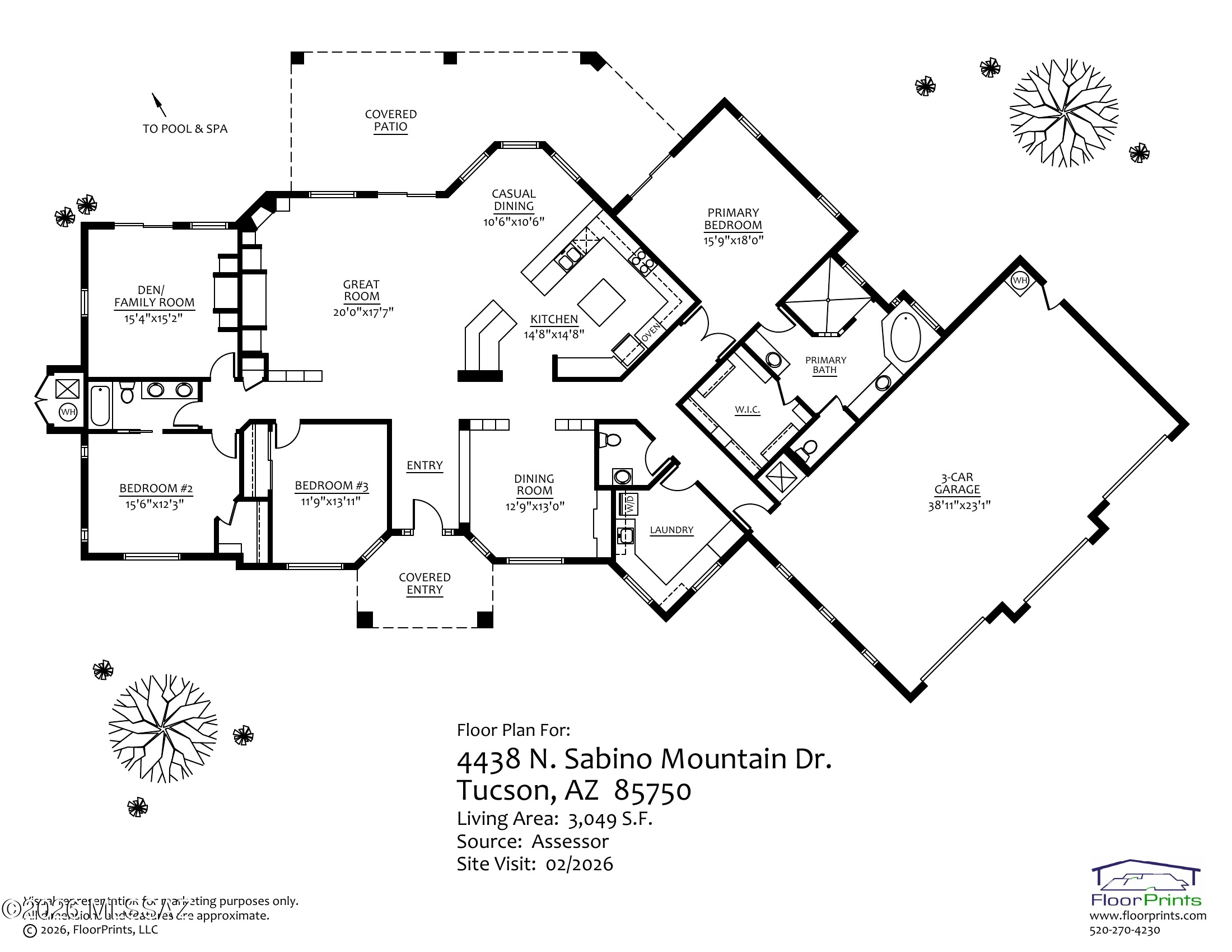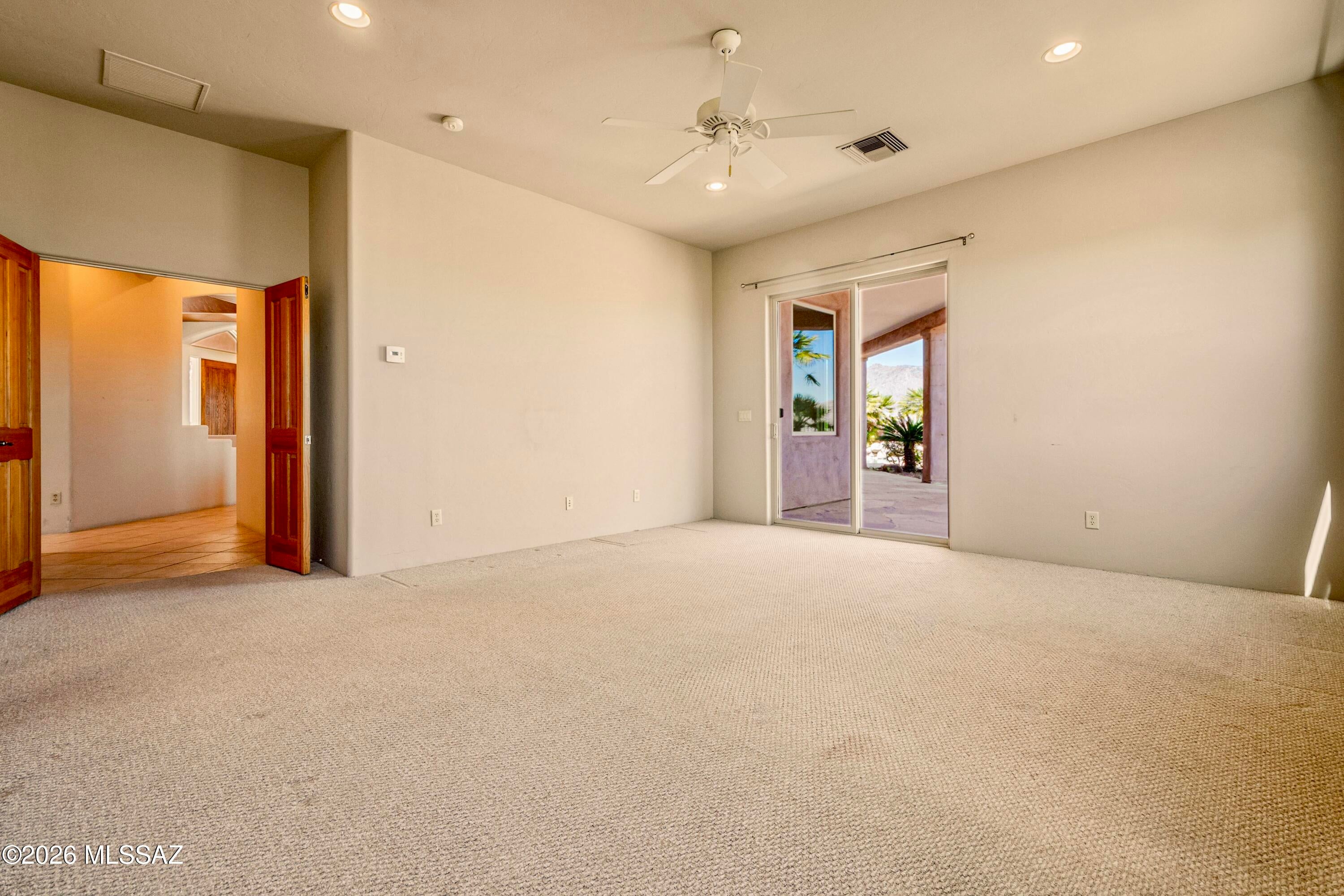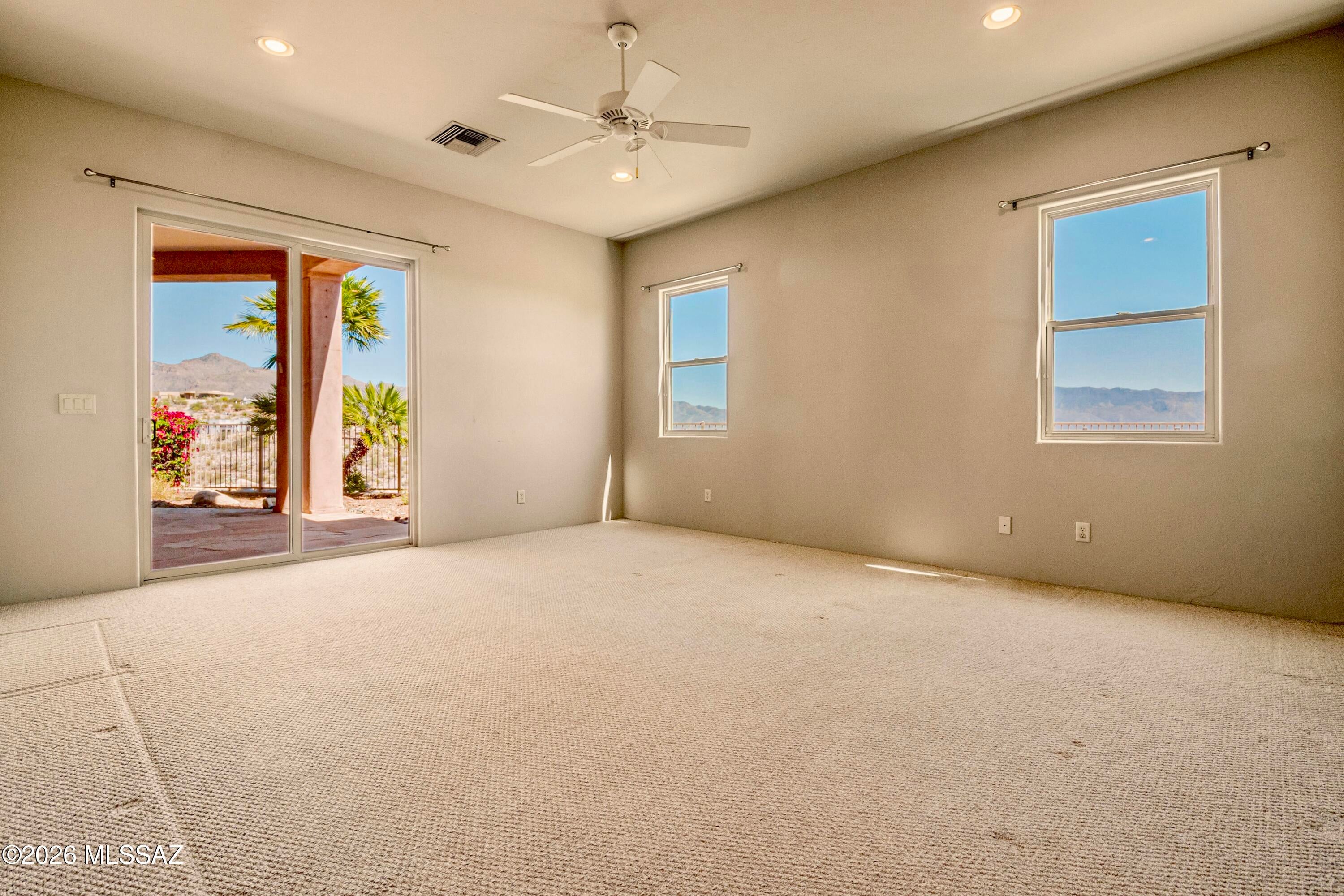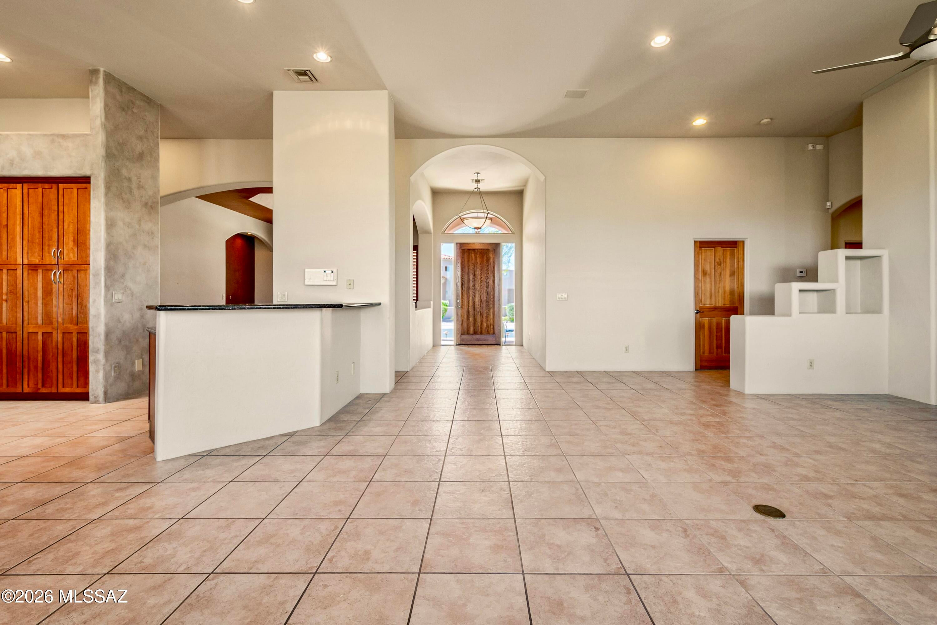 Elevated on a premier ridge-top homesite, this exceptional residence in Sabino Mountain offers a rare combination of privacy, architectural integrity, and truly breathtaking, unobstructed panoramic mountain views. Set on 1.14 acres within one of Tucsons most coveted gated enclaves, distinguished by its dramatic setting and rare neighborhood sidewalks.Built in 2001 and thoughtfully positioned to capture the surrounding beauty, the home embodies timeless contemporary design with a seamless, easy-living single-level layout. From the moment you enter, the foyer frames sweeping views through the expansive great room, where soaring ceilings, gallery walls, and artful niches are filled with natural light. The ideal split-bedroom floor plan ensures both comfort and privacy, complemented by solid wood paneled doors, expansive tile flooring, and architectural details throughout.Designed for everyday living and effortless entertaining alike, the kitchen is a standout centerpiece. Anchored by a central island and surrounded by expansive granite surfaces, it features custom cabinetry with pull-outs, display shelving, and integrated lighting. High-end appliances include a Jenn-Air commercial gas range with hood and heat lamps, double-wall ovens, and an Advantium microwave. A beverage bar with a built-in chiller enhances entertaining, while both casual and formal dining spaces, complete with a coffered ceiling and a built-in buffet, offer versatility.The desirable east-facing backyard invites year-round enjoyment with a large covered patio, flagstone hardscape, and a Pebble Tec pool and spa with a spillway water feature. A charming kiva fireplace anchors a separate niche patio, creating an intimate space. Mature, lush desert landscaping, enhanced by a new drip system (2025), surrounds the fully fenced yard, offering both beauty and ease of care.The owners suite is a peaceful retreat, opening directly to the patio and featuring a 5-piece bath with a garden tub, walk-in shower, and a customized closet system. Spacious secondary bedrooms provide flexibility, including one with private access to a hall bath. A well-appointed den, complete with a stately library cabinet and patio access, offers the option of a 4th bedroom, a recreational space, or an office.Additional highlights include an inviting covered entry, a gently sloped, extended driveway, a spacious three-car garage with 8-foot door headers, and a large, light-filled laundry room with workspace, storage, and a built-in desk, perfect for hobbies or organization.Ideally located near Sabino Canyon Recreation Area and Ventana Canyon Resort & Country Club, residents enjoy immediate access to world-class hiking, cycling, golf, tennis, and pickleball, as well as premier dining, shopping, and top-rated schools.Lovingly maintained by its long-term owner, the home features a new roof and sealed parapets (2026), along with recent updates to low-E glass and window seals.This is a rare opportunity to own a view property of this caliber in one of Tucsons most sought-after foothills communities.