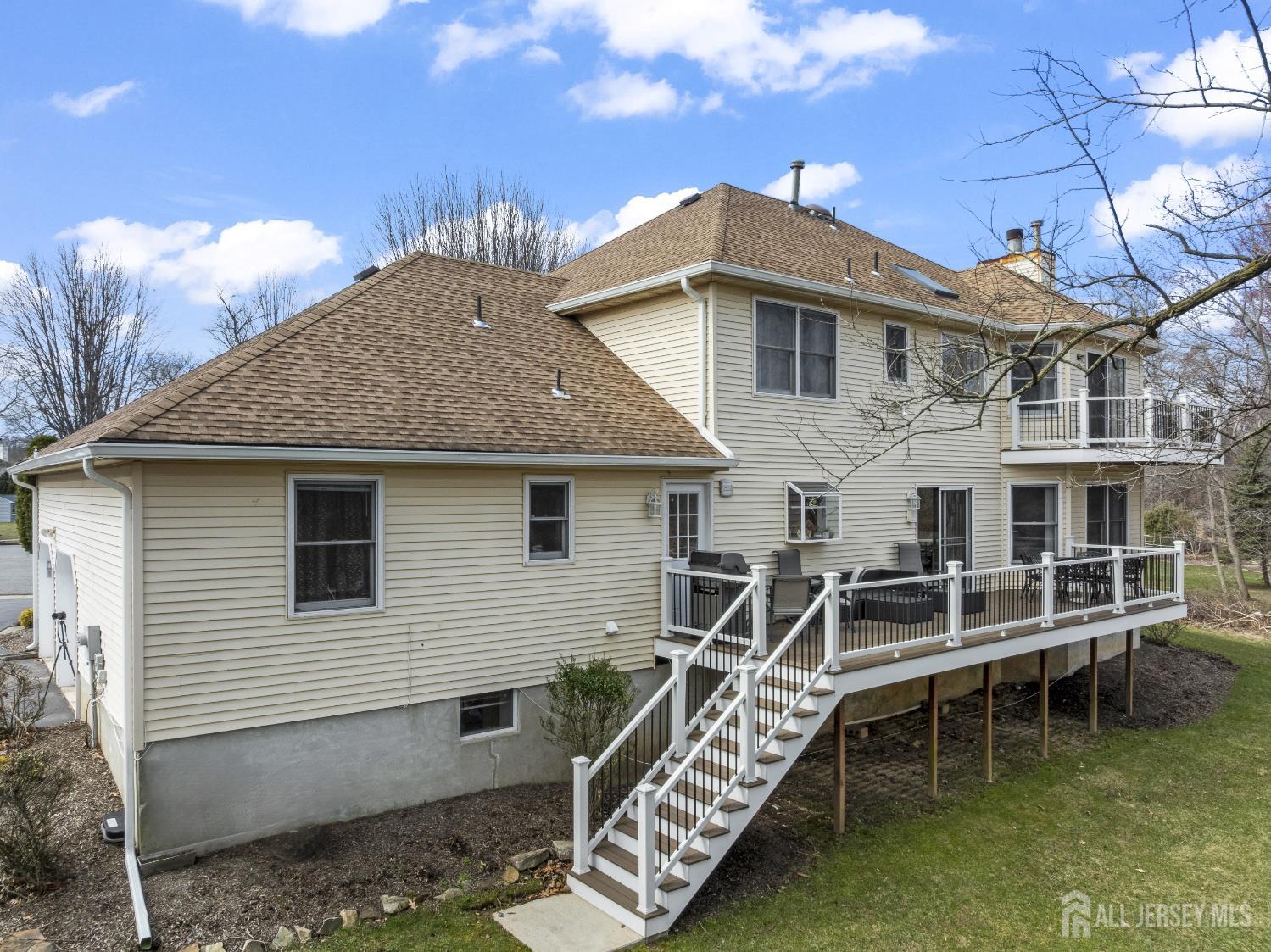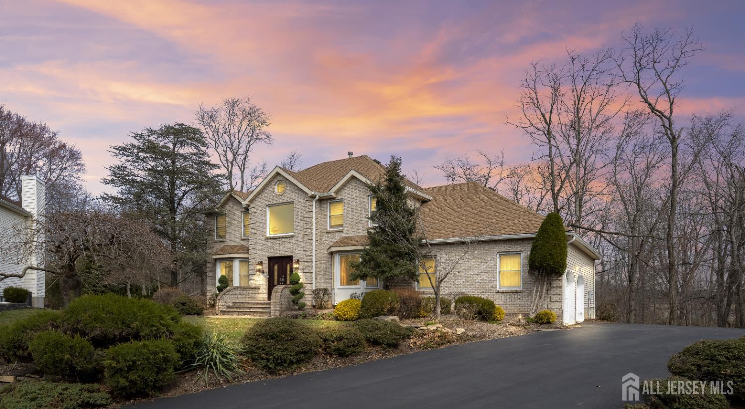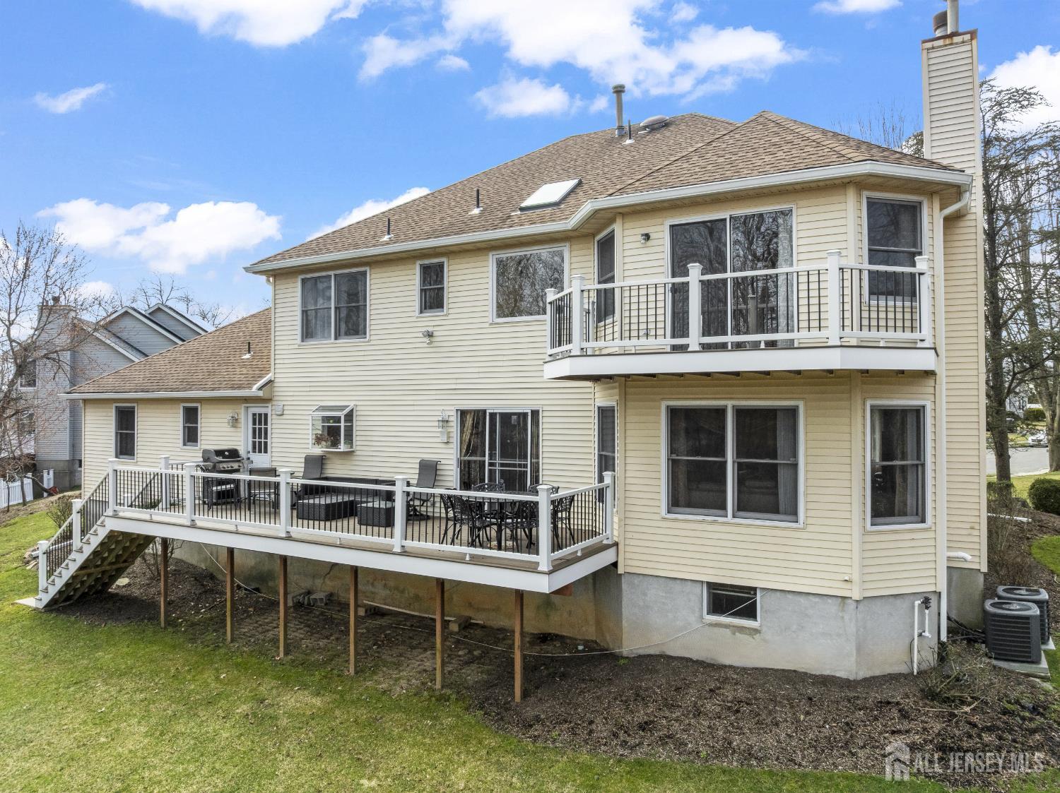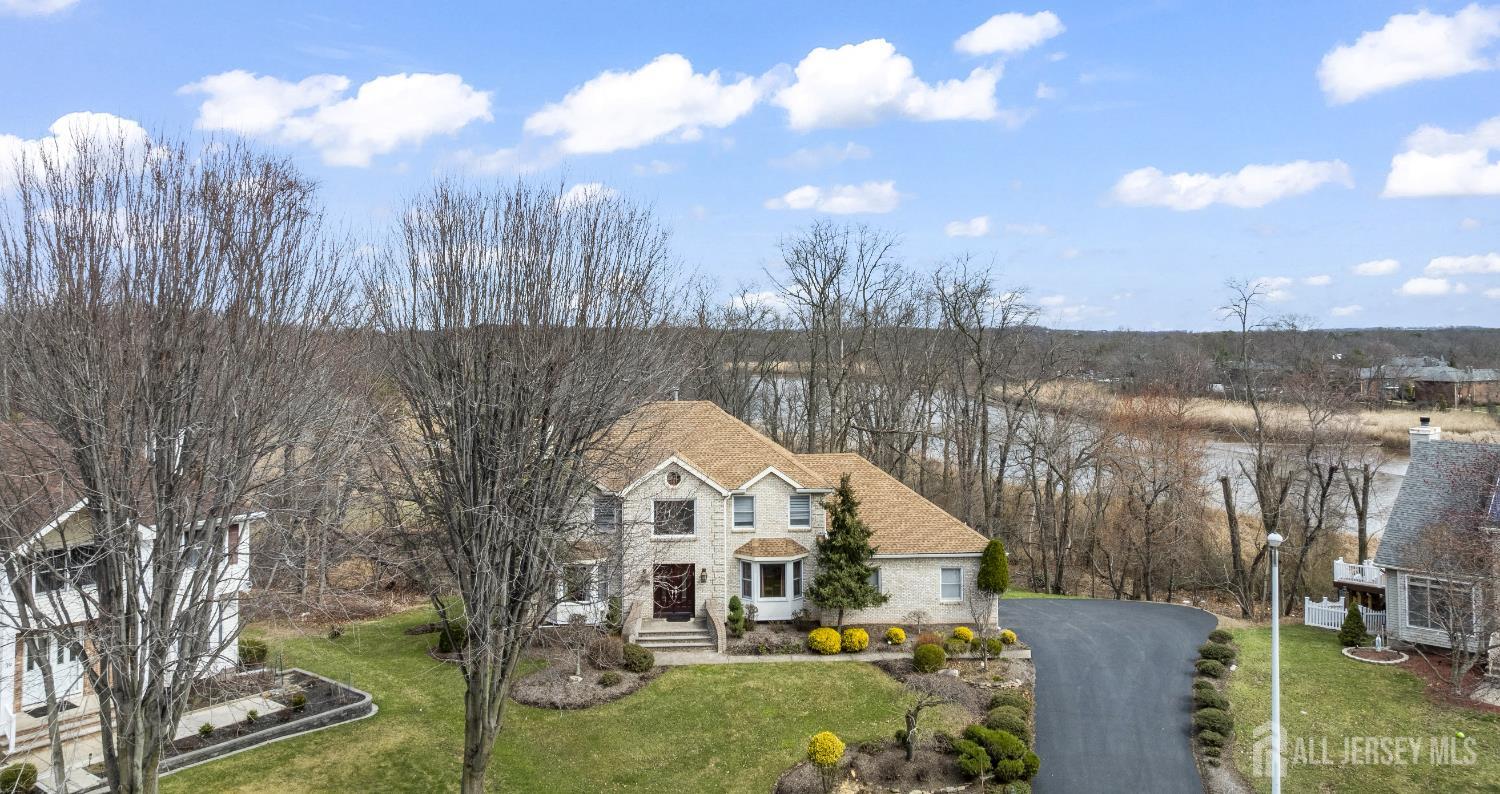 Nestled within the highly sought-after Sunrise Landing community, this exceptional home is set in a picturesque, tree-lined neighborhood surrounded by mature landscaping, offering a peaceful and scenic setting. The propertys backdrop is truly remarkable, with the rear of the home overlooking a tranquil river, creating a serene and ever-changing natural view that enhances everyday living. Upon entering, a dramatic two-story foyer welcomes you into a spacious and thoughtfully designed interior. Hardwood floors, recessed lighting, and abundant windows fill the home with natural light, creating a bright and inviting atmosphere throughout. The expansive living room provides an ideal space for entertaining, while the banquet-sized dining room offers an elegant setting for gatherings. The inviting family room features a wood-burning fireplace with a striking floor-to-ceiling brick mantle, perfect for relaxing evenings. The gourmet kitchen serves as the heart of the home, complete with stainless steel appliances, a tabletop gas cooktop, a double-wall oven, a center island, a wine refrigerator, and a wine rack. A sunlit breakfast nook overlooks the backyard and river, offering a peaceful setting to start your day. This level also includes a versatile den or home office, a conveniently located laundry room, and a full bathroom. Upstairs, the primary bedroom suite offers a private retreat, featuring a walk-in closet and sliding glass doors that lead to a second-floor balcony. From this elevated vantage point, enjoy unobstructed views of the river and surrounding trees, an ideal setting for morning coffee or unwinding at sunset. The spa-like en-suite bath includes a jacuzzi-style soaking tub, separate shower, and double vanities. Three additional generously sized bedrooms and a full bath complete the upper level. The finished basement expands the living space, offering a full bathroom and flexible areas suitable for recreation, fitness, or storage. Step outside to your private outdoor oasis, where a spacious deck overlooks the natural landscape and tranquil river beyond. Surrounded by mature trees, the backyard offers a sense of privacy and a connection to nature, making it ideal for both quiet relaxation and entertaining. Ideally located with convenient access to NYC bus routes, Route 18, Route 1, and the NJ Turnpike. Close to Downtown New Brunswick, Rutgers University, major hospitals, shopping, dining, and recreational options. Located within a highly regarded East Brunswick public school district.