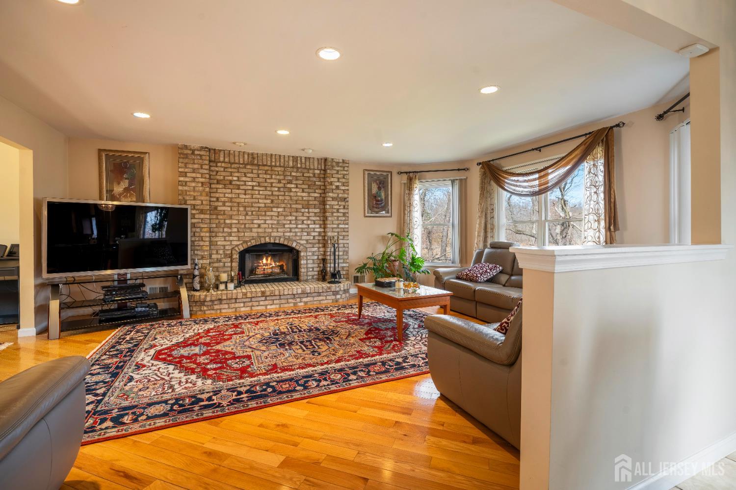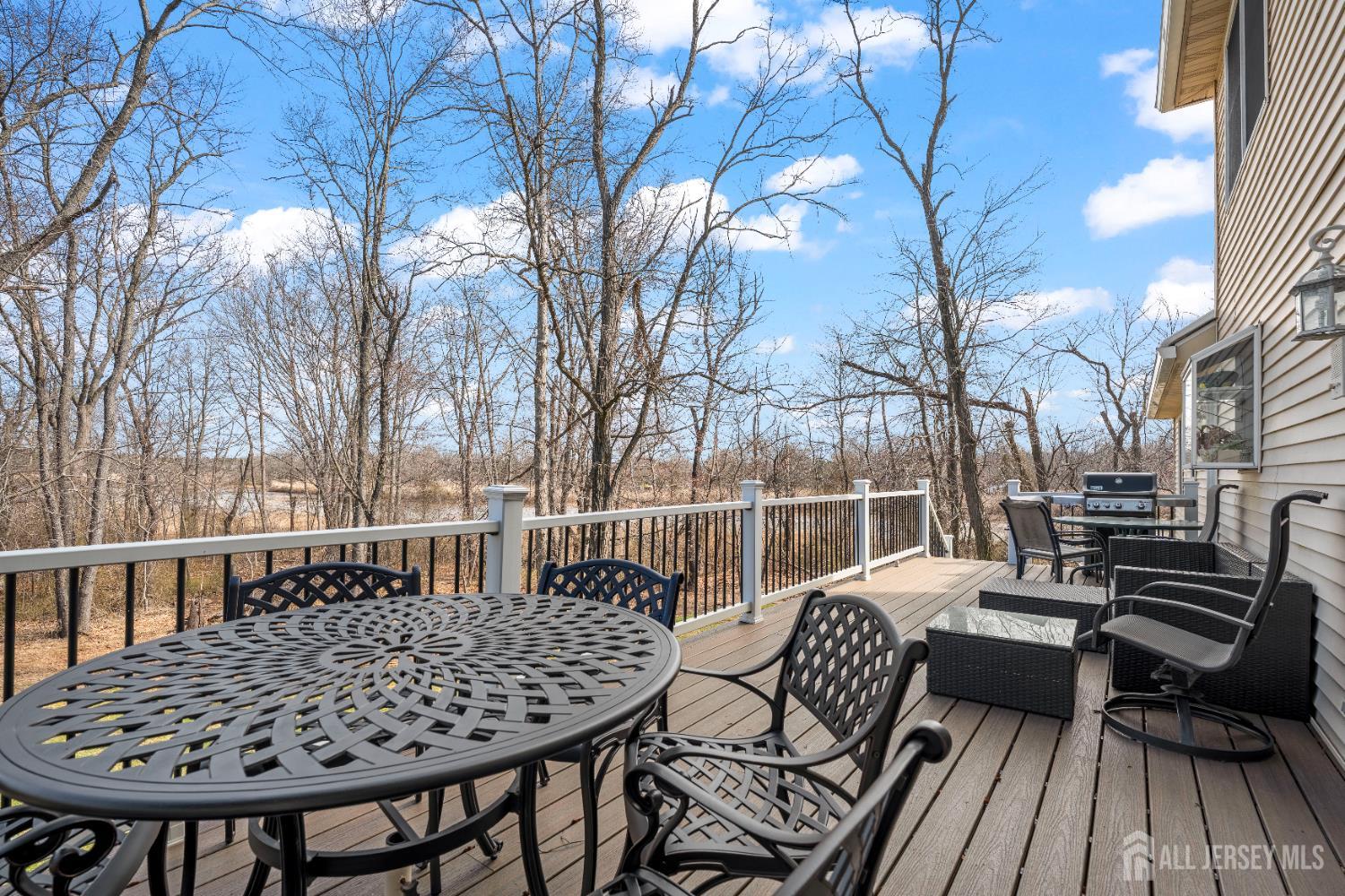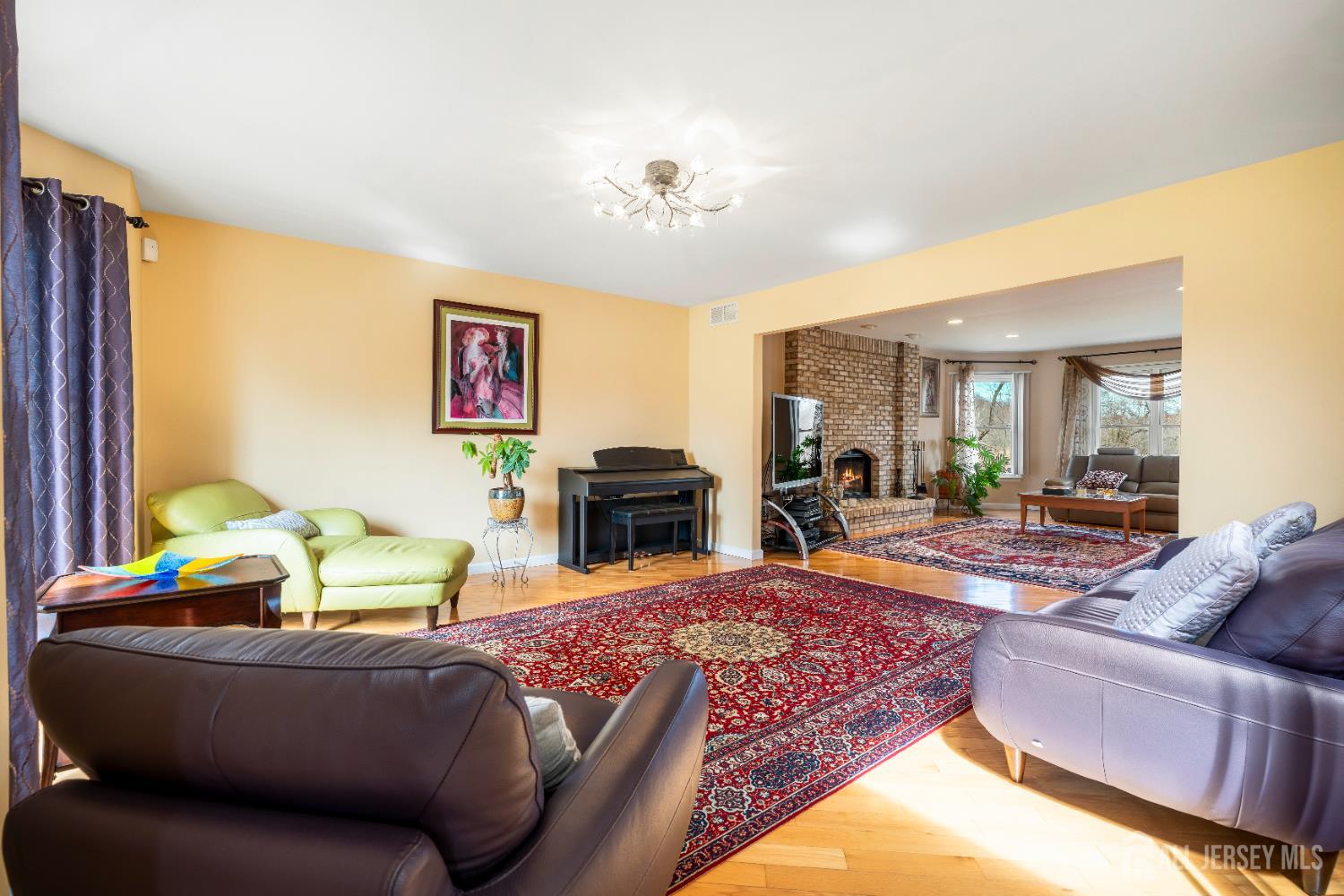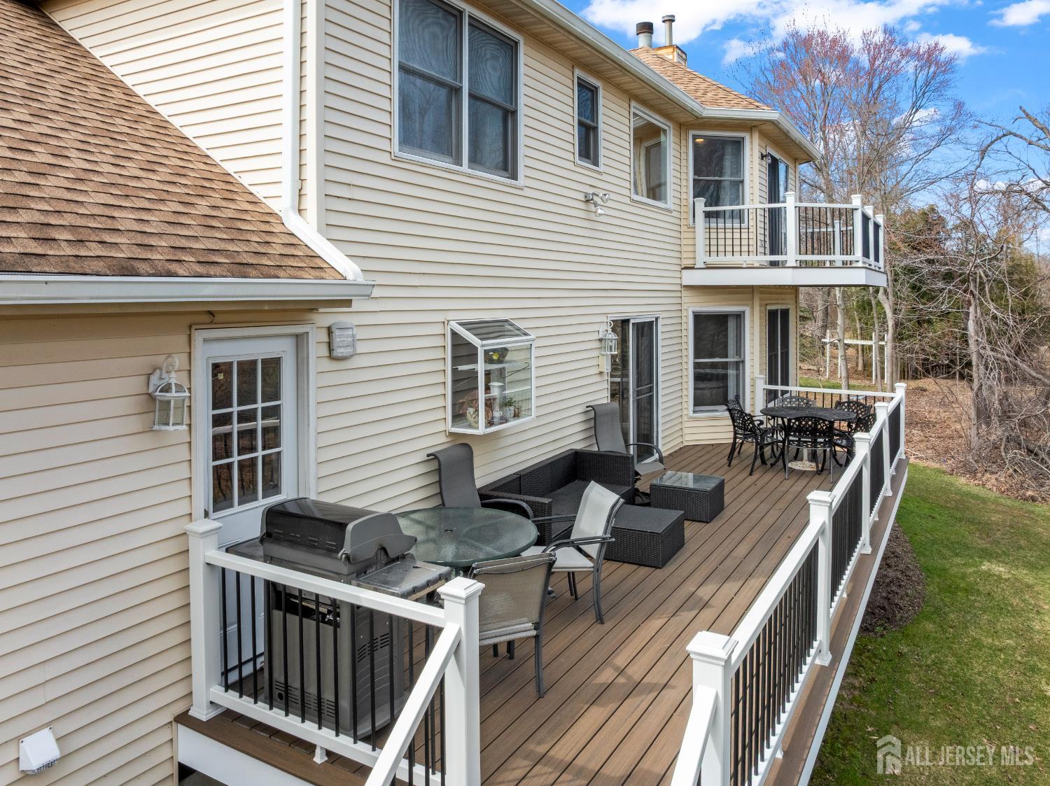 Nestled within the highly sought-after Sunrise Landing community, this exceptional home is set in a picturesque, tree-lined neighborhood surrounded by mature landscaping, offering a peaceful and scenic setting. The propertys backdrop is truly remarkable, with the rear of the home overlooking a tranquil river, creating a serene and ever-changing natural view that enhances everyday living. Upon entering, a dramatic two-story foyer welcomes you into a spacious and thoughtfully designed interior. Hardwood floors, recessed lighting, and abundant windows fill the home with natural light, creating a bright and inviting atmosphere throughout. The expansive living room provides an ideal space for entertaining, while the banquet-sized dining room offers an elegant setting for gatherings. The inviting family room features a wood-burning fireplace with a striking floor-to-ceiling brick mantle, perfect for relaxing evenings. The gourmet kitchen serves as the heart of the home, complete with stainless steel appliances, a tabletop gas cooktop, a double-wall oven, a center island, a wine refrigerator, and a wine rack. A sunlit breakfast nook overlooks the backyard and river, offering a peaceful setting to start your day. This level also includes a versatile den or home office, a conveniently located laundry room, and a full bathroom. Upstairs, the primary bedroom suite offers a private retreat, featuring a walk-in closet and sliding glass doors that lead to a second-floor balcony. From this elevated vantage point, enjoy unobstructed views of the river and surrounding trees, an ideal setting for morning coffee or unwinding at sunset. The spa-like en-suite bath includes a jacuzzi-style soaking tub, separate shower, and double vanities. Three additional generously sized bedrooms and a full bath complete the upper level. The finished basement expands the living space, offering a full bathroom and flexible areas suitable for recreation, fitness, or storage. Step outside to your private outdoor oasis, where a spacious deck overlooks the natural landscape and tranquil river beyond. Surrounded by mature trees, the backyard offers a sense of privacy and a connection to nature, making it ideal for both quiet relaxation and entertaining. Ideally located with convenient access to NYC bus routes, Route 18, Route 1, and the NJ Turnpike. Close to Downtown New Brunswick, Rutgers University, major hospitals, shopping, dining, and recreational options. Located within a highly regarded East Brunswick public school district.