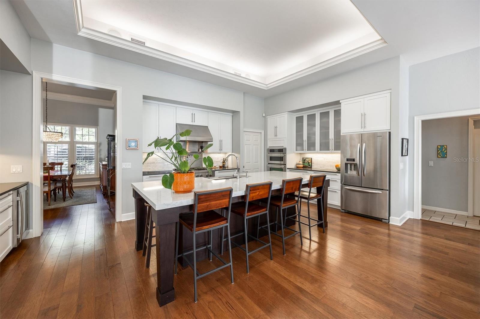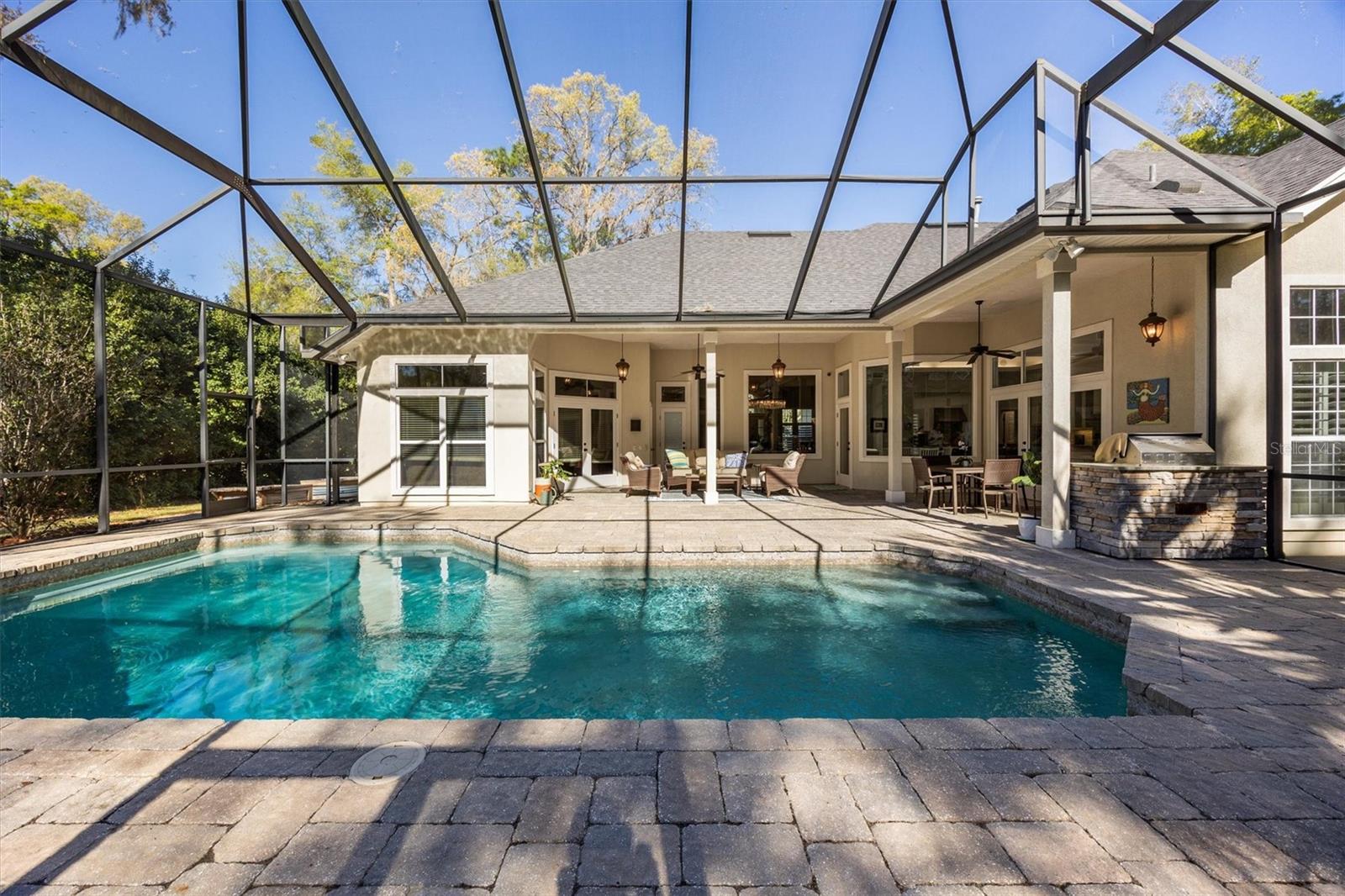 Gorgeous executive home - where refined luxury meets relaxed living! This turn-key 4 bedroom, 3.5 bath home is beautifully positioned on a private lot, backing to a lush, neighborhood reserve, and offering an exceptional blend of elegance, comfort, and functional living. Light-filled and thoughtfully designed by its original owners and built by Barry Bullard, the home features an effortless floor plan ideal for both everyday living and entertaining. Architectural details and designer lighting throughout the home add to the appeal of this special property. At the heart of the home is a beautifully remodeled kitchen, showcasing quartz countertops, custom cabinetry, space-efficient drawer storage, premium JennAir and KitchenAid appliances, and many other thoughtful features. The Baths and floors have been updated in recent years as wellthis home is truly turn-key! The primary suite is a true retreat, with a spacious bedroom complete with sitting area, luxurious finishes, and two spacious closets. Adjoining it is the en-suite bath, featuring a spa-like tub, dual vanities and exceptional storage. The three-way split floor plan has offers two additional bedrooms and baths on the main level, thoughtfully separated from the primary suite. Multiple shared areas of the home include a welcoming living room, a formal dining room, family room, AND a private studyideal for remote work or for quiet relaxation. Upstairs, a large flex room offers incredible versatility as a media room, playroom, or secondary living area, along with an additional bedroom and full bath, perfect for guests or multi-generational living. Step outside to experience true Florida enjoyment! The screened lanai offers generous covered seating and dining space, and centers around the saltwater pool all overlooking the serene setting. The backyard is beautifully curated, with mature landscaping, a fire pit, citrus trees, and raised garden beds with drip irrigationcreating a peaceful and private outdoor retreat. The built-in summer kitchen invites casual cooking and entertaining, while participating in the action. The home is located in Albury Round within the Haile community, and just a short walk to the park, Hawkstone Golf Course, miles of walking and biking trails, and Haile Village Center. Conveniently located near the University of Florida, UF Health, the VA, and North Florida Regional Medical Center.
