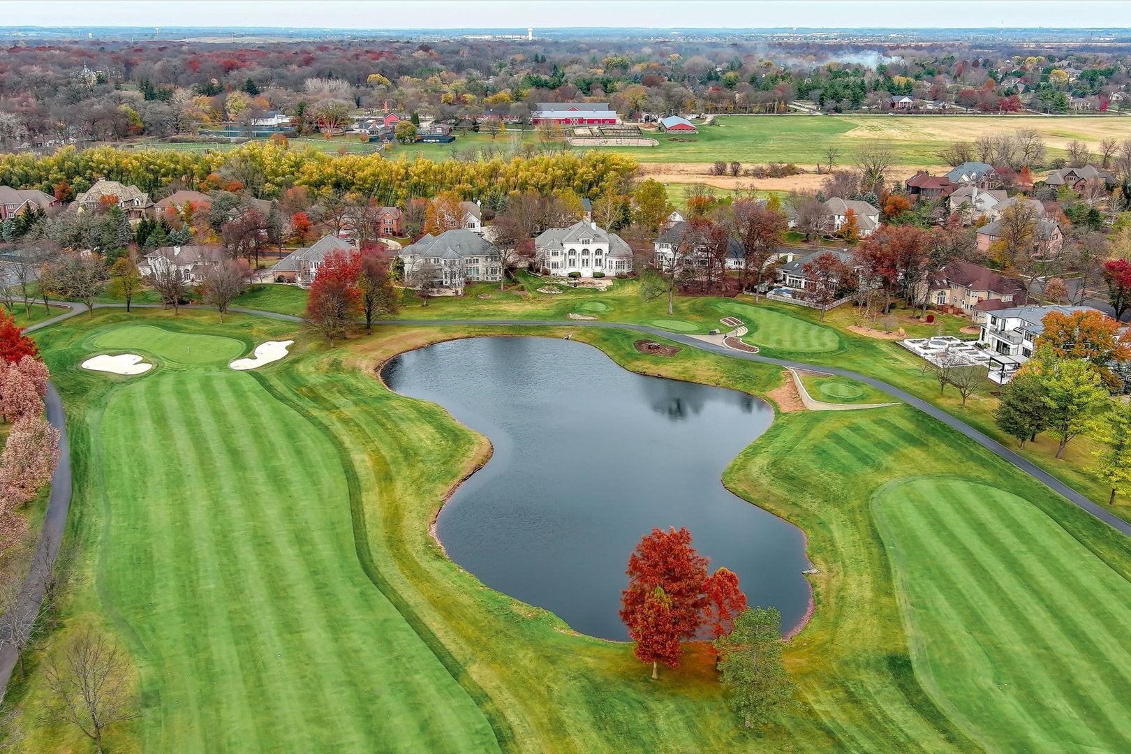 Prepare to be amazed at the sheer volume of stunning natural light that fills this custom estate home situated on the Royal Fox Golf Course! This modern marvel with 5 bedrooms and 5.1 baths will surprise you at every turn! The grand columned front porch is spectacular! The 2-story foyer has hardwood floors and a custom double back staircase like no other. There is a columned entry to the sunken living room with gorgeous light fixtures and access to the balcony overlooking your very own sports court and a glass door to the front porch. There is also a columned entry to the formal dining room with more beautiful lighting and another glass door to the porch! The southern exposure family room and kitchen are the heart of this beauty! A Chefs kitchen awaits with custom white cabinetry, quartz countertops, SS high-end appliances, center island, 2 pantry closets, breakfast bar and bayed eating space with glass doors out to the patio. The 2-story family room boasts a 2-sided fireplace with decorative columns above, overlook from hall above and 2 sets of glass doors with windows above that lead out to a luxurious patio overlooking a waterfall pond and the Royal Fox Golf Course! There is a wet bar area with glass doors to the patio and access to the sunroom with volume ceiling, panoramic views and glass doors to the patio and access to a 2nd balcony overlooking the sports court. Convenient main floor laundry room with sink, cabinets and glass door to the yard. Primary retreat with recessed ceiling, awesome golf course views from sitting area, custom walk-in closet and the bath of your dreams with custom lighted marble floor, custom tiled walls, dual vanities, custom bathtub and oversized double rain head shower! Bedroom two with platform bed space, walk-in closet and private en-suite bath. Bedrooms three and four with walk-in closets and they share a Jack & Jill bath with dual sink vanity and shower/tub. There is a multiuse third floor in this home with another large bedroom, sitting area, full bath and a massive walk-in closet with built-ins galore! Just when you think youve seen it all lets take a trip to the huge, finished deep pour basement! The finished basement has so much to offer including a theater room with built-in seating, a huge work-out space, pool table area, an office space with built-in desks, full bath, abundant storage and we saved the best for last! There is a 2-story sports court with endless possibilities for family/friend fun time! Zoned HVAC. Three car side load garage. This home is just minutes from local schools, the Royal Fox clubhouse and historic downtown St. Charles! This home truly has it all!