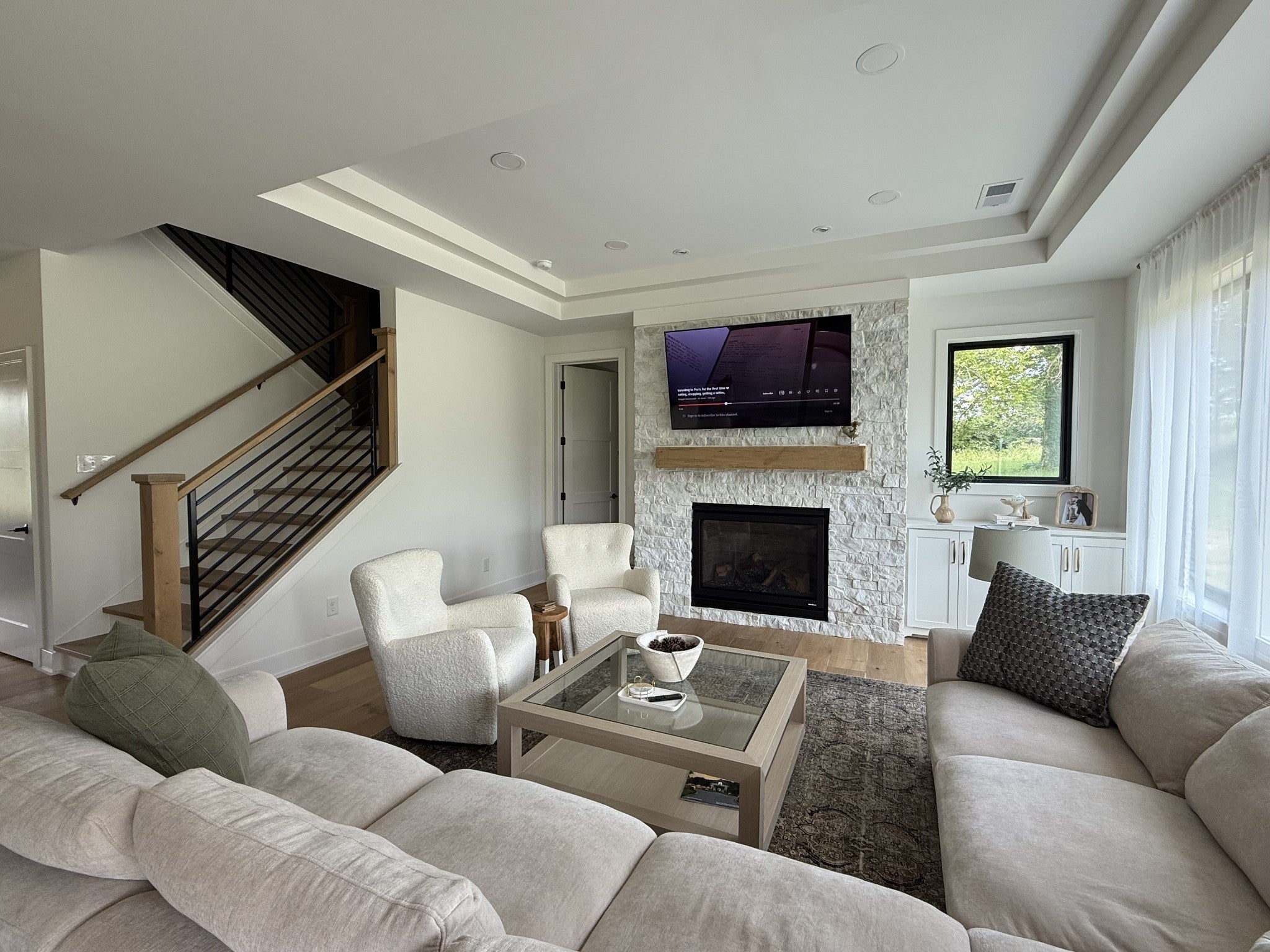 Nestled within the highly sought-after Sunrise Landing community, this exceptional home is set in a picturesque, tree-lined neighborhood surrounded by mature landscaping, offering a peaceful and scenic setting. The propertys backdrop is truly remarkable, with the rear of the home overlooking a tranquil river, creating a serene and ever-changing natural view that enhances everyday living.