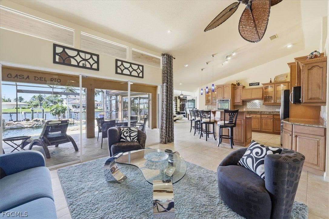 Welcome to refined waterfront living in one of Cape Corals most sought-after neighborhoods. This exceptional residence offers over 2,400 square feet of beautifully designed living space with an expansive open-concept floor plan that seamlessly blends comfort, style, and effortless entertaining. Step outside to your own private resort-style oasis.