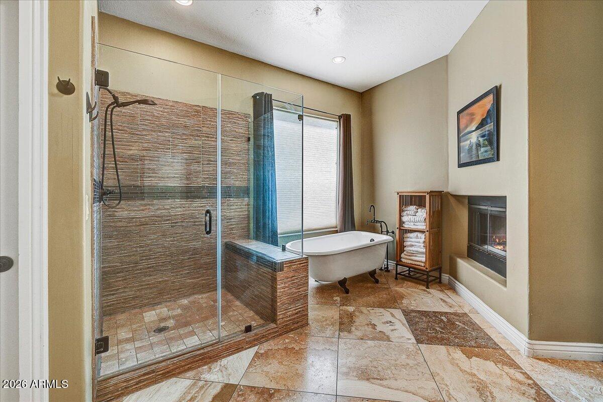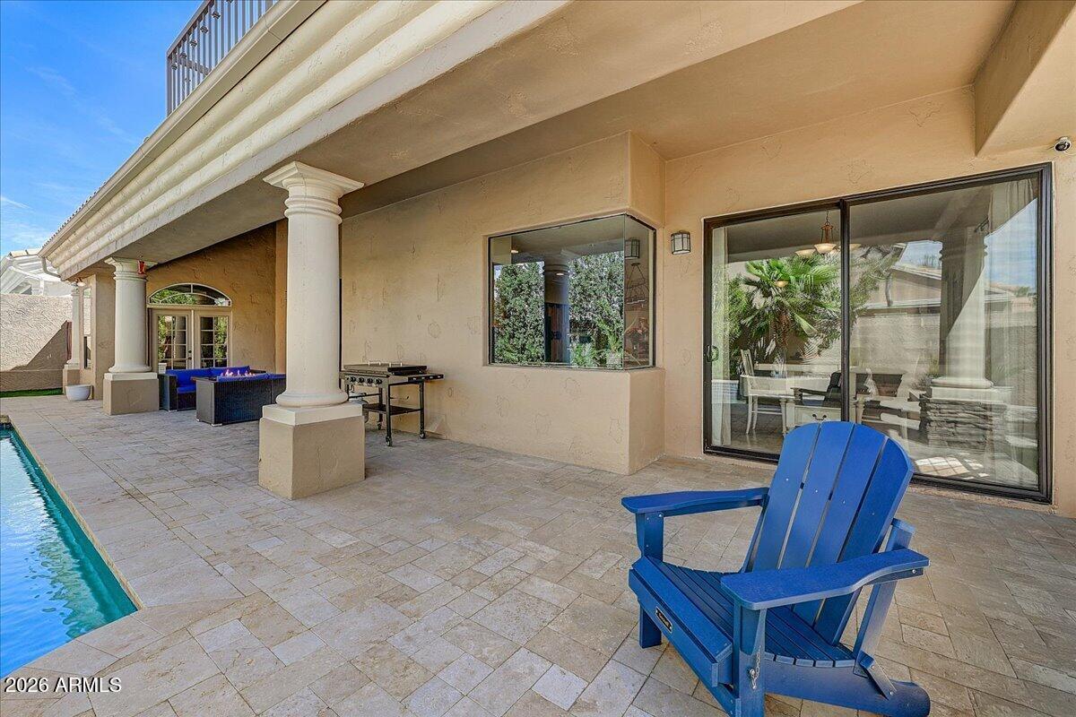 IMPRESSIVE LUXURY PROPERTY IN THE POPULAR RIO MONTANA SUBDIVISION. Architecturally distinctive interior features a stunning staircase, soaring ceilings, elegant travertine and wood flooring with French doors. Preferred floor plan has great functionality with 4 bedrooms, 3.5 baths separate office additional flex room or studio. Expansive living areas with great room concept, formal dining and multiple bonus rooms. Bright and open kitchen with upgraded cabinetry, granite countertops and butlers pantry. Large master suite with upscale bathroom, 2-way fireplace, sitting room and private balcony. Property in very good condition and well maintained with new A/C units, water heater and smart pool technology. Exceptional outdoor living. Located close to BASIS school and Mayo. GREAT VALUE!