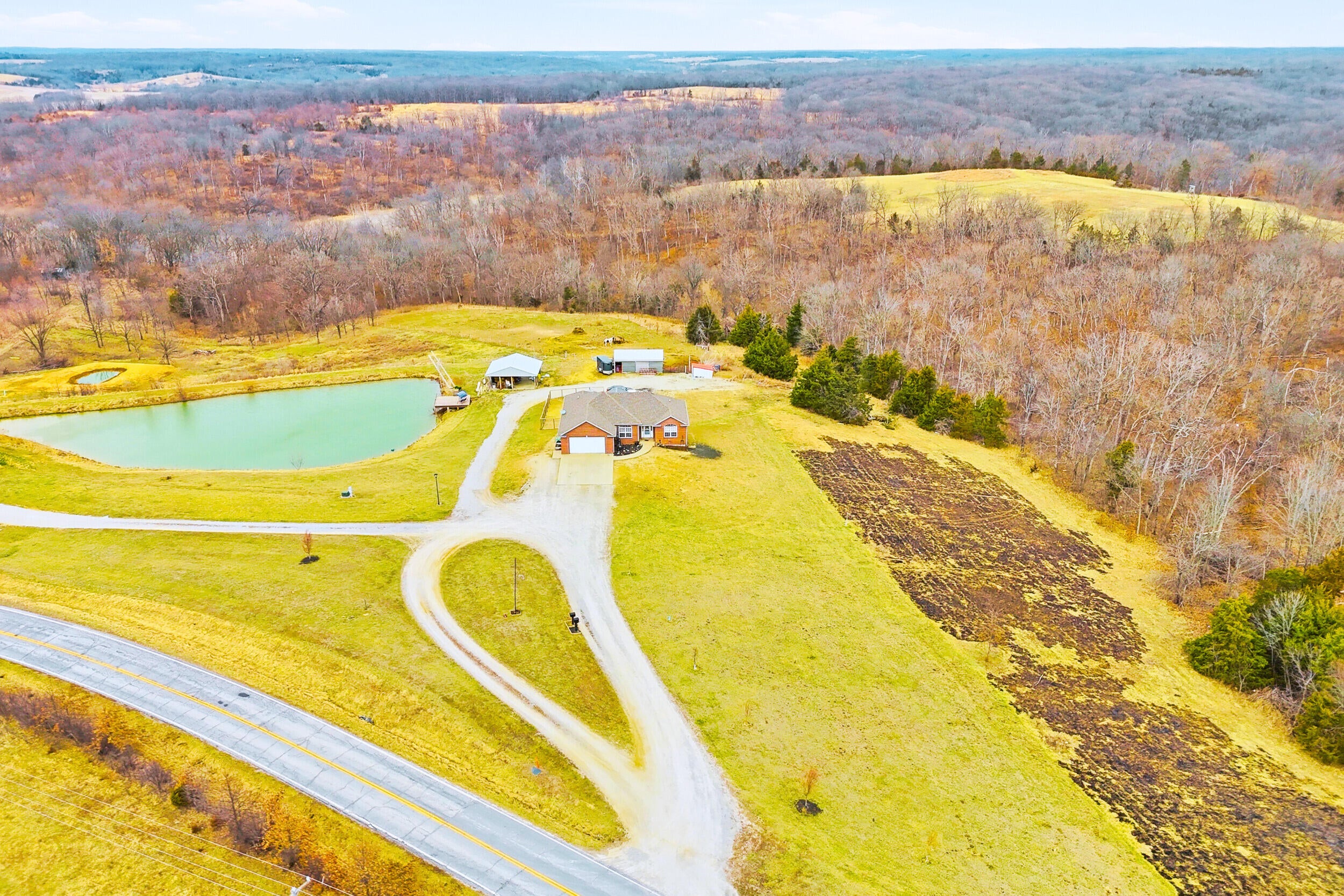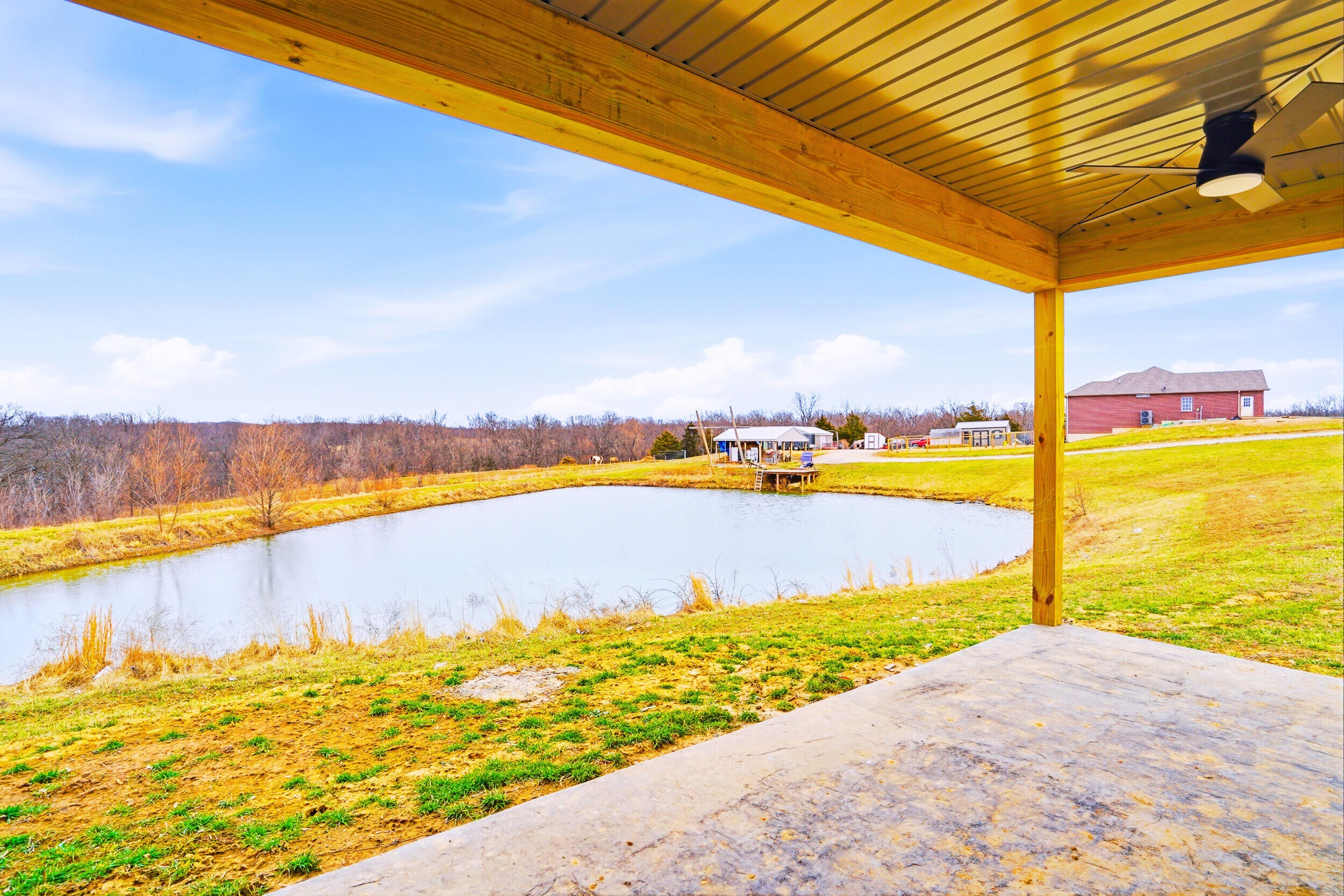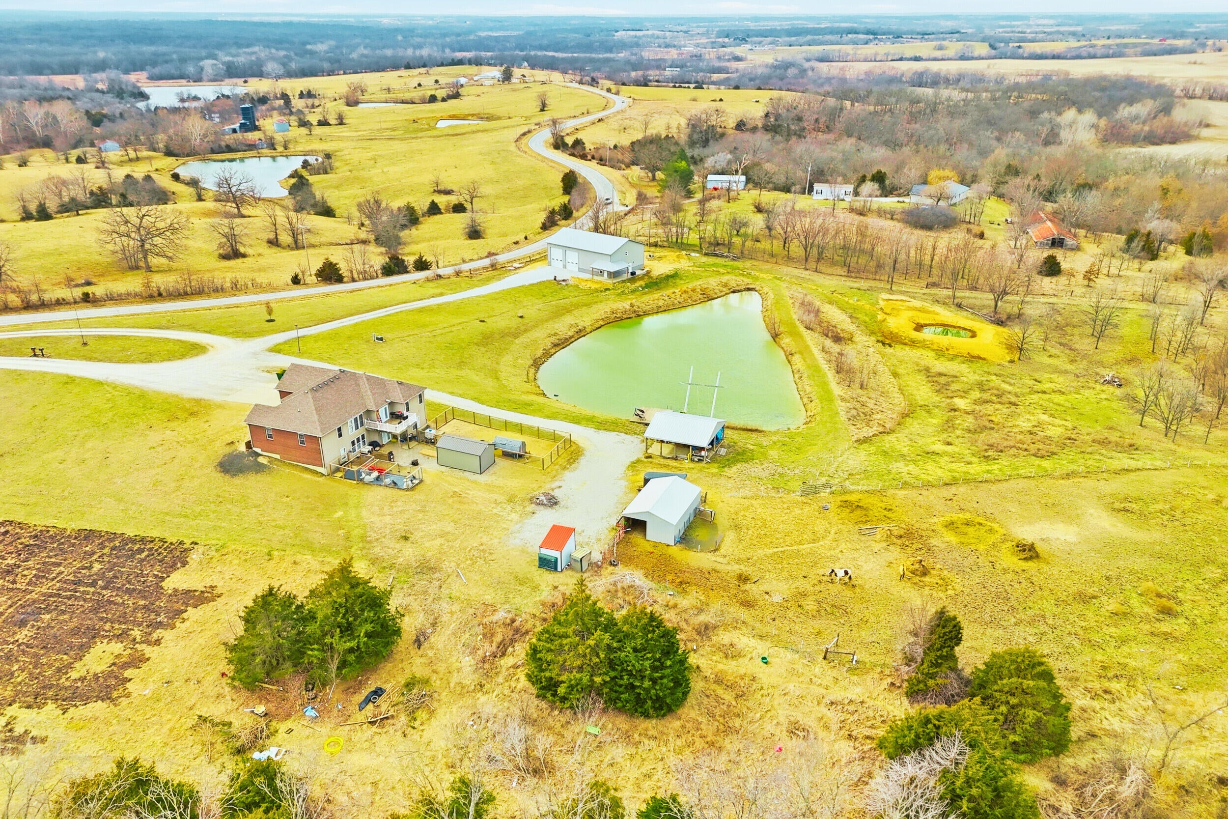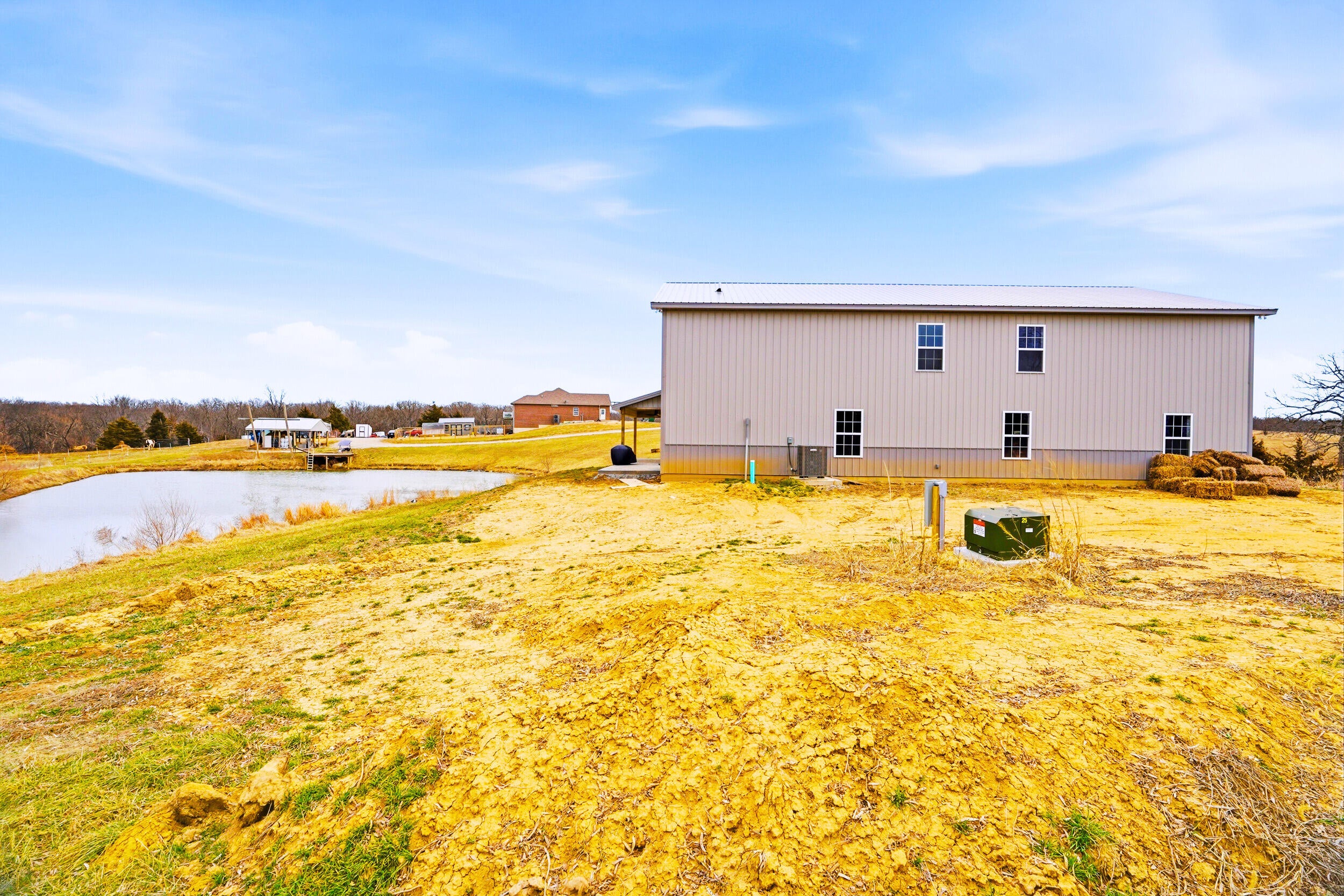 Rare find! 9 ac m/l mini farm with 2 homes in Howard County with no restrictions, in Harrisburg Schools and near Boone County and Columbia. The ranch walkout home features 5 bedrooms, 3.5 baths, vaulted living room ceiling, formal dining room, breakfast area, and 9 ceilings on the main level and basement. The basement includes a large family room and a concrete room. Enjoy the large pond, 3-stall horse barn, and the large covered concrete patio overlooking the water--perfect for relaxing or entertaining. Also included is a 40x60 Shouse built in 2024 with approx. 1,200 sq ft of living space- ideal for guests, rental, and or enjoying the large garage/shop area. Bring your horses and enjoy country living minutes from Columbia.