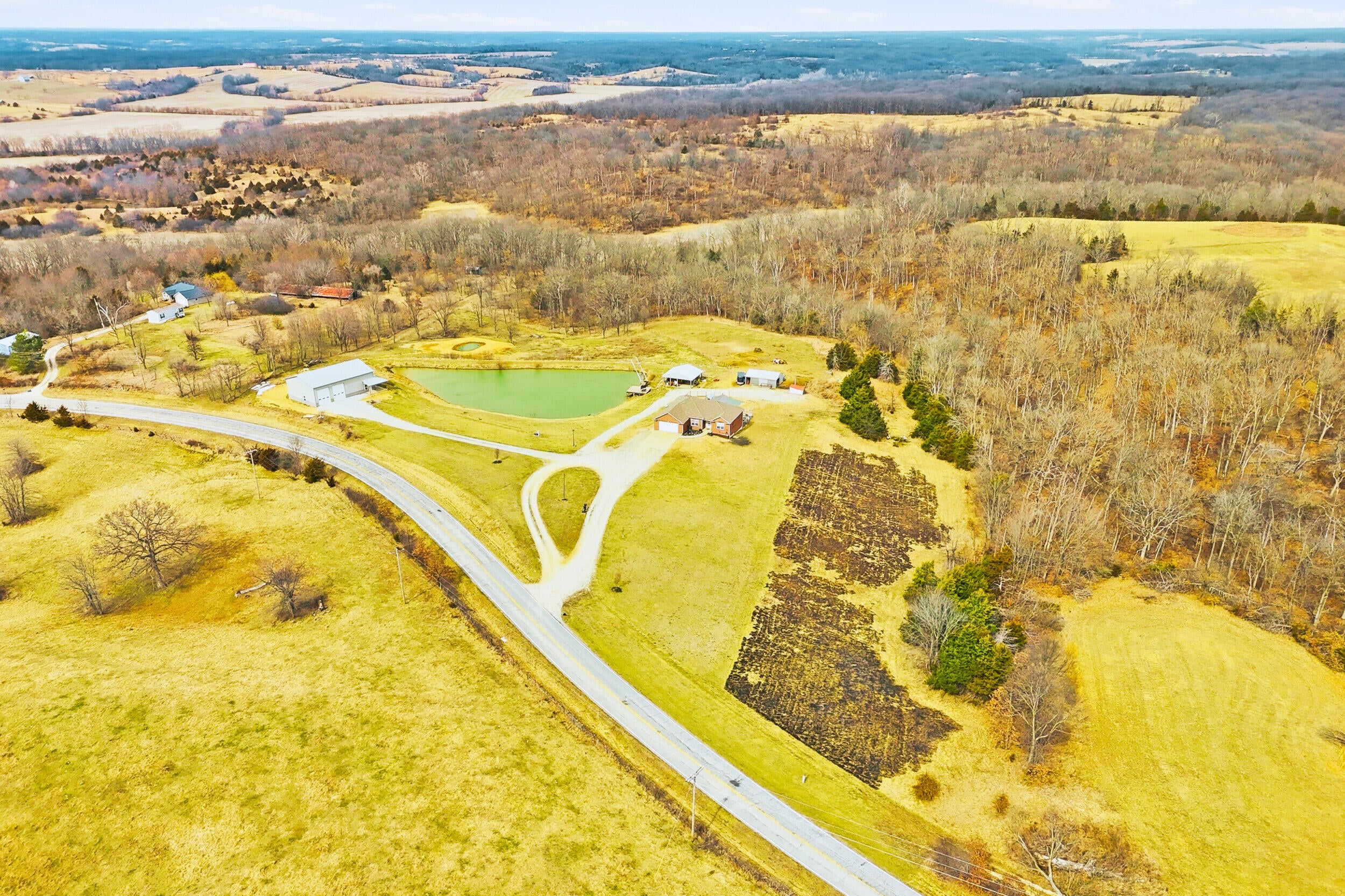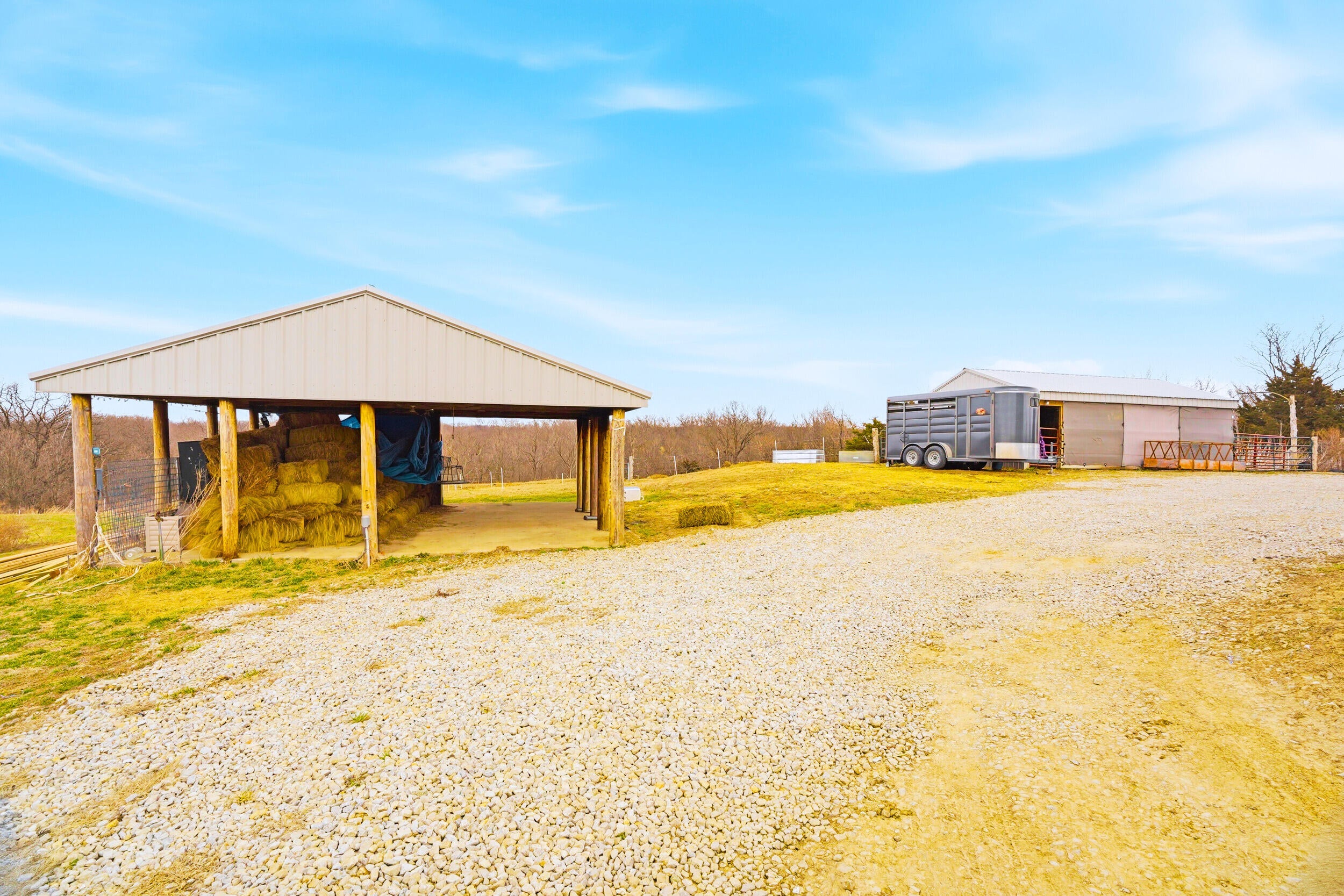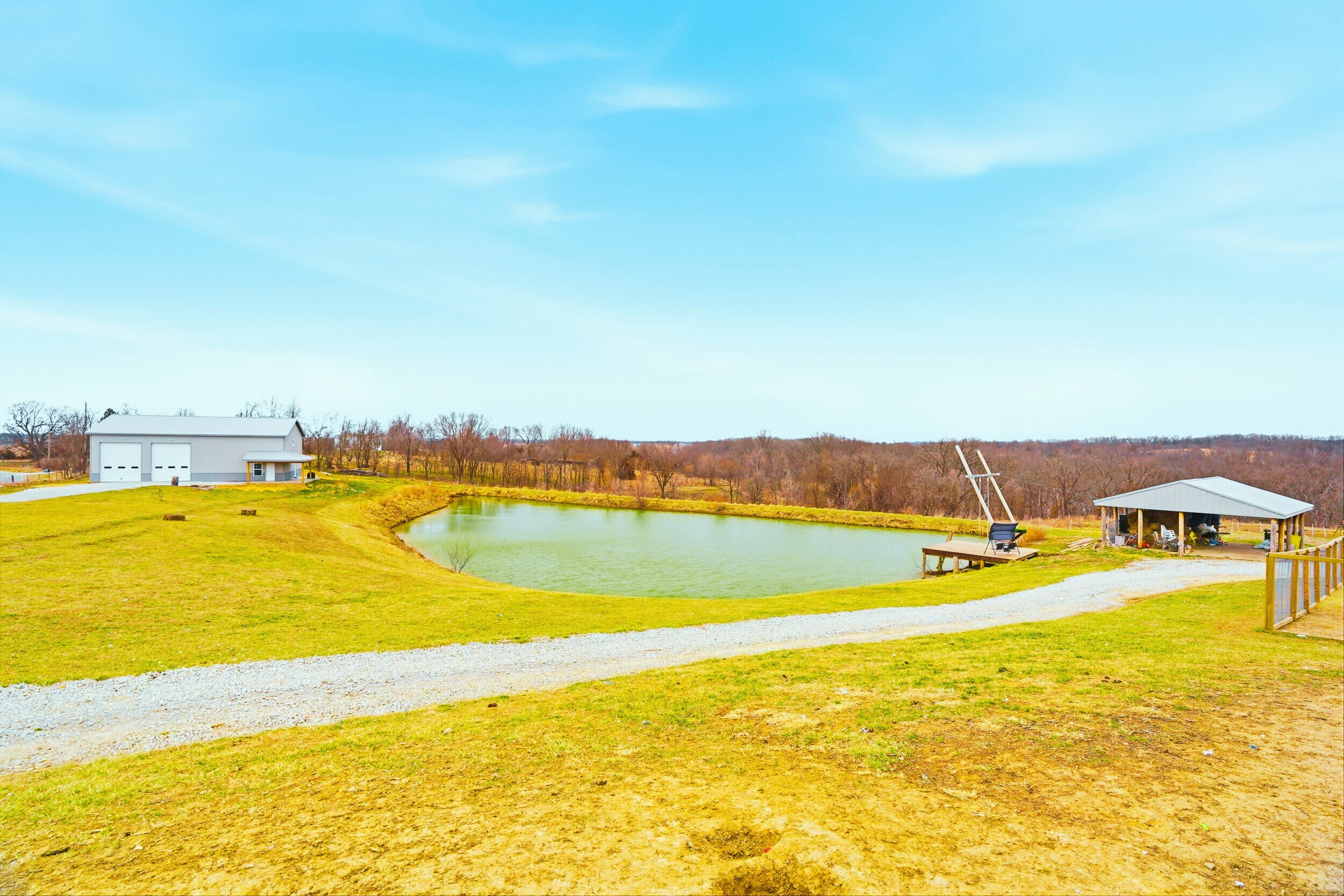 Rare find! 9 ac m/l mini farm with 2 homes in Howard County with no restrictions, in Harrisburg Schools and near Boone County and Columbia. The ranch walkout home features 5 bedrooms, 3.5 baths, vaulted living room ceiling, formal dining room, breakfast area, and 9 ceilings on the main level and basement. The basement includes a large family room and a concrete room. Enjoy the large pond, 3-stall horse barn, and the large covered concrete patio overlooking the water--perfect for relaxing or entertaining. Also included is a 40x60 Shouse built in 2024 with approx. 1,200 sq ft of living space- ideal for guests, rental, and or enjoying the large garage/shop area. Bring your horses and enjoy country living minutes from Columbia.