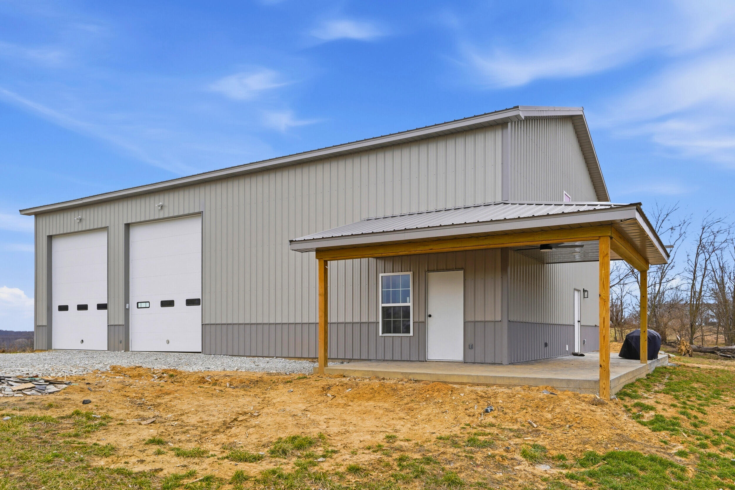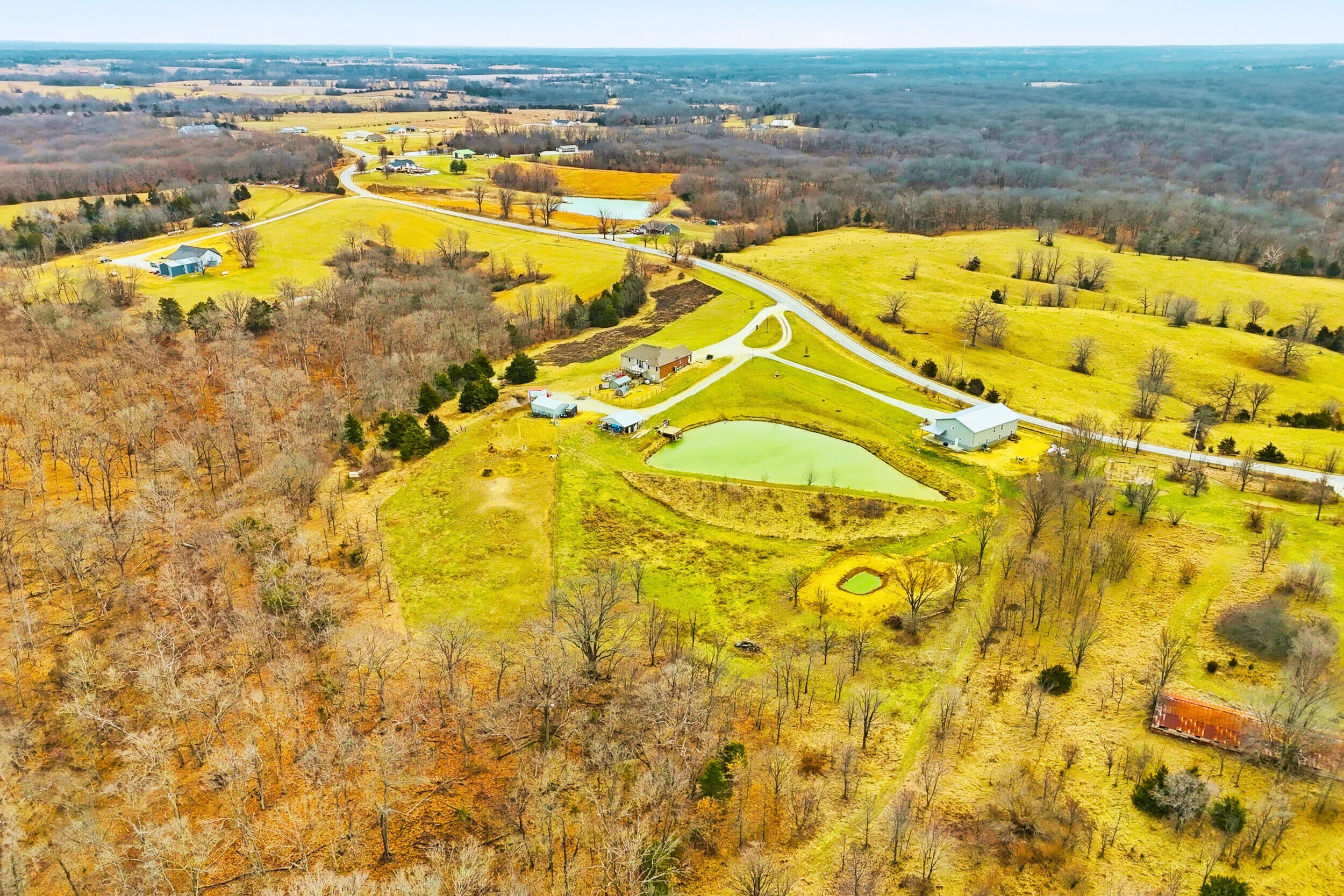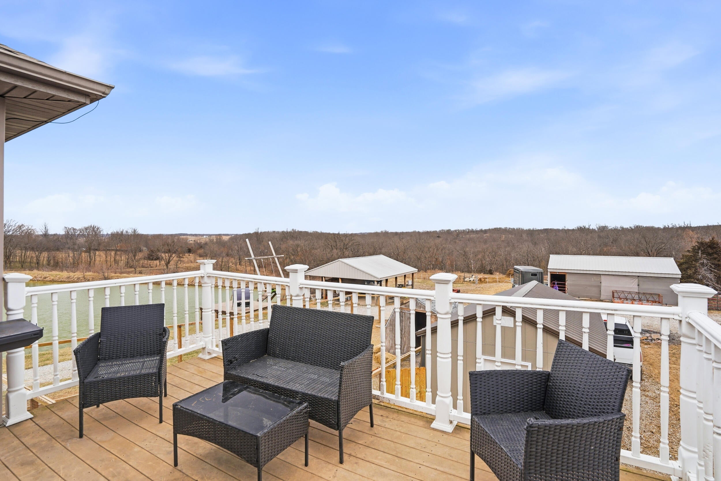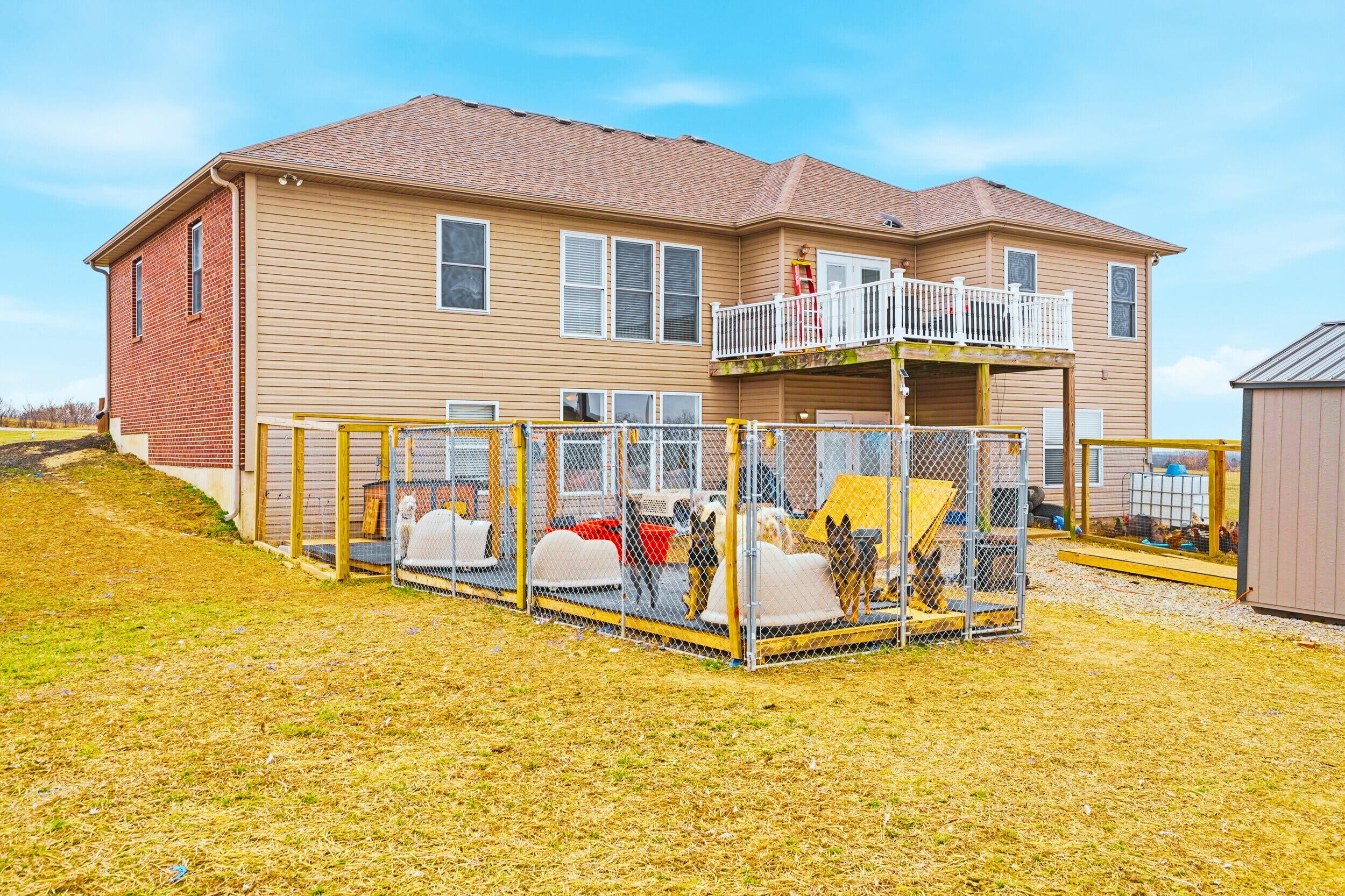 Rare find! 9 ac m/l mini farm with 2 homes in Howard County with no restrictions, in Harrisburg Schools and near Boone County and Columbia. The ranch walkout home features 5 bedrooms, 3.5 baths, vaulted living room ceiling, formal dining room, breakfast area, and 9 ceilings on the main level and basement. The basement includes a large family room and a concrete room. Enjoy the large pond, 3-stall horse barn, and the large covered concrete patio overlooking the water--perfect for relaxing or entertaining. Also included is a 40x60 Shouse built in 2024 with approx. 1,200 sq ft of living space- ideal for guests, rental, and or enjoying the large garage/shop area. Bring your horses and enjoy country living minutes from Columbia.