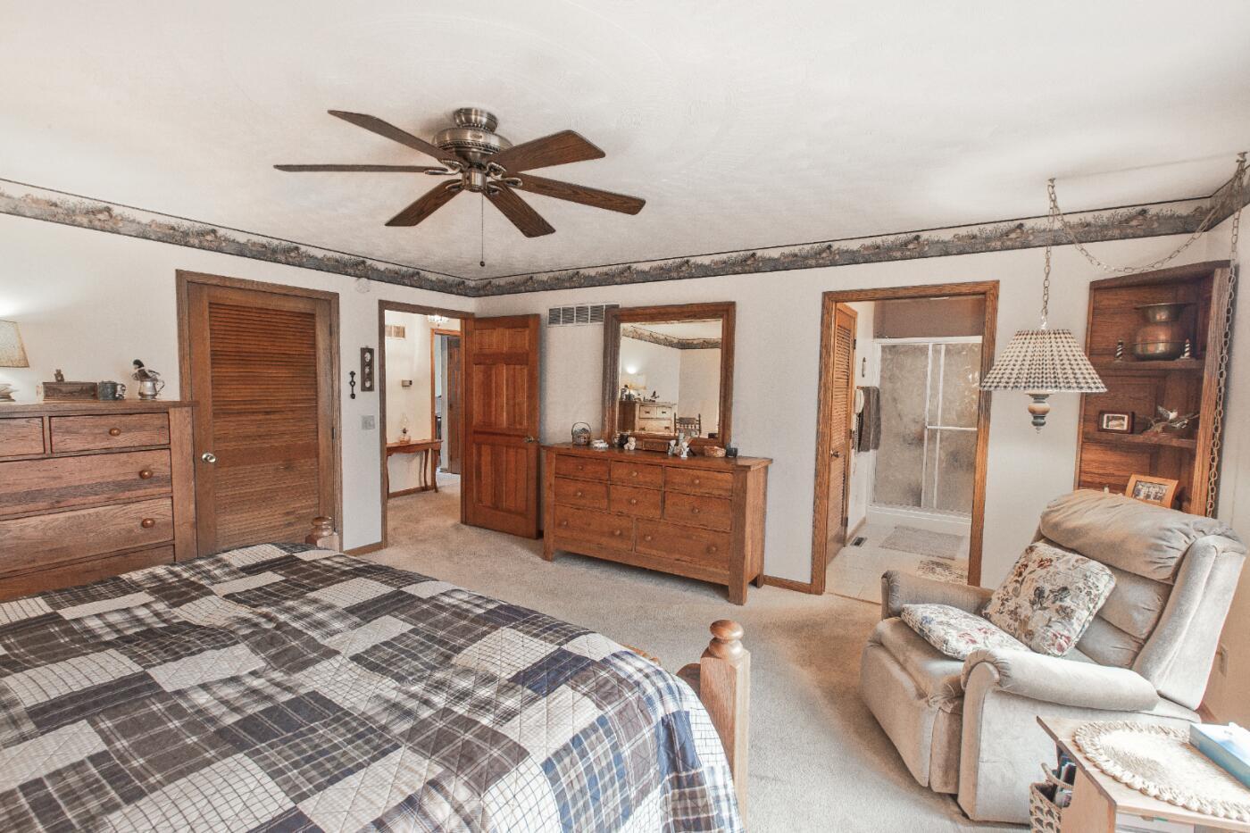 Rare find! 9 ac m/l mini farm with 2 homes in Howard County with no restrictions, in Harrisburg Schools and near Boone County and Columbia. The ranch walkout home features 5 bedrooms, 3.5 baths, vaulted living room ceiling, formal dining room, breakfast area, and 9 ceilings on the main level and basement. The basement includes a large family room and a concrete room.