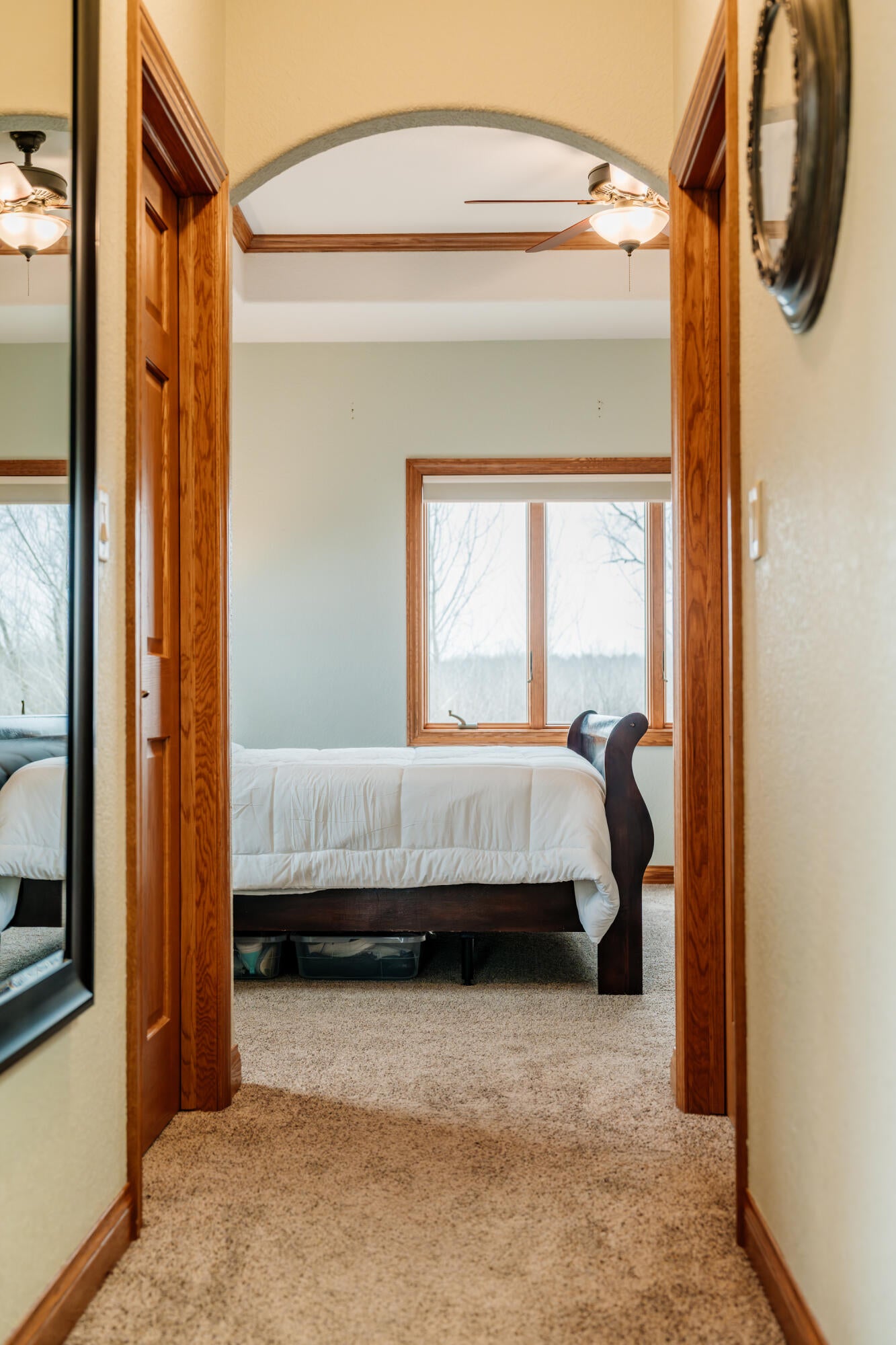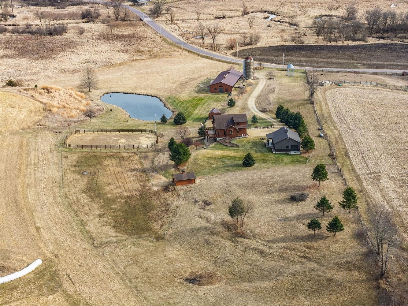 Sauk Prairie School District. Discover timeless craftsmanship and refined country living at this North Woodsstyle post-and-beam home on 58.64 serene acres. Built in 2010, the 3 BR, 2.5 BA, 2,100 SF residence showcases cedar siding, vaulted ceilings, a loft, propane heat, lite speed Fiber Optic internet, drilled well, and at-grade septic. Enjoy scenic views, trophy deer, turkey. Outbuildings include a 30x40 insulated Cleary garage (2021; finished 2024), 118x36 remodeled storage building (2023), 24x12 powered cabin (repainted 2025), 11x22 electrified loafing shed with waterer, and a 120x70 lighted riding arena (2017). Land features woods, marsh, pasture, 27 acres of alfalfa (7,425/yr rent), snowmobile & UTV trails, and a stocked pond. A meticulously maintained estate offering privacy, recreation, and elegant rural living. See Facts & Features in Docs.