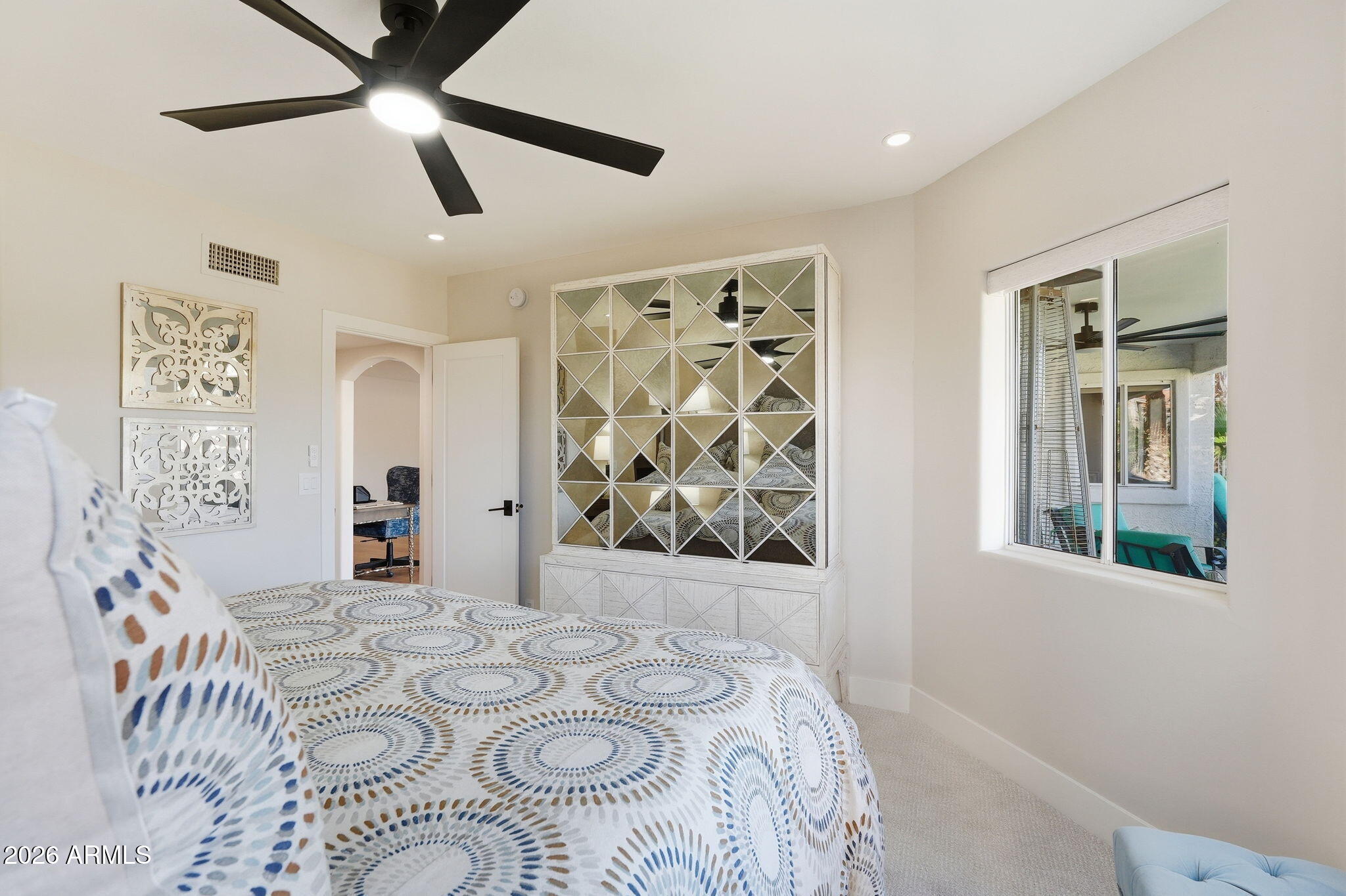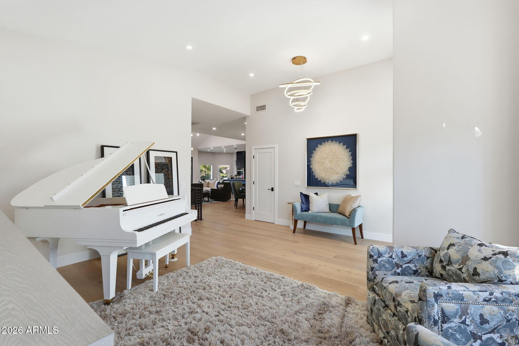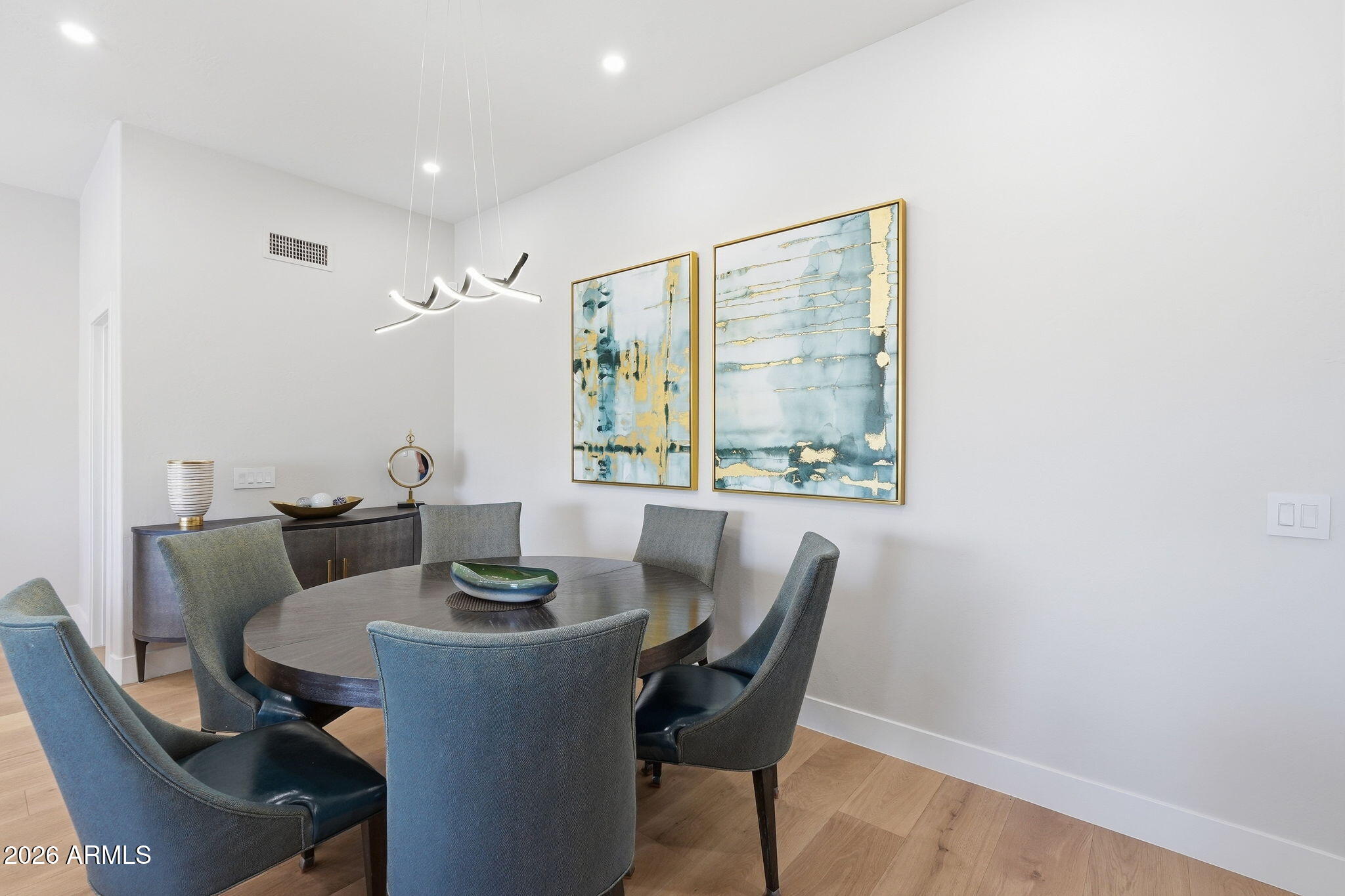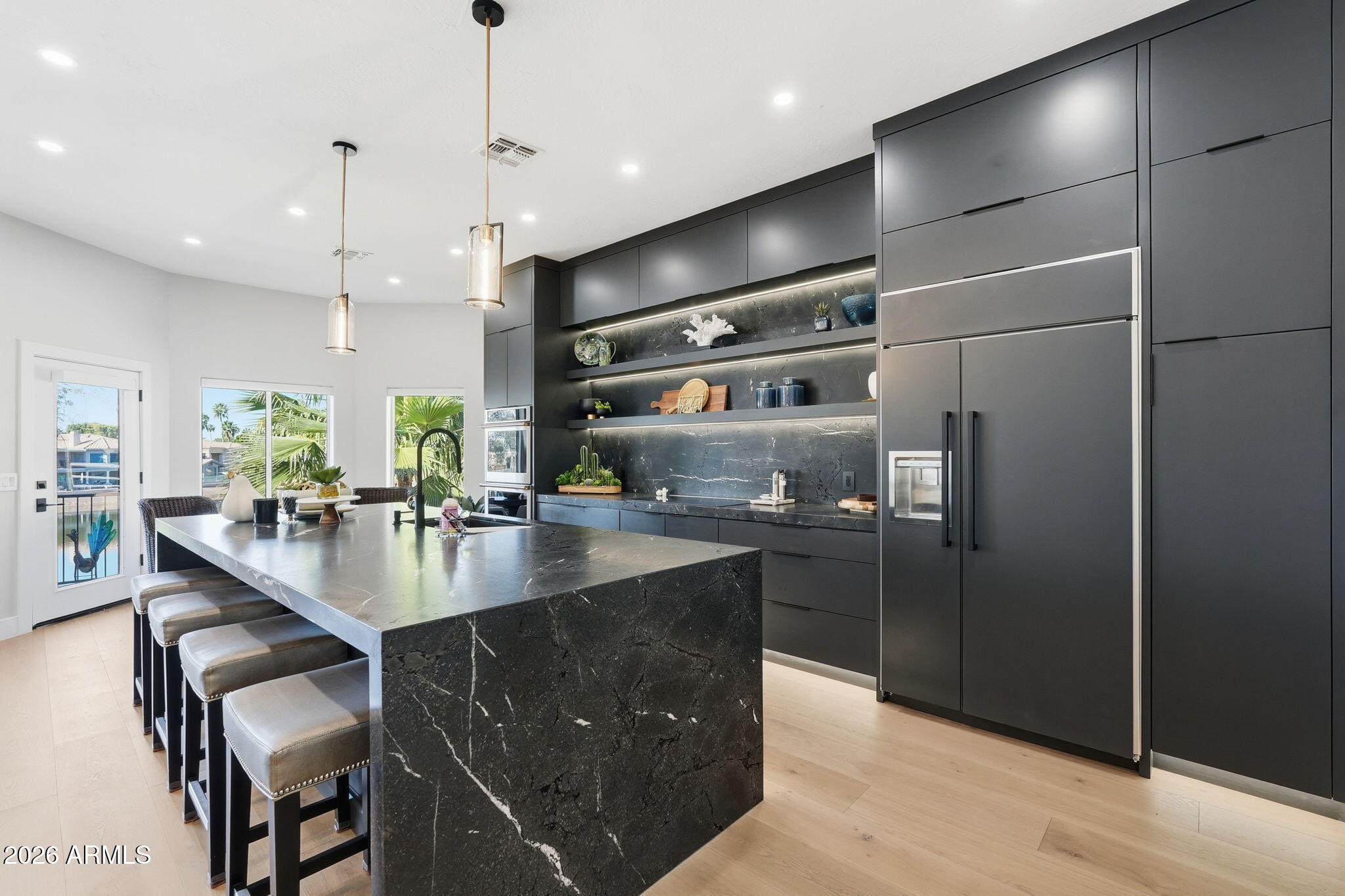 Welcome to an exceptional, luxury residence in the highly coveted Arrowhead Ranch community. This home has been completely redesigned to embrace todays modern lifestyle, offering an incredible location with stunning golf course and pond views that provide the perfect backdrop for enjoying those beautiful Arizona sunsets.The thoughtfully crafted layout features three spacious bedrooms and three-and-a-half bathrooms, along with the rare convenience of two laundry rooms. The kitchen stands out as a true chefs dream, equipped with top-of-the-line Monogram appliances, an induction cooktop, sleek flat-panel cabinets, and a striking quartzite waterfall island complemented by matching quartzite countertops and backsplash. A high-end Rohl kitchen faucet adds to the refined touches. Throughout the home, contemporary lighting elevates every space, with 4-inch LED ceiling cans on dimmer switches creating the ideal ambiance. High-end hardwood flooring flows seamlessly through the main living areas, while upgraded carpet and padding grace bedrooms one and two. A sophisticated metal staircase and a stunning metal-and-glass 48-inch front entry door make a dramatic first impression, paired with two-panel solid wood doors and premium Emtek hardware found throughout.The master bath is a luxurious retreat, boasting double-sided lighted mirrors, high-end upgraded Brizo plumbing fixtures in both the bath and shower, and premium master faucets, along with upgraded cabinetry in the master closets. A dedicated wet bar area features quartzite tops, upgraded cabinets, and an integrated wine room for effortless entertaining.Additional high-end upgrades include a whole-house water filtration system, an epoxy-finished garage floor, built-in wood stairs, Ecobee thermostats for smart climate control, and two separate AC and heating units for zoned comfort. The home is further enhanced by cabinet upgrades in the master closets and impressive full 12x9 Arcadia doors on each level that fully open, seamlessly blending indoor living with the outdoor views.This meticulously updated residence combines premium finishes, practical luxury features, and an unbeatable setting in one of the areas most desirable communities--ideal for those seeking turnkey elegance with resort-like surroundings. Primary, is on main living area with bonus room, wet bar and additional bedrooms on lower level. Home is being sold below appraisal from last year.