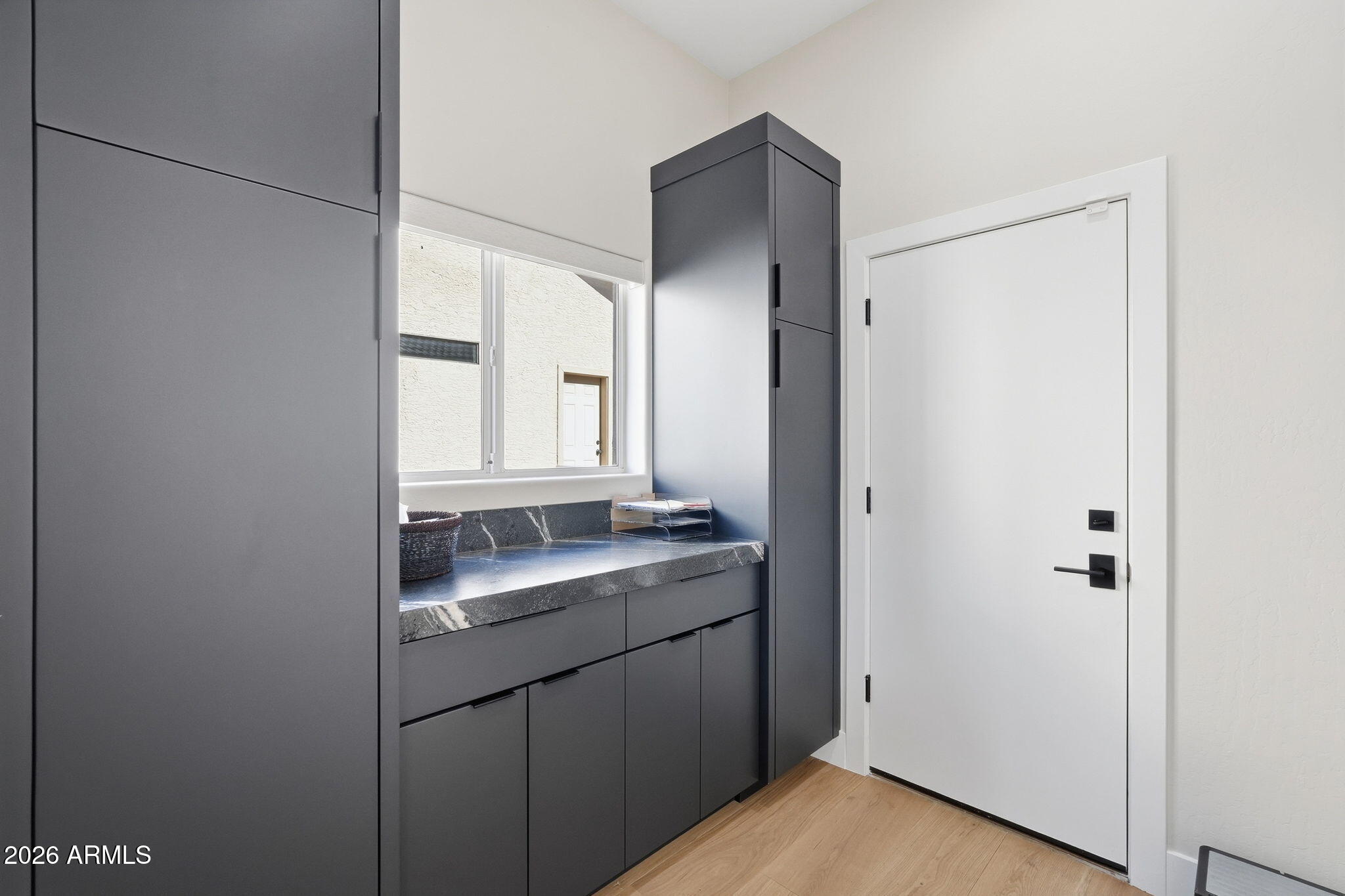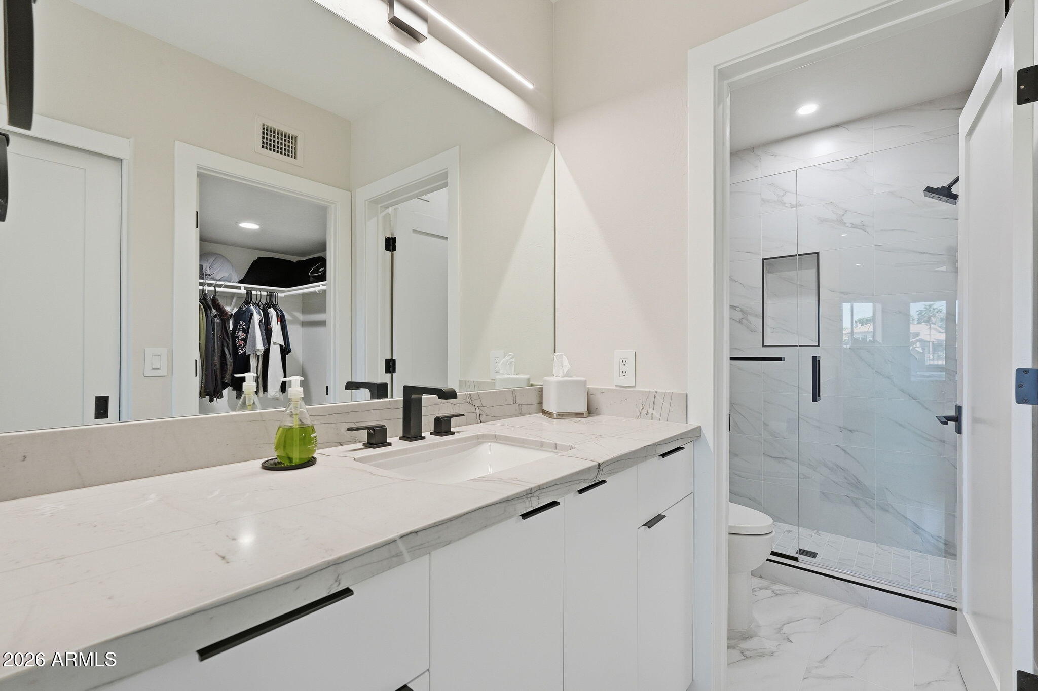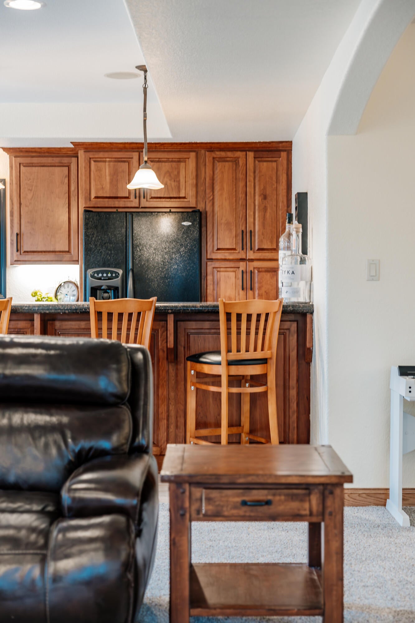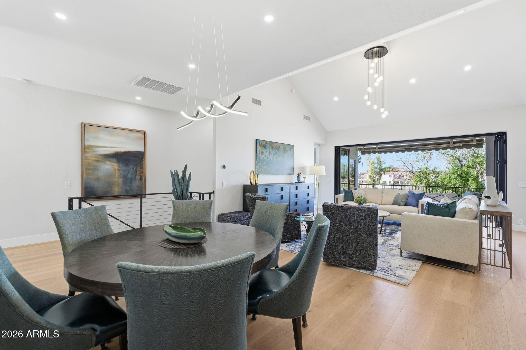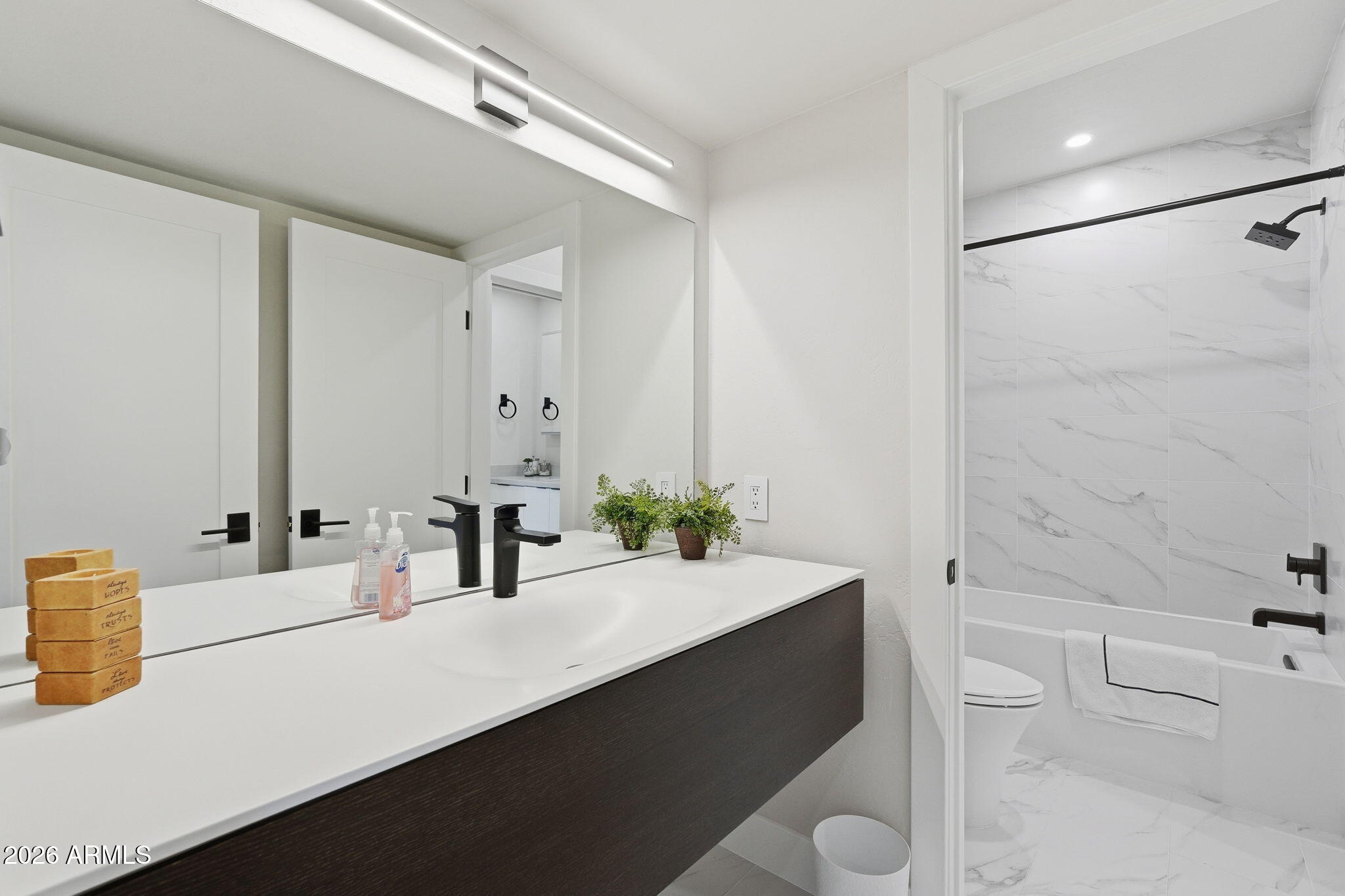 Welcome to an exceptional, luxury residence in the highly coveted Arrowhead Ranch community. This home has been completely redesigned to embrace todays modern lifestyle, offering an incredible location with stunning golf course and pond views that provide the perfect backdrop for enjoying those beautiful Arizona sunsets.The thoughtfully crafted layout features three spacious bedrooms and three-and-a-half bathrooms, along with the rare convenience of two laundry rooms. The kitchen stands out as a true chefs dream, equipped with top-of-the-line Monogram appliances, an induction cooktop, sleek flat-panel cabinets, and a striking quartzite waterfall island complemented by matching quartzite countertops and backsplash. A high-end Rohl kitchen faucet adds to the refined touches. Throughout the home, contemporary lighting elevates every space, with 4-inch LED ceiling cans on dimmer switches creating the ideal ambiance. High-end hardwood flooring flows seamlessly through the main living areas, while upgraded carpet and padding grace bedrooms one and two. A sophisticated metal staircase and a stunning metal-and-glass 48-inch front entry door make a dramatic first impression, paired with two-panel solid wood doors and premium Emtek hardware found throughout.The master bath is a luxurious retreat, boasting double-sided lighted mirrors, high-end upgraded Brizo plumbing fixtures in both the bath and shower, and premium master faucets, along with upgraded cabinetry in the master closets. A dedicated wet bar area features quartzite tops, upgraded cabinets, and an integrated wine room for effortless entertaining.Additional high-end upgrades include a whole-house water filtration system, an epoxy-finished garage floor, built-in wood stairs, Ecobee thermostats for smart climate control, and two separate AC and heating units for zoned comfort. The home is further enhanced by cabinet upgrades in the master closets and impressive full 12x9 Arcadia doors on each level that fully open, seamlessly blending indoor living with the outdoor views.This meticulously updated residence combines premium finishes, practical luxury features, and an unbeatable setting in one of the areas most desirable communities--ideal for those seeking turnkey elegance with resort-like surroundings. Primary, is on main living area with bonus room, wet bar and additional bedrooms on lower level. Home is being sold below appraisal from last year.