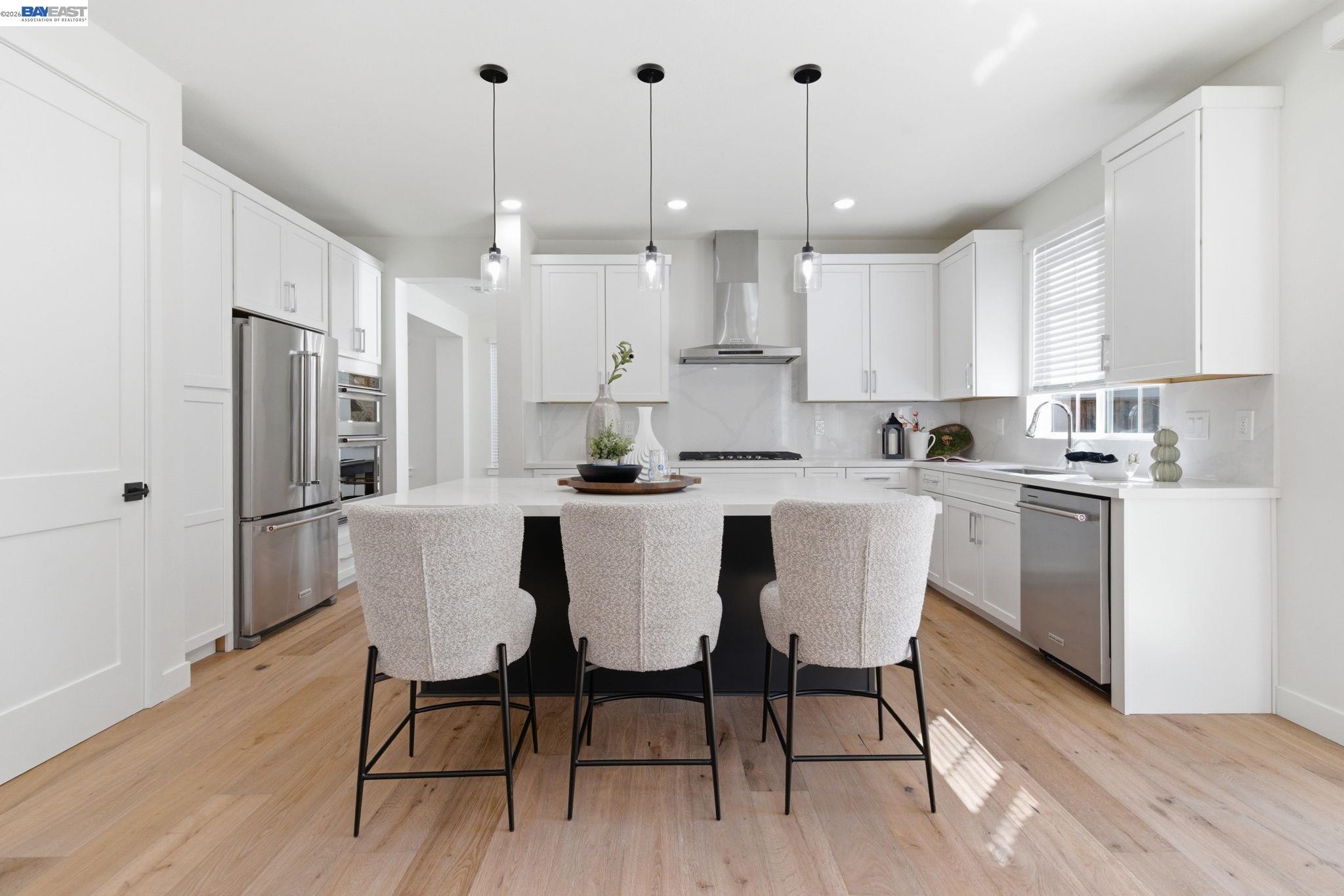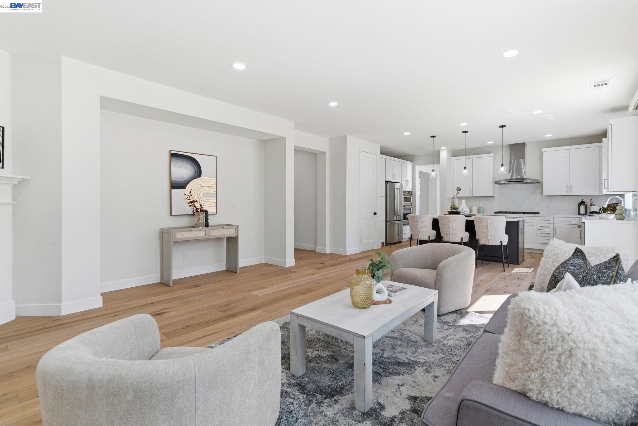 Welcome to this stunning East-facing home in Bethany Village in Mountain House, CA, a beautifully renovated Pulte Amberlea Plan 3 located just steps from highly rated Bethany K-8 School and NO HOA. Completely rebuilt/renovated down to the studs in 2025, this move-in ready home showcases designer finishes, modern upgrades, and an open-concept layout filled with natural light and soaring ceilings. The main level features elegant living and dining spaces with engineered hardwood flooring throughout the house, plus a bedroom and full bathroom downstairs, ideal for multi-generational living or guests. The gourmet kitchen is a chefs dream with quartzite countertops, large island, walk-in pantry, and KitchenAid stainless steel appliances. Upstairs offers 3 spacious bedrooms, 2 full bathrooms, and a large bonus room perfect for a media room, game room, home office, or potential 5th bedroom. The luxury primary suite features a spa-inspired bath designed for comfort and relaxation. Located in one of the most desirable communities in Mountain House with matured tree line streets, Creek Recreation Area with trails, near parks, top schools, and commuter routes. This fully renovated luxury home combines style, space, and location. A rare opportunity you wont want to miss!